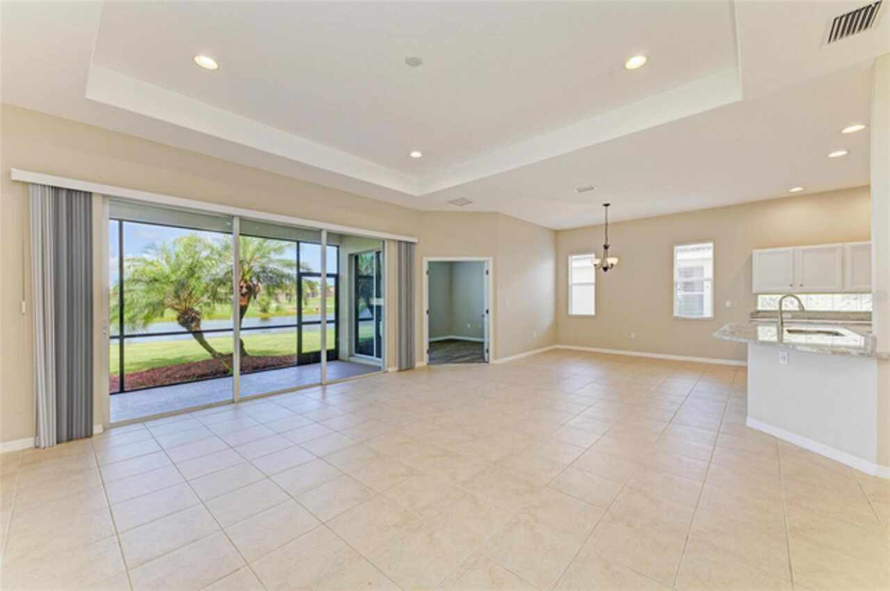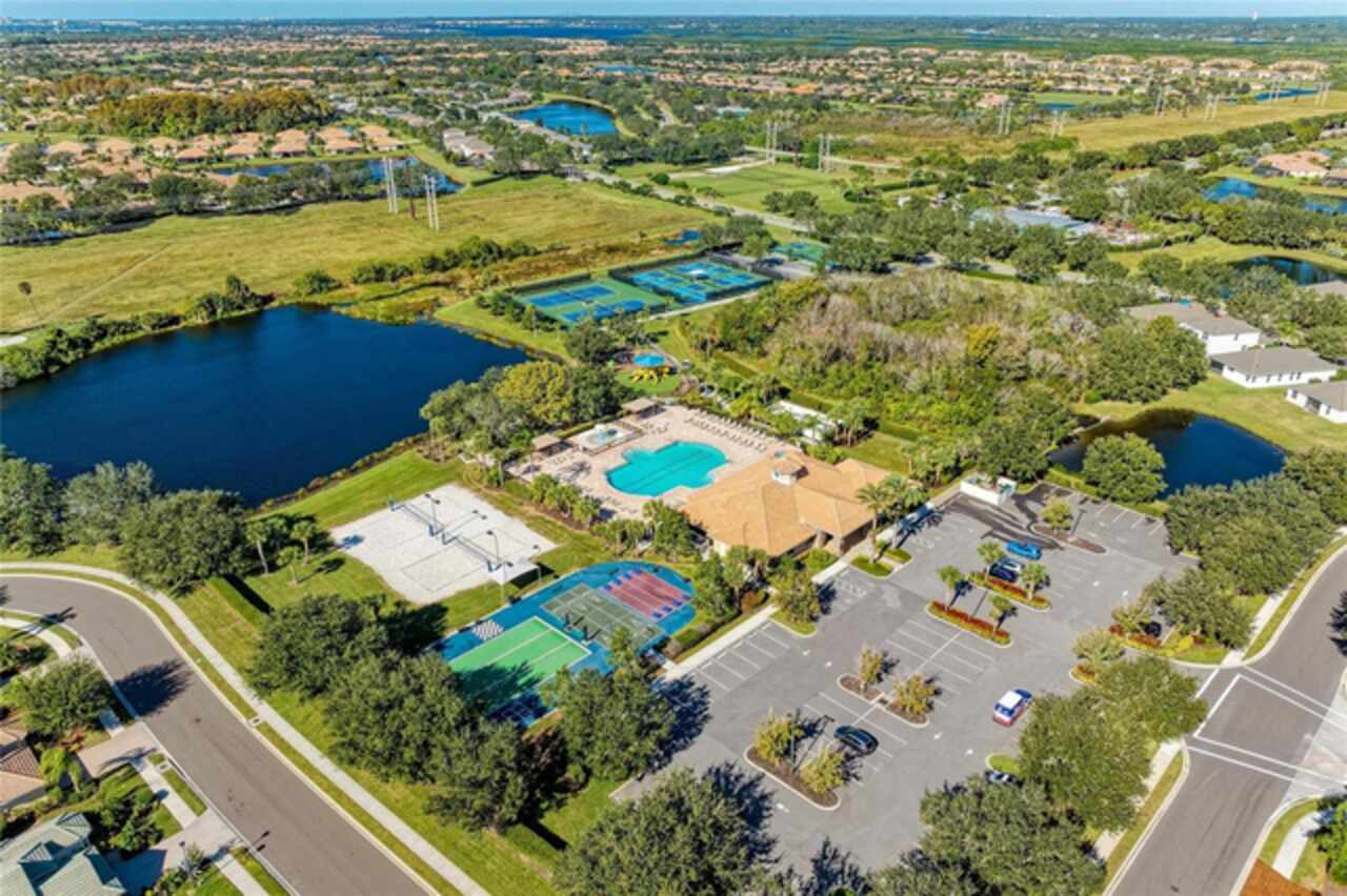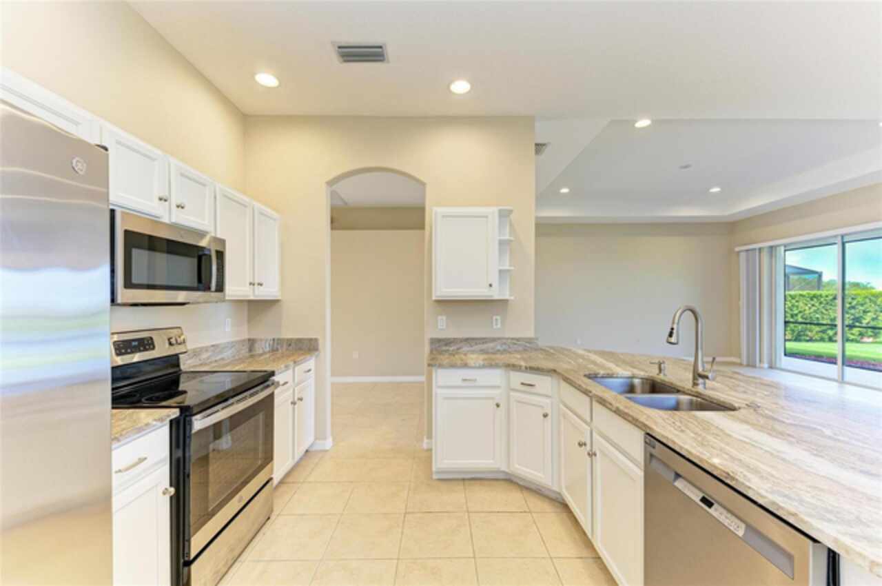 Affordable and spacious luxury home in this golf community. Within 5 min. driving distance to interstate I-75, and within 1 mile distance to the Manatee River. Walking distance to the adjacent central park. Walking distance to the golf course and driving range. Over 2, 100 Sq/Ft, with spacious lanai overlooking a pond. The entire house has just been freshly painted. Two full baths, master bath has a large bathtub and private toilet room. The 2 car garage has just been painted as well as the garage floor. Updated kitchen appliances and washer. The modern and spacious kitchen and bathrooms have beautiful granite countertops. There is an application fee for HOA approval and a transfer fee to use the Stoneybrook facilities. Active lifestyles are encouraged with golf, tennis, playground, pickle ball, pools, fitness club, basketball courts, and dog park. Heritage Harbor has fishing piers, lots of sidewalks, bike paths, and fields. A bonus room to be used as a den or office is also included in this home.