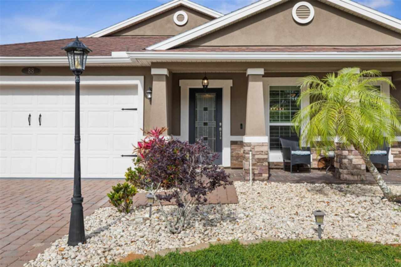 Welcome to 88 Arena Lake Drive, a beautifully upgraded 3-bedroom, 2-bathroom home set on the largest lake in the highly sought-after Hidden Lakes community. With serene water views, modern upgrades, and a prime location just 5 miles from Flagler Beach, this home offers the perfect balance of comfort, style, and convenience. Step inside to find plantation shutters, granite countertops, and rich 42” wood cabinets in the kitchen—blending function and elegance. The spacious living and dining areas feature upgraded laminate wood flooring, while the kitchen and family room are finished with upgraded tile. Bedrooms are cozy with newer carpet. Custom wood barn doors and a fresh coat of paint inside and out add a personal, polished touch. The lakefront primary suite is your private retreat, complete with a walk-in California-style closet system, water views, and a thoughtfully designed en suite bath with extra storage. Enjoy peaceful mornings or relaxed evenings in the screened lanai, watching the light dance across the water. This home is also equipped with exterior hurricane shutters for extra peace of mind. But Hidden Lakes offers more than just a home—it delivers a lifestyle. Enjoy access to a sparkling pool, basketball court, playground, and scenic sidewalks—plus underground utilities and bike access to the Lehigh Trail. With low HOA fees and no CDD, it’s a rare opportunity in a well-maintained, friendly neighborhood. And let’s not forget the best part—the beach is just minutes away. Spend your weekends soaking up the sun, surfing the waves, or enjoying local restaurants and coastal charm. Centrally located near I-95, shopping, dining, and top medical facilities, this home puts you close to everything—while giving you the calm of lakeside living. Don’t miss your chance to own a slice of Florida paradise. Schedule your private showing today.