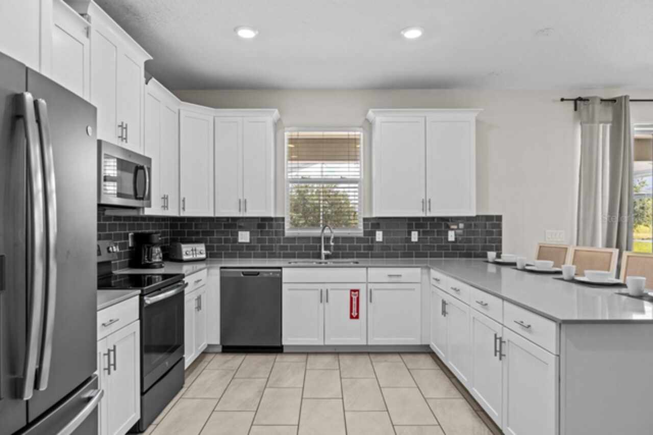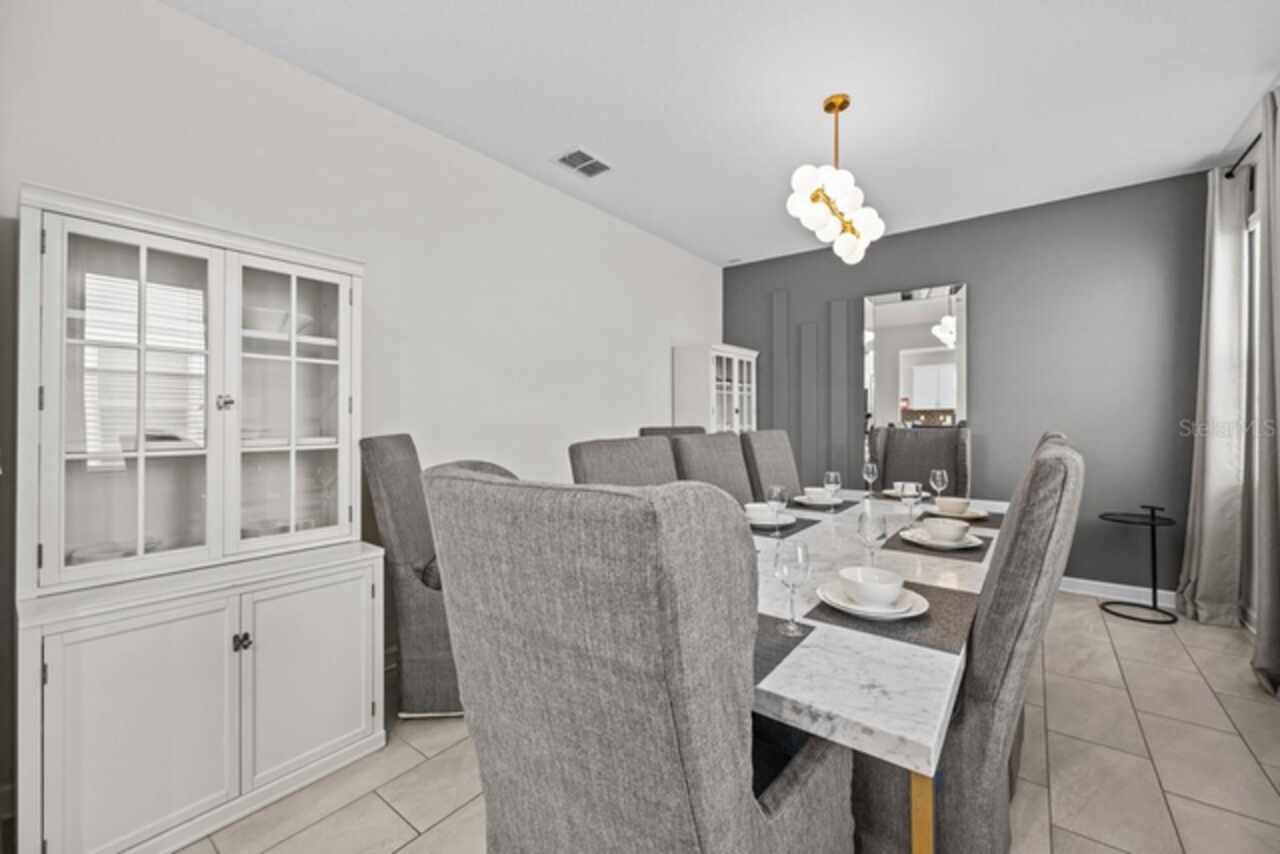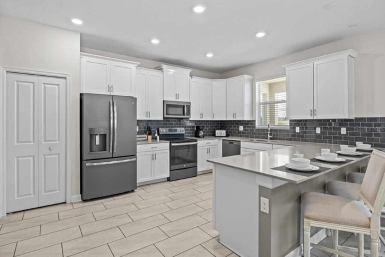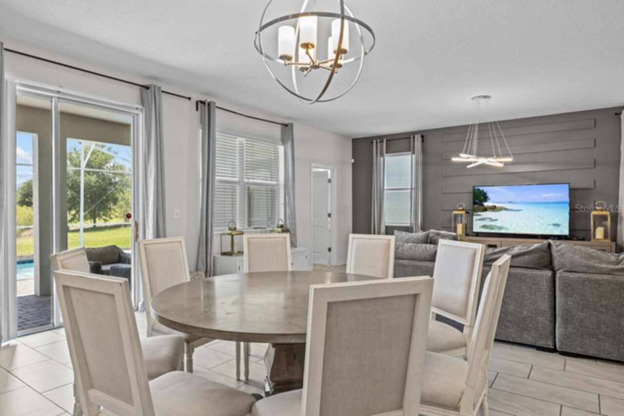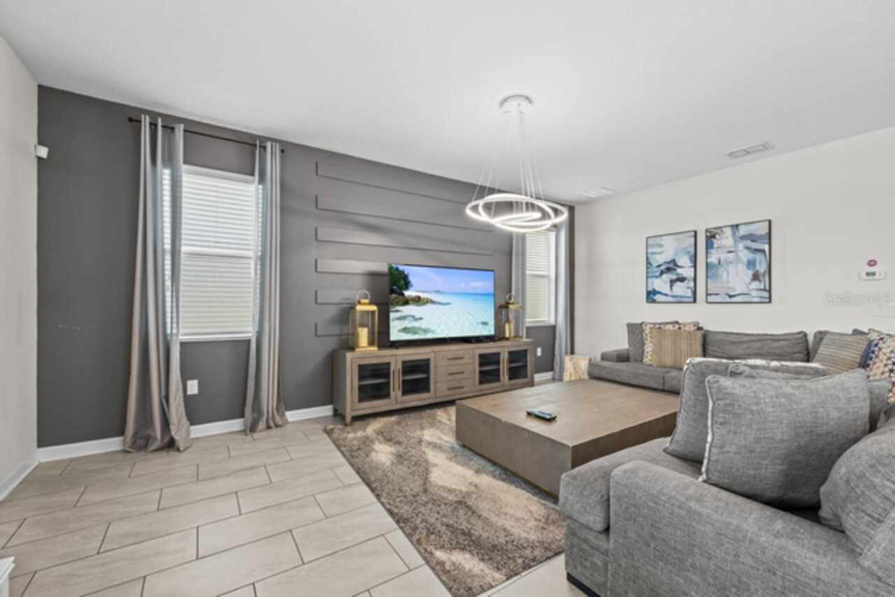 TURNKEY SHORT-TERM RENTAL HOME, located in Champions Gate Golf Resort Community, features 6 bedrooms, 6 bathrooms, Heated pool and SPA. No rear neighbors, great for privacy! The home is furnished and is professionally decorated with Restoration Hardware furniture. The elegant owner bedroom, located on the second floor, has a private bathroom with a tub, separate shower, and his and her sinks. New highly energy efficient homes feature 42” wood cabinetry, quartz countertops in both kitchen and bathrooms, slate appliances, state of the art security system and blinds.CHAMPIONS GATE RESORT ORLANDO OASIS CLUB CLUBHOUSE AND WATER-PARK: Amenities will include: Lazy River, Water-slides, Swim-Up Bar, Water Falls, Beach Entry, Spa, Splash Pad, Grill, Bar, Fitness Area, Theatre, Games Room, Tiki Bar and Cabanas. Simply relax by the pool, watch your family have the time of their life plus seven tennis courts.