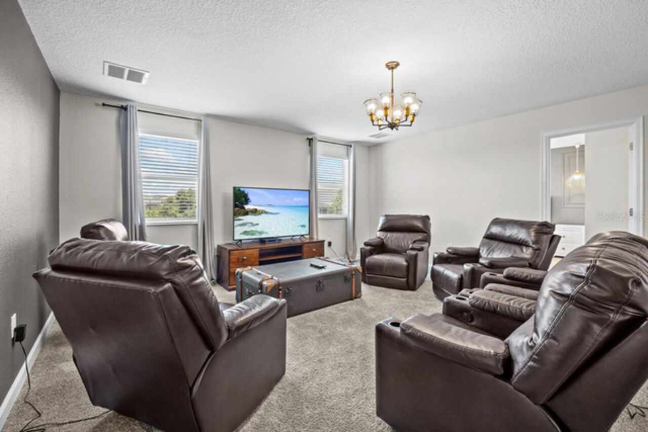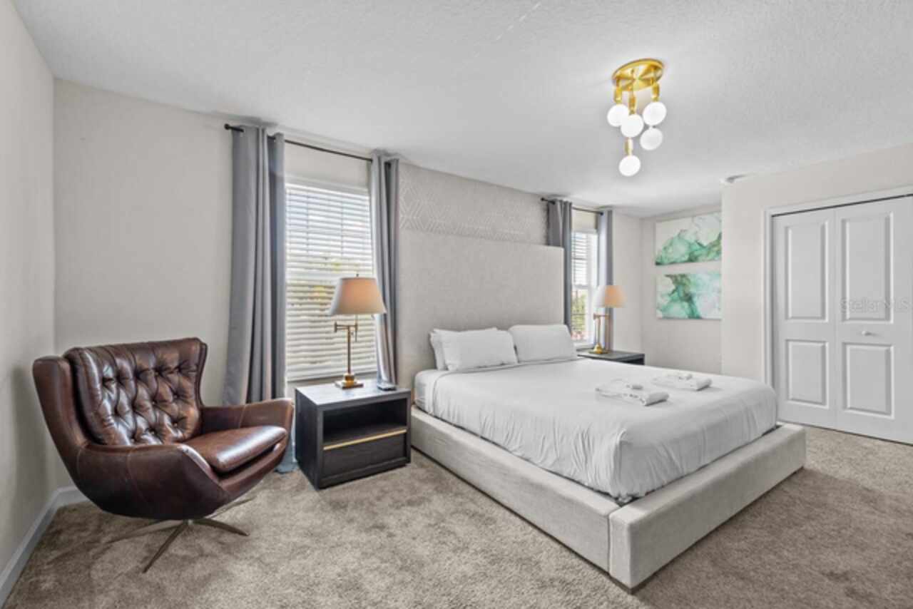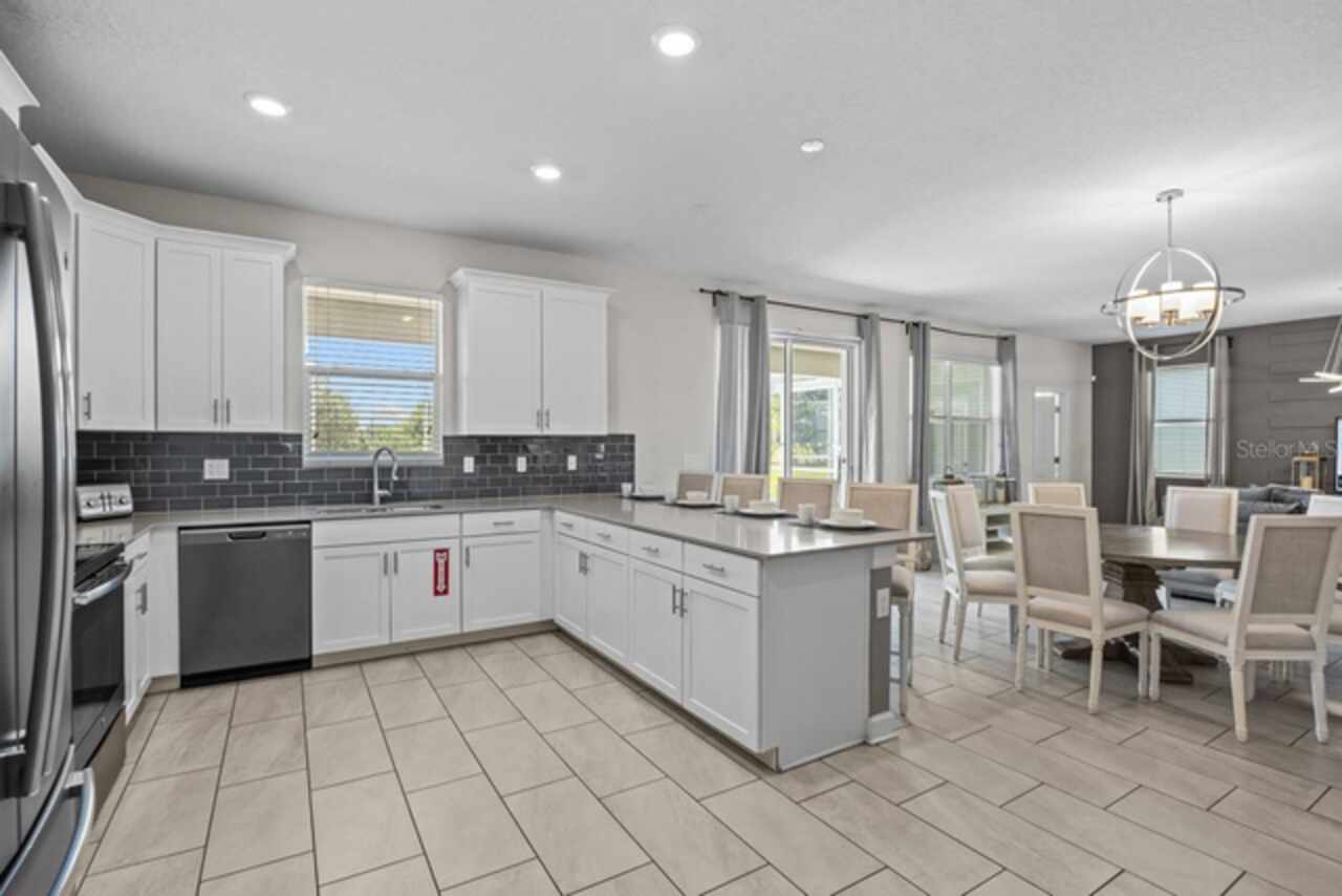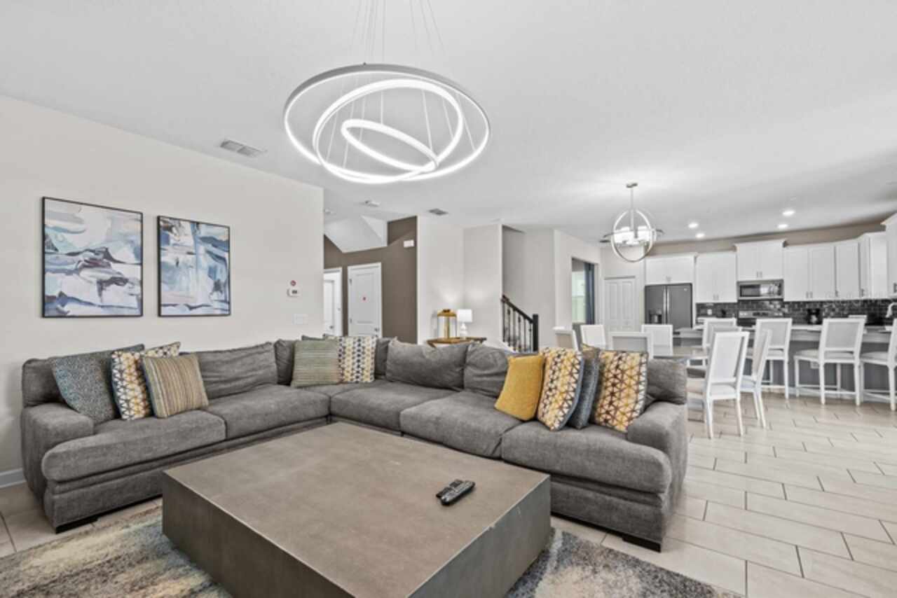 TURNKEY SHORT-TERM RENTAL HOME, located in Champions Gate Golf Resort Community, features 6 bedrooms, 6 bathrooms, Heated pool and SPA. No rear neighbors, great for privacy! The home is furnished and is professionally decorated with Restoration Hardware furniture. The elegant owner bedroom, located on the second floor, has a private bathroom with a tub, separate shower, and his and her sinks. New highly energy efficient homes feature 42” wood cabinetry, quartz countertops in both kitchen and bathrooms, slate appliances, state of the art security system and blinds.CHAMPIONS GATE RESORT ORLANDO OASIS CLUB CLUBHOUSE AND WATER-PARK: Amenities will include: Lazy River, Water-slides, Swim-Up Bar, Water Falls, Beach Entry, Spa, Splash Pad, Grill, Bar, Fitness Area, Theatre, Games Room, Tiki Bar and Cabanas. Simply relax by the pool, watch your family have the time of their life plus seven tennis courts.