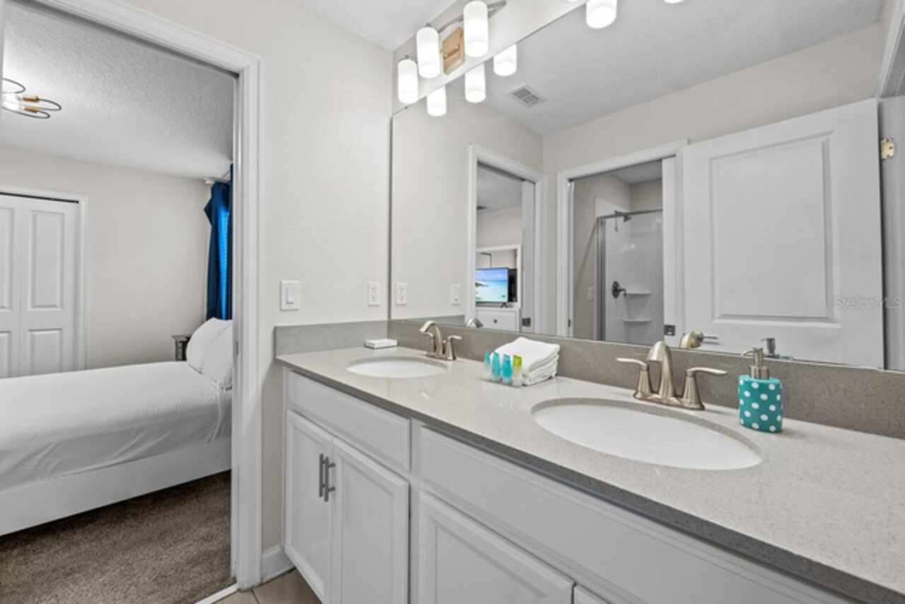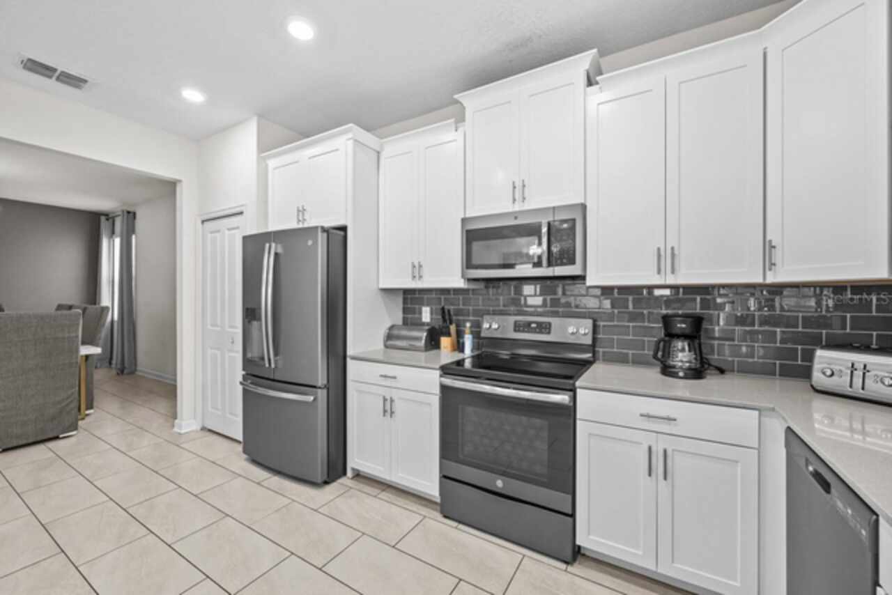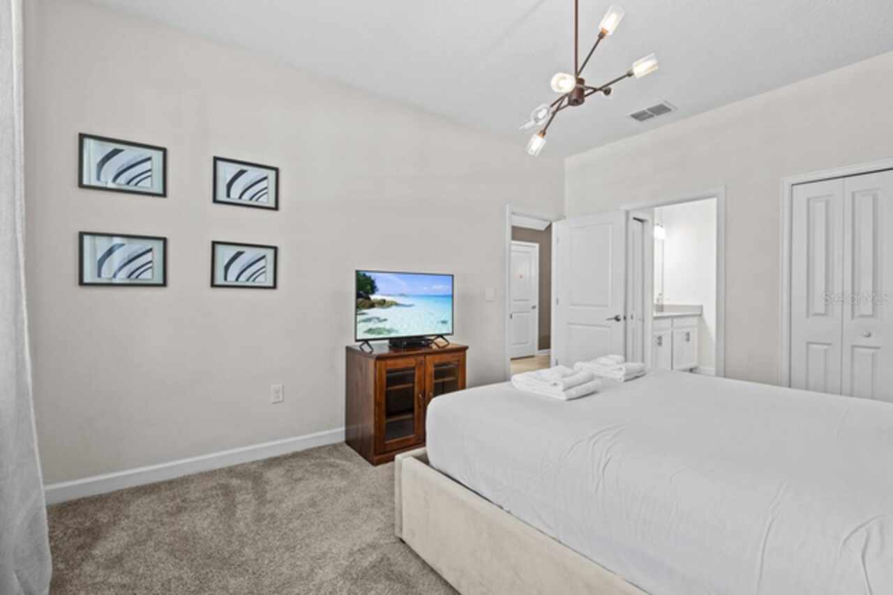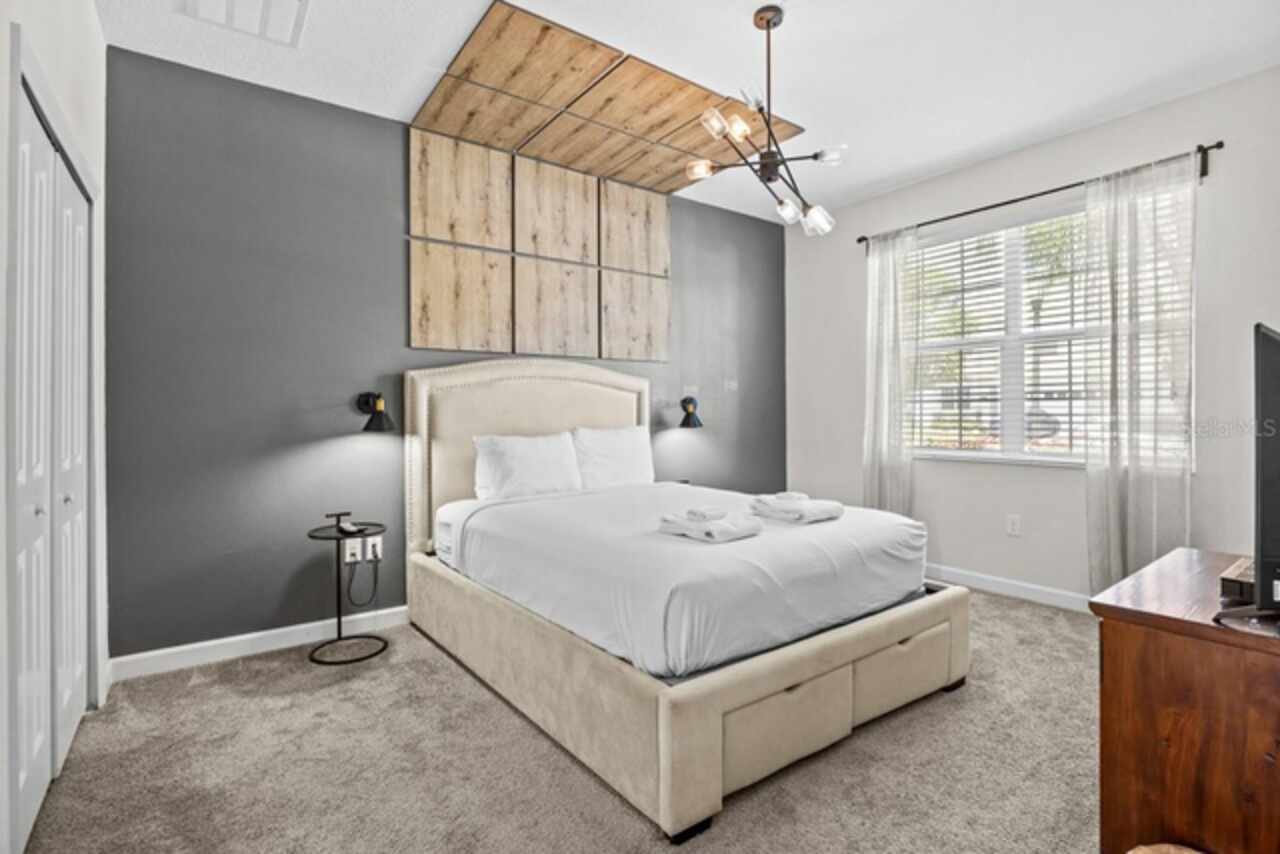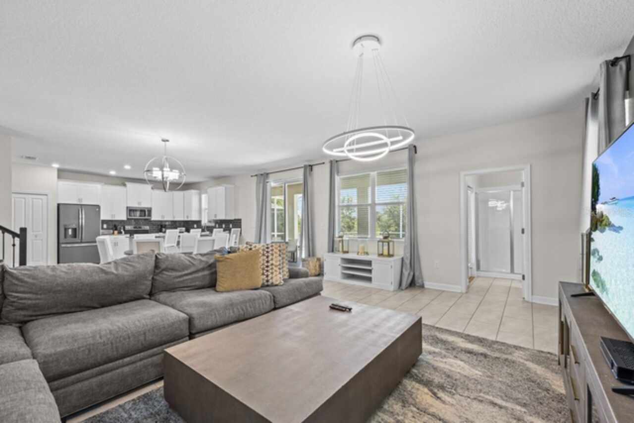 TURNKEY SHORT-TERM RENTAL HOME, located in Champions Gate Golf Resort Community, features 6 bedrooms, 6 bathrooms, Heated pool and SPA. No rear neighbors, great for privacy! The home is furnished and is professionally decorated with Restoration Hardware furniture. The elegant owner bedroom, located on the second floor, has a private bathroom with a tub, separate shower, and his and her sinks. New highly energy efficient homes feature 42” wood cabinetry, quartz countertops in both kitchen and bathrooms, slate appliances, state of the art security system and blinds.CHAMPIONS GATE RESORT ORLANDO OASIS CLUB CLUBHOUSE AND WATER-PARK: Amenities will include: Lazy River, Water-slides, Swim-Up Bar, Water Falls, Beach Entry, Spa, Splash Pad, Grill, Bar, Fitness Area, Theatre, Games Room, Tiki Bar and Cabanas. Simply relax by the pool, watch your family have the time of their life plus seven tennis courts.