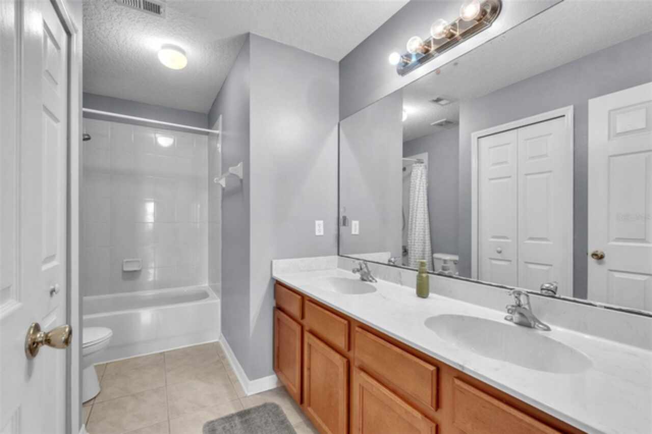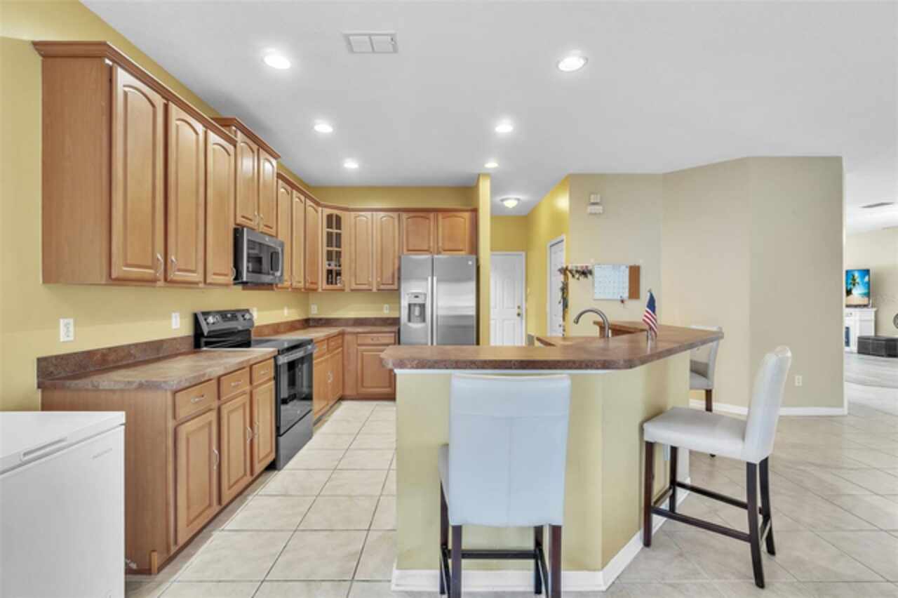 Welcome to 8832 Palisades Beach Avenue, an impeccably maintained 5-bedroom, 3-bathroom single-family home located in the highly sought-after Vista Lakes Village community in East Orlando. This move-in ready residence offers 2, 672 sqft of open and functional living space. Enjoy a spacious split floor plan featuring a formal living and dining area, a large family room, and a well-appointed kitchen with solid surface countertops, ample cabinet storage, and a breakfast bar. The primary suite boasts a generous walk-in closet and an en-suite bath with dual vanities, a soaking tub, and separate shower. Four additional bedrooms provide flexibility for guests, a home office, or hobbies. Step outside to a lanai overlooking a fully fenced backyard, ideal for outdoor relaxation and entertaining. Vista Lakes is a master planned community offering resort-style amenities including a clubhouse, pool, fitness center, tennis courts, walking trails, and parks. Located just minutes from Orlando International Airport, Lake Nona Medical City, 417/528 expressways, shopping, dining, and more. Don’t miss this opportunity, schedule your private showing today!