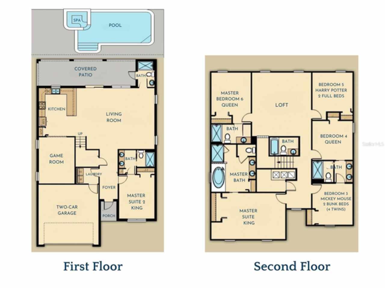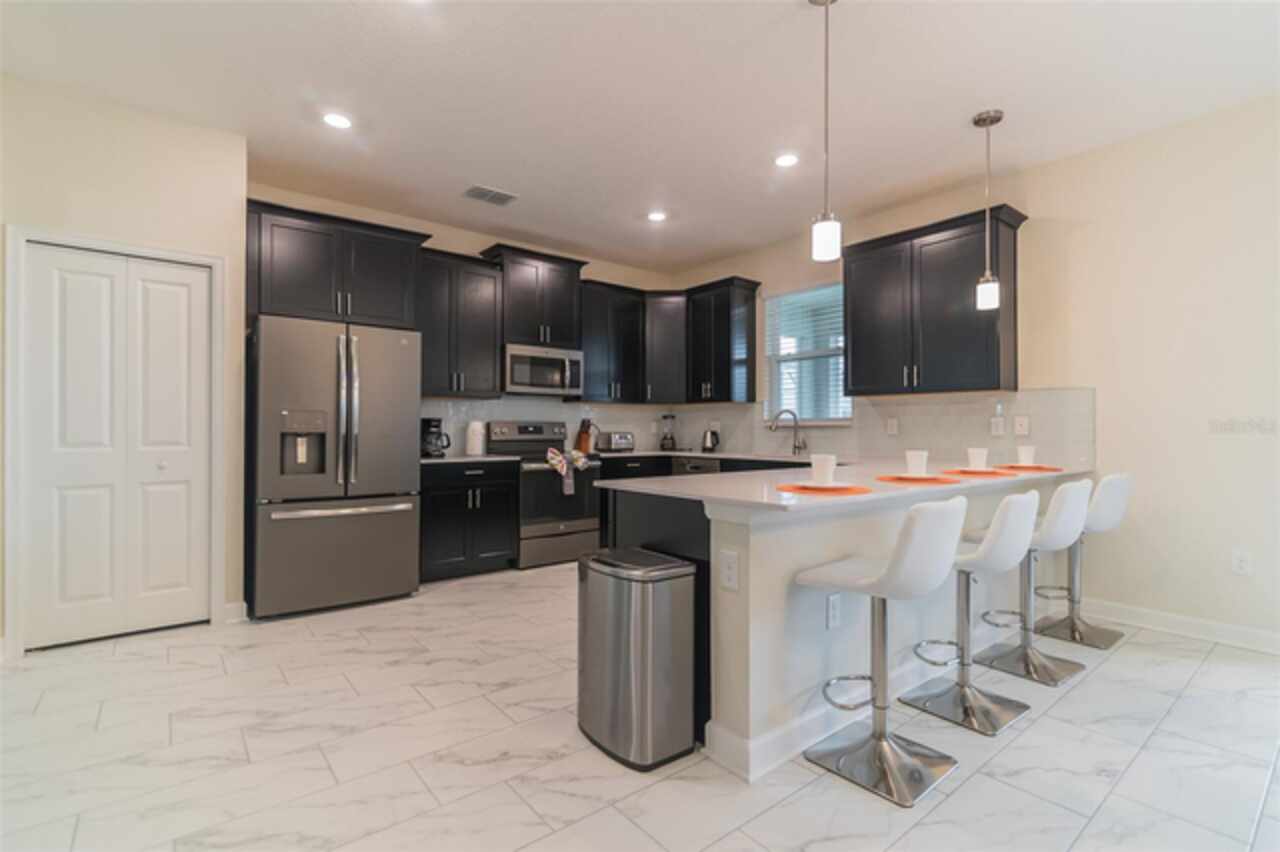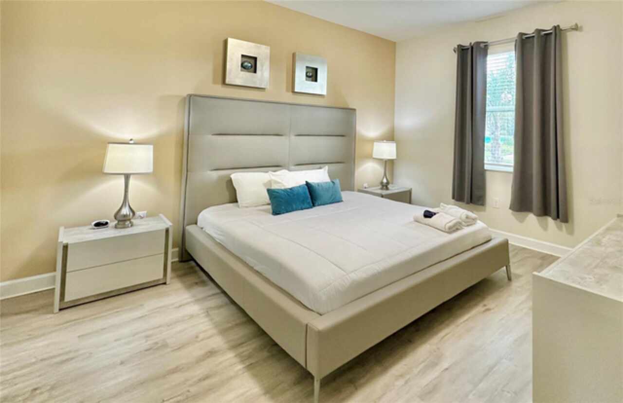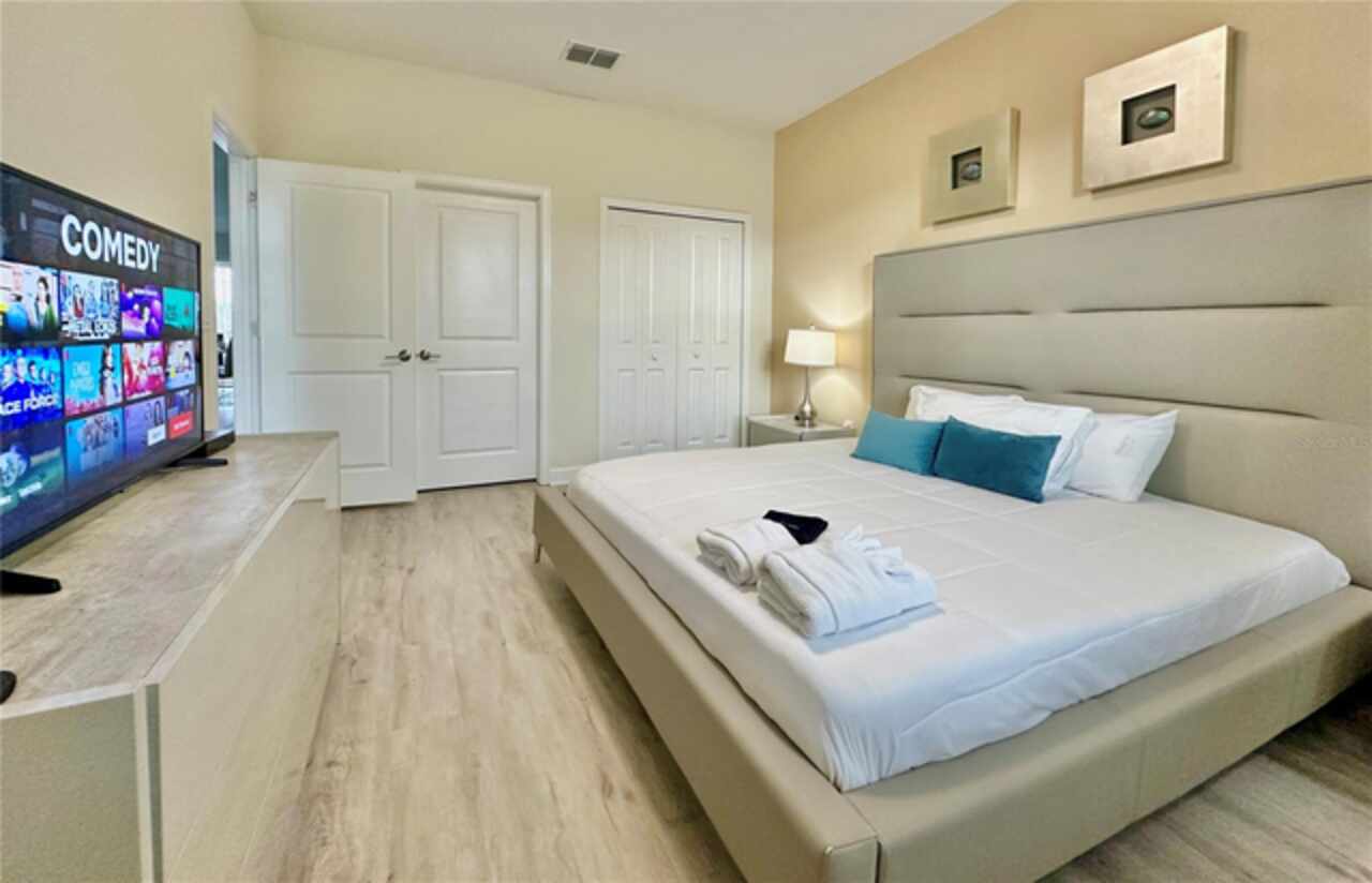 Discover this exceptional 6-bedroom, 6-bathrooms home in Champions Gate, perfectly positioned for short-term rental success. Enjoy the ease of all tile and laminate flooring throughout – absolutely no carpet! Benefit from enhanced poolside privacy with side screens enclosing the lanai. Large open floor plan + Loft + Bonus game room with 3 Master Bedrooms and Private pool and spa. Located just right across the street to the community playground, soccer, and basketball courts. Plus, one of the community clubhouses is conveniently close. This residence offers an attractive investment in a sought-after resort community.