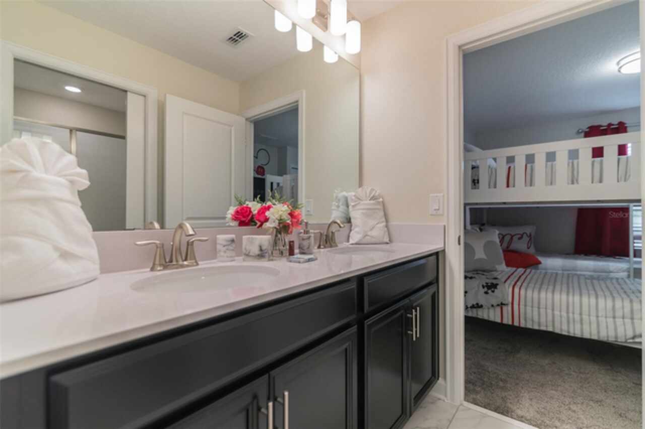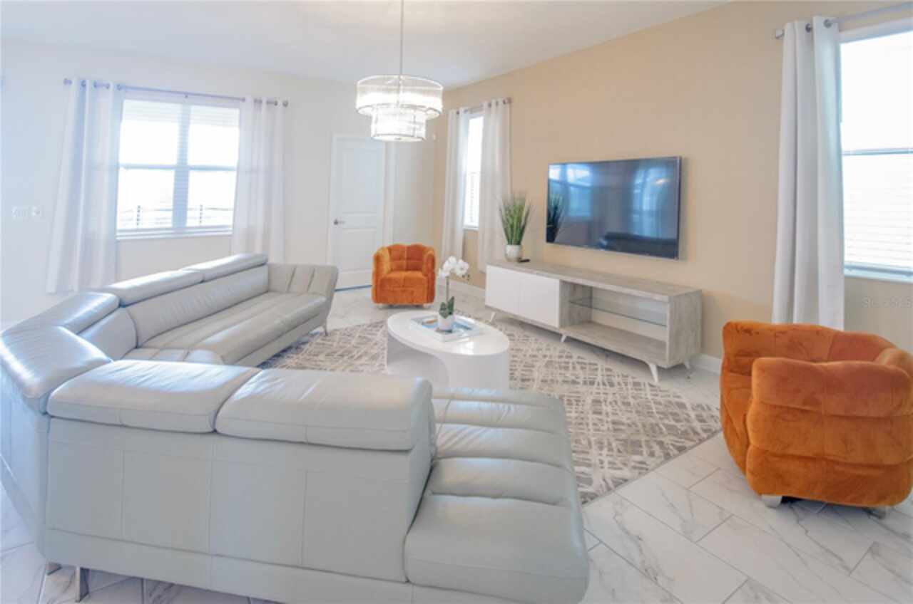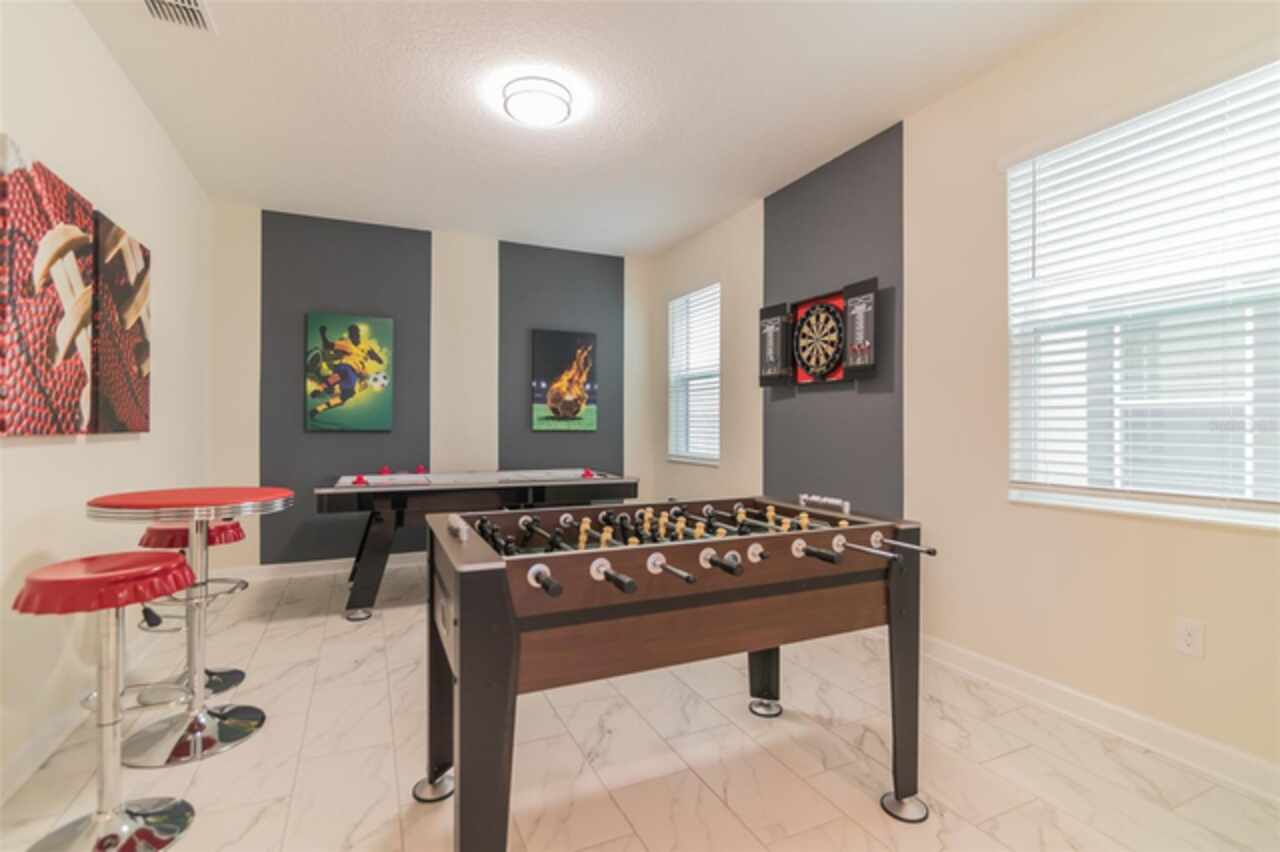 Discover this exceptional 6-bedroom, 6-bathrooms home in Champions Gate, perfectly positioned for short-term rental success. Enjoy the ease of all tile and laminate flooring throughout – absolutely no carpet! Benefit from enhanced poolside privacy with side screens enclosing the lanai. Large open floor plan + Loft + Bonus game room with 3 Master Bedrooms and Private pool and spa. Located just right across the street to the community playground, soccer, and basketball courts. Plus, one of the community clubhouses is conveniently close. This residence offers an attractive investment in a sought-after resort community.