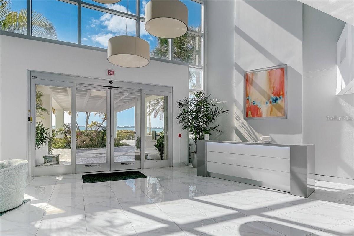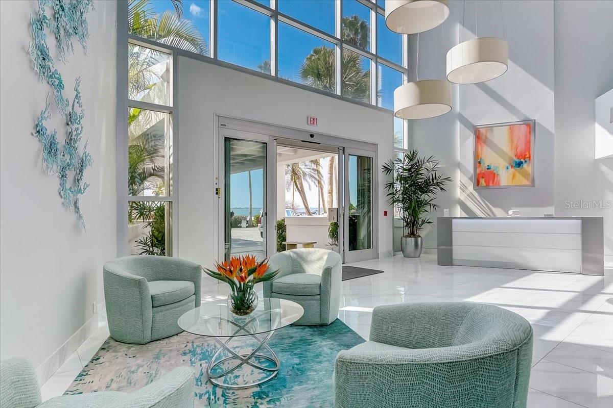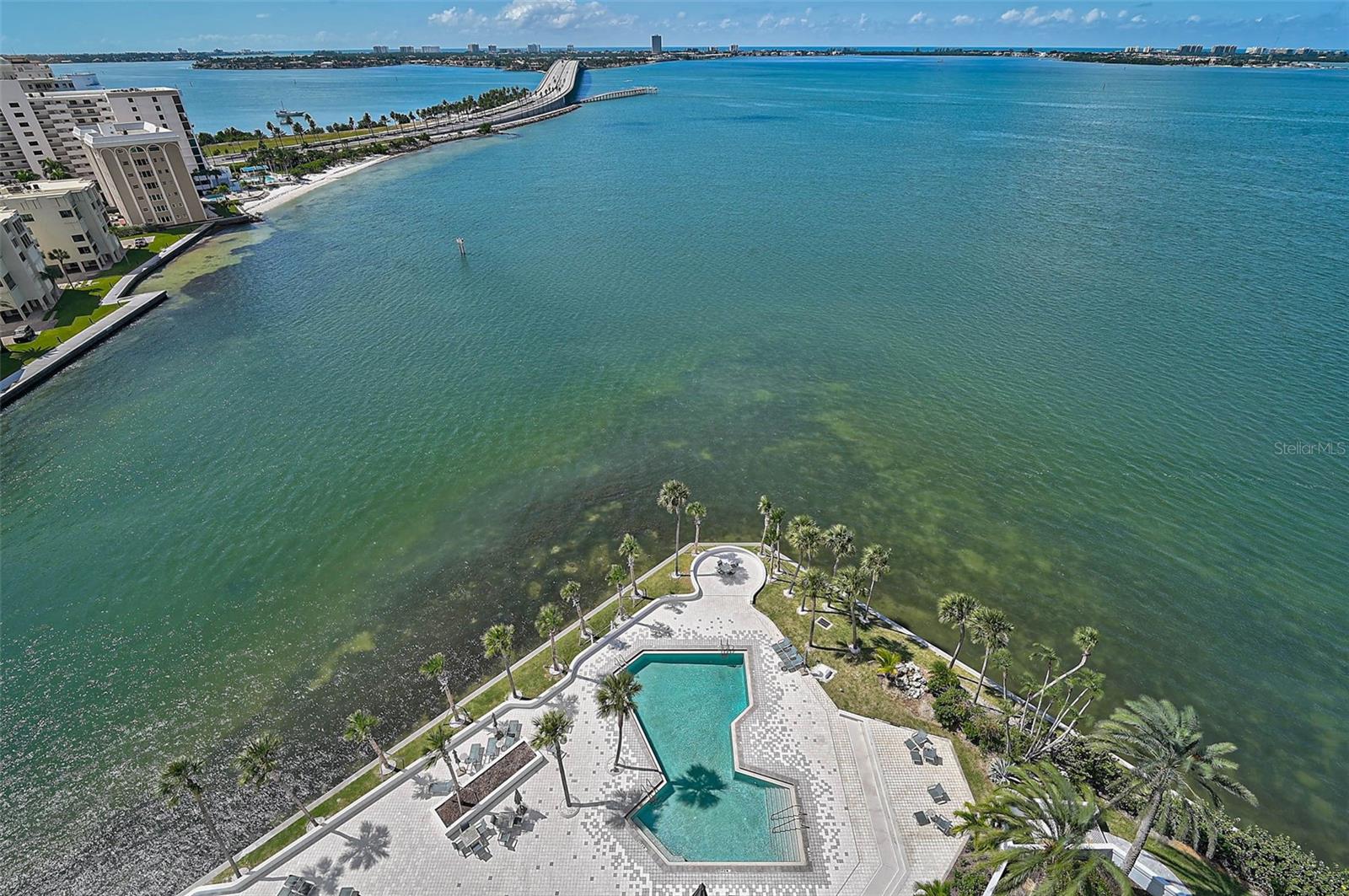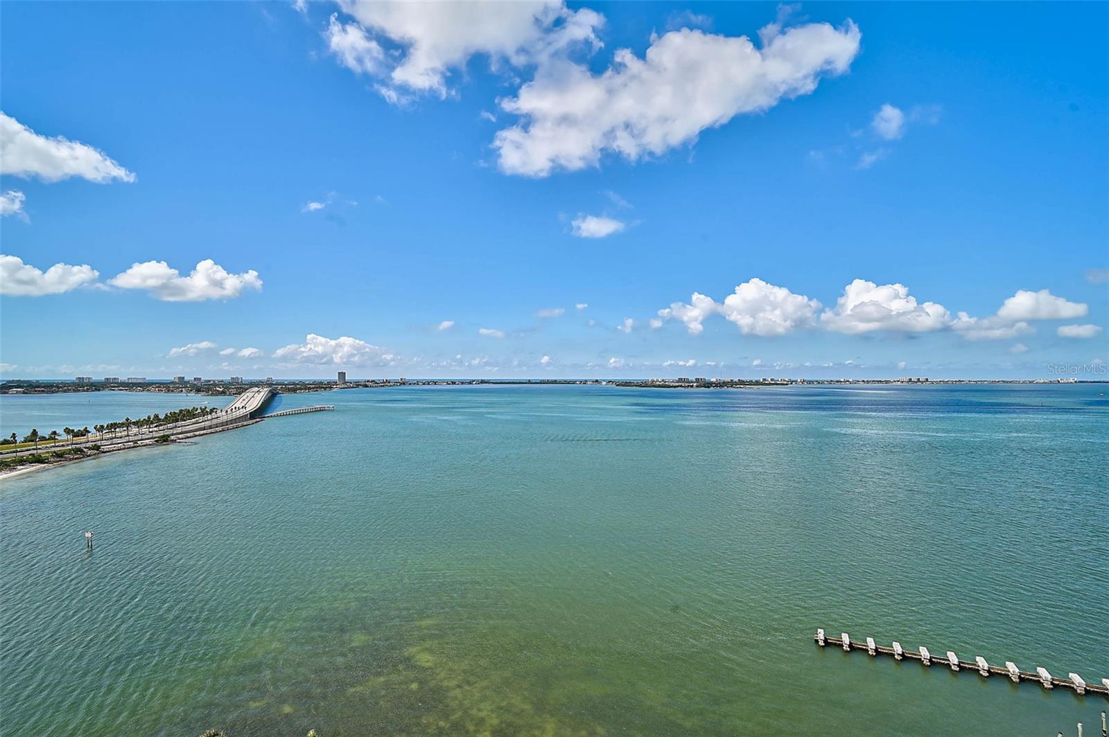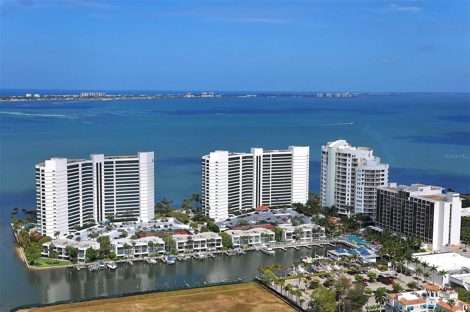 Under contract-accepting backup offers. Wake up to panoramic views of Sarasota Bay in this beautiful light and bright, 17th floor 2/2 condo with wrap around windows. Your sunset and water views extend over Longboat Key to the Gulf. No one will ever build in front and block your view. Welcome to Condo on the Bay, an exclusive direct bayfront playground where everyday feels like a vacation. Residents enjoy the many amenities including resort style heated pools, boat and kayak docks, fishing piers, tennis & pickleball courts, electric car charging station.. It is situated on a 9 acre gated peninsula with 24 hour security and is located next door to the world class Bay Park and Van Wezel theatre. It's the perfect homebase for exploring the Park , attending events downtown or going to restaurants. Both baths have a coastal contemporary sea glass colored renovation. The kitchen has quartz countertops, tile backsplash, hot water tap, GE Cafe fridge & double oven stove and luxury vinyl flooring. The living area is surrounded by windows and the floor to ceiling hurricane sliders open to a lanai just off the dining area. The primary ensuite includes a walk in custom closet, private balcony and a tiled shower & dual sinks. The spacious guest room doubles as an office and also has a custom walk in closet. The guest bath was renovated in 2023 and also has a walk in shower. An added bonus is that this condo is directly adjacent to one of the coveted sky lobbies exending your entertaining space for enjoying sunsets or just hanging out.. If you are looking for a place to dock your boat or kayak or go fishing you could not ask for more convenience than walking out your front door. Lido Beach is only 2 miles away, the airport 4 miles and the world famous Siesta Key Beach 5 miles. Looking to make friends? Condo on the Bay is a very friendly community. There are organized social events, happy hours, dining out, majong, water aerobics, walking groups and get togethers for no reason. Your Hoa fee includes all but your electric bill. All offers should have proof of funds or pre-approval.