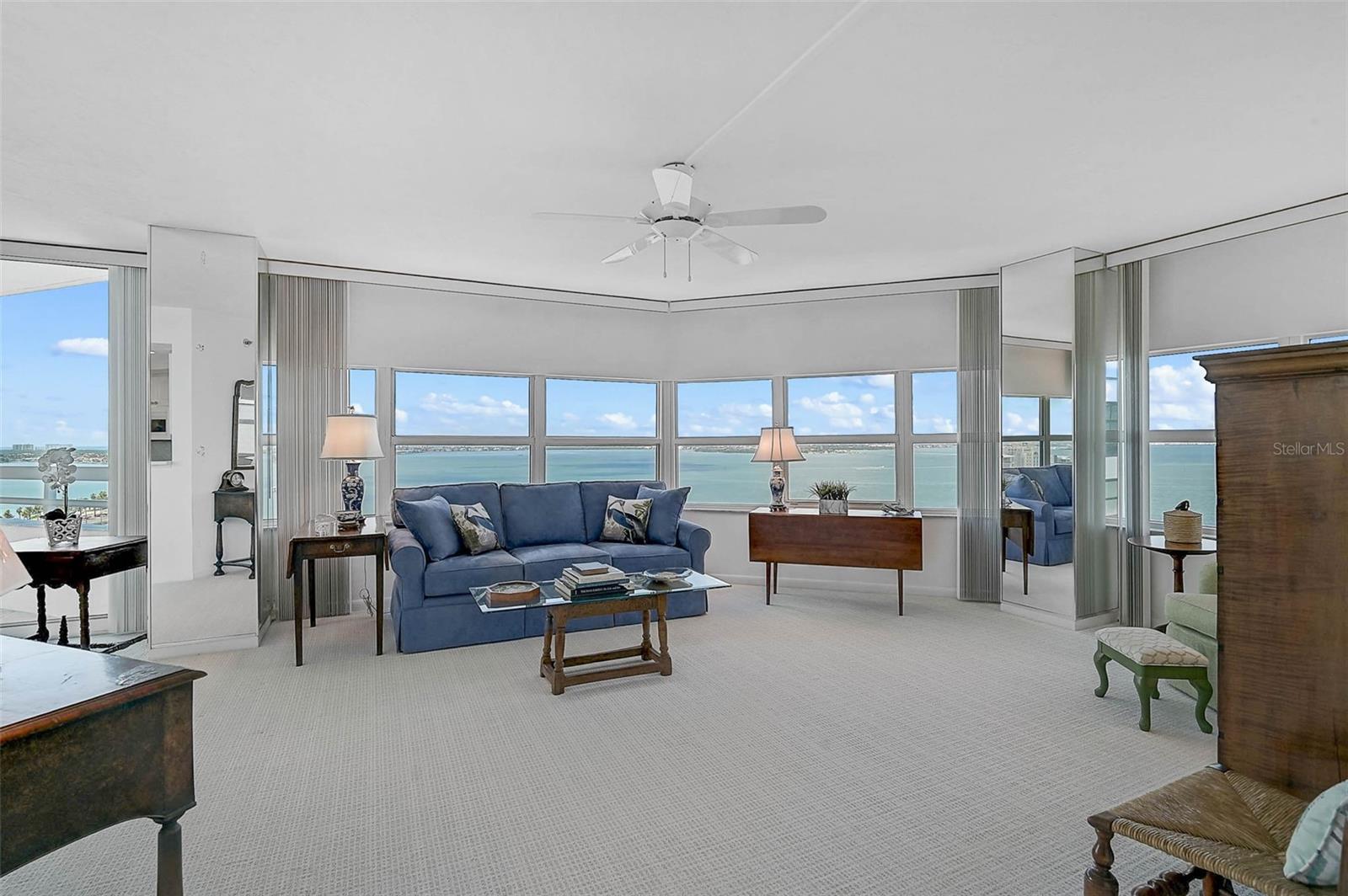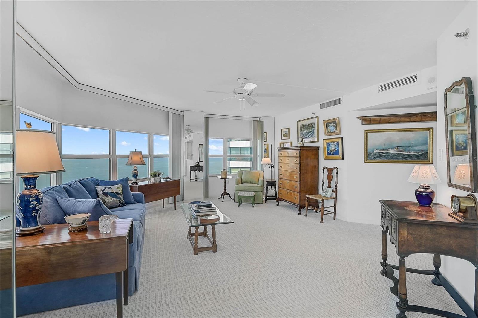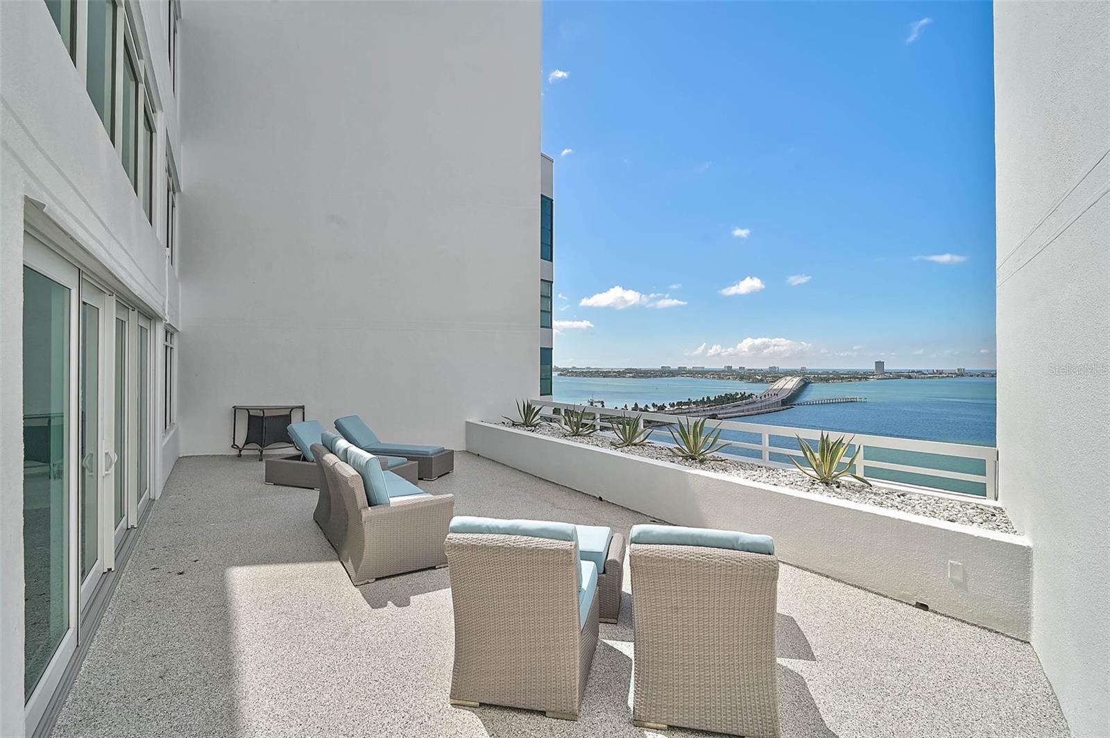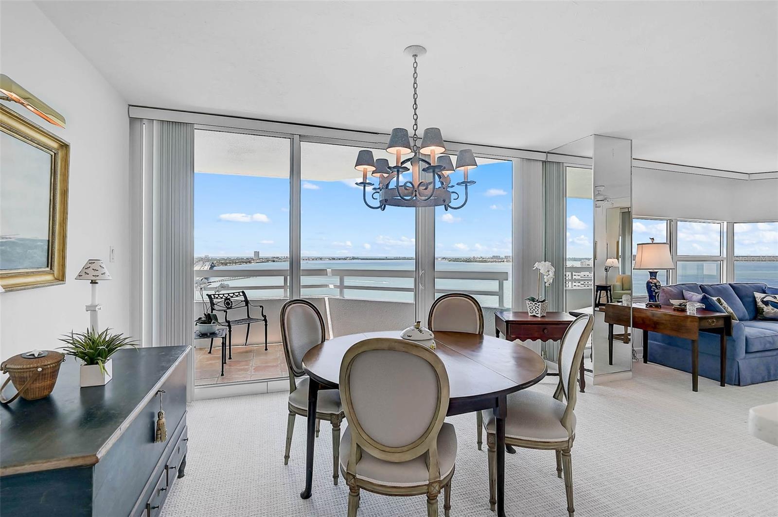 Under contract-accepting backup offers. Wake up to panoramic views of Sarasota Bay in this beautiful light and bright, 17th floor 2/2 condo with wrap around windows. Your sunset and water views extend over Longboat Key to the Gulf. No one will ever build in front and block your view. Welcome to Condo on the Bay, an exclusive direct bayfront playground where everyday feels like a vacation. Residents enjoy the many amenities including resort style heated pools, boat and kayak docks, fishing piers, tennis & pickleball courts, electric car charging station.. It is situated on a 9 acre gated peninsula with 24 hour security and is located next door to the world class Bay Park and Van Wezel theatre. It's the perfect homebase for exploring the Park , attending events downtown or going to restaurants. Both baths have a coastal contemporary sea glass colored renovation. The kitchen has quartz countertops, tile backsplash, hot water tap, GE Cafe fridge & double oven stove and luxury vinyl flooring. The living area is surrounded by windows and the floor to ceiling hurricane sliders open to a lanai just off the dining area. The primary ensuite includes a walk in custom closet, private balcony and a tiled shower & dual sinks. The spacious guest room doubles as an office and also has a custom walk in closet. The guest bath was renovated in 2023 and also has a walk in shower. An added bonus is that this condo is directly adjacent to one of the coveted sky lobbies exending your entertaining space for enjoying sunsets or just hanging out.. If you are looking for a place to dock your boat or kayak or go fishing you could not ask for more convenience than walking out your front door. Lido Beach is only 2 miles away, the airport 4 miles and the world famous Siesta Key Beach 5 miles. Looking to make friends? Condo on the Bay is a very friendly community. There are organized social events, happy hours, dining out, majong, water aerobics, walking groups and get togethers for no reason. Your Hoa fee includes all but your electric bill. All offers should have proof of funds or pre-approval.