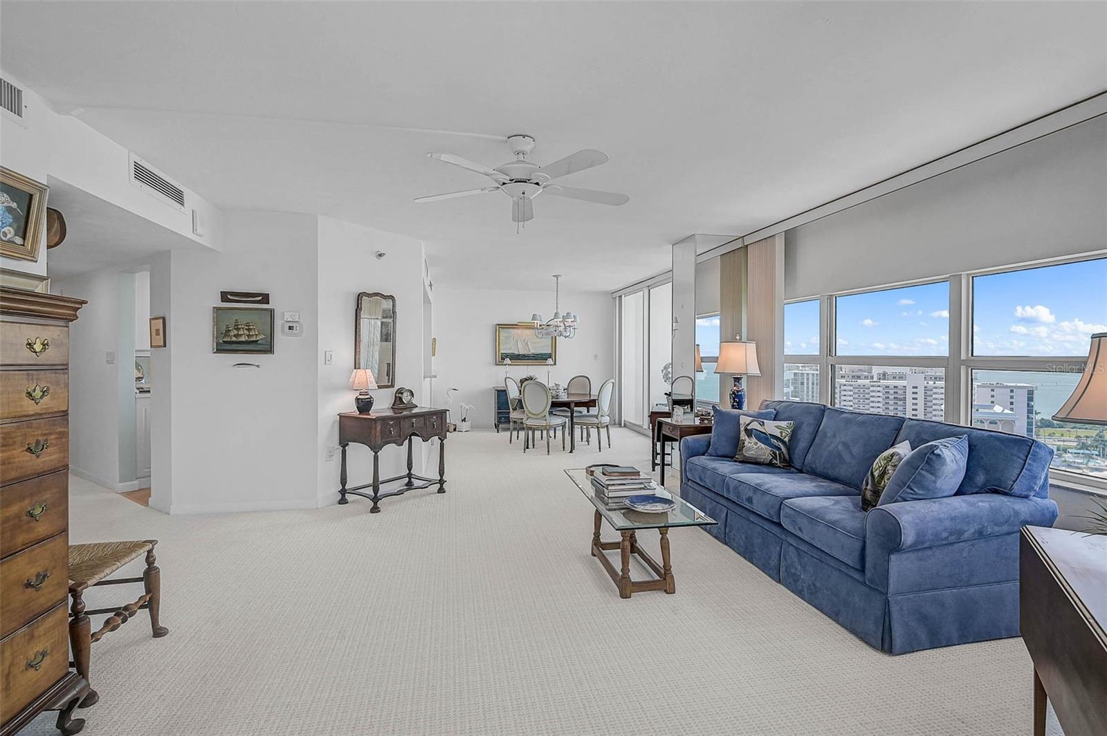 Ceiling Fans(s), Living Room/Dining Room Combo, Open Floorplan, Stone Counters, Walk-In Closet(s), Window Treatments