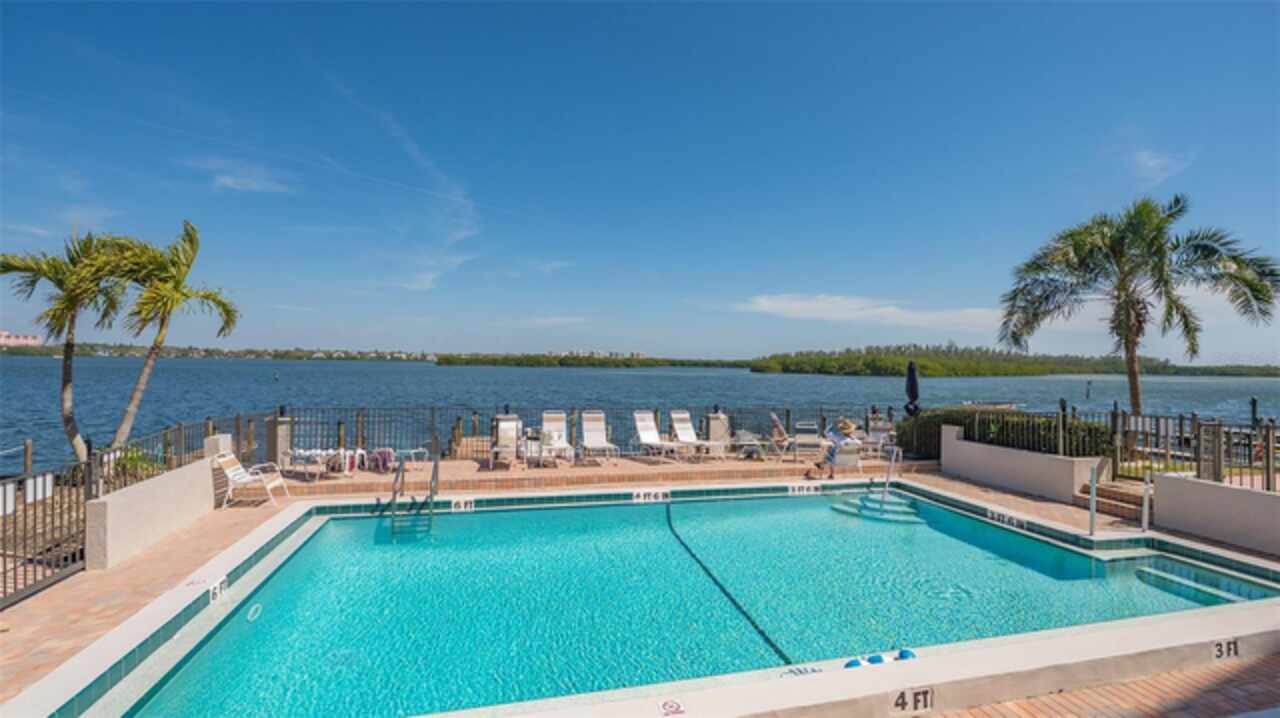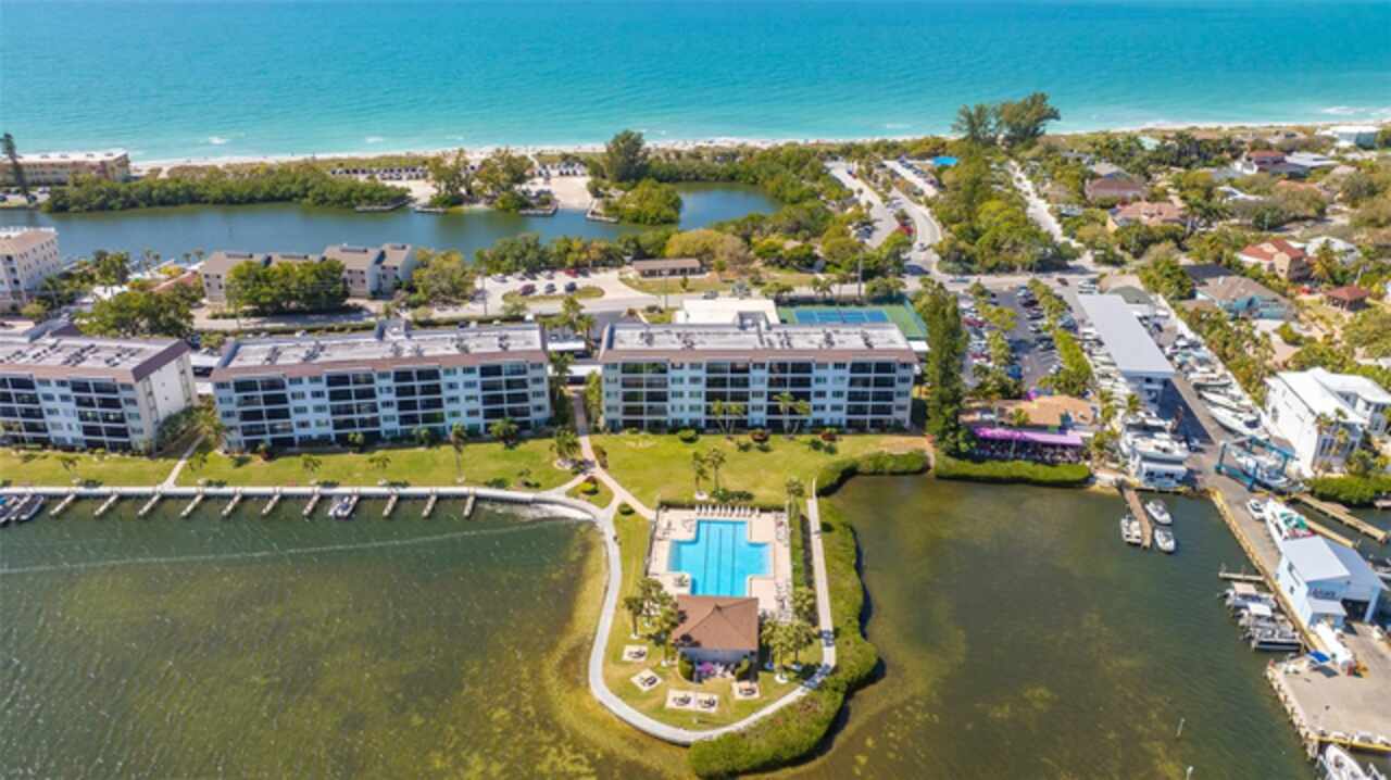 Siesta Key! Sunrise Cove has beautifully maintained grounds. Pool and Bay views. Two bedroom, two bath! Kitchen with all appliances and Island. Carport and extra storage. Amenities include two pools, tennis and pickleball, fitness center, boat slips, kayak and bike storage, Located across from Turtle Beach and Park. Close to two of Siesta Keys favorite Restaurants. (Turtle and Ophelia’s). Free trolley stop is just across the street. Free rides to shopping, restaurants, shopping, Siesta Key‘s famous white sand beach. On-site management!