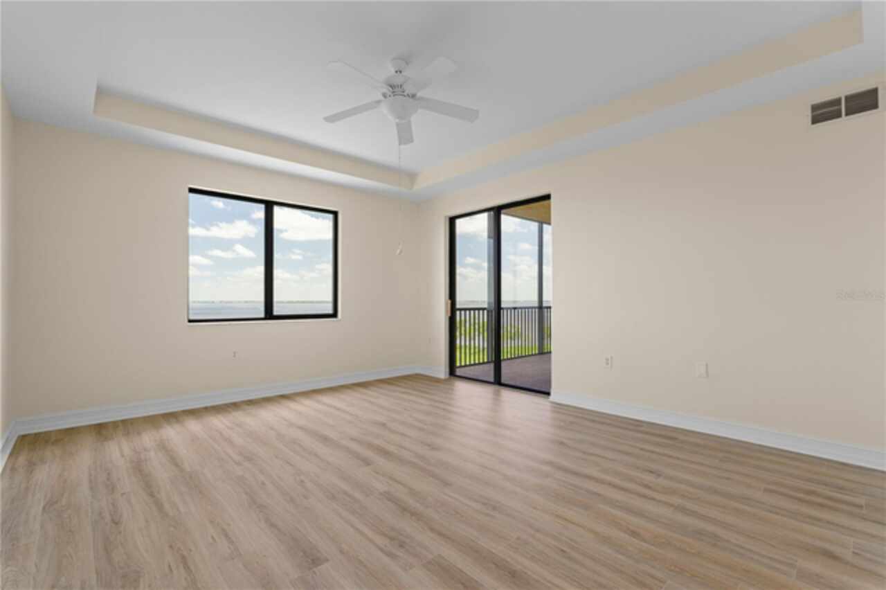 TOP-FLOOR WATERFRONT LUXURY W/PRIVATE ELEVATOR & BREATHTAKING HARBOR VIEWS - Enjoy front-row seats to sweeping views of Charlotte Harbor from this top-floor, 3 bed/3 bath condo in the resort-like community of Vivante in Punta Gorda Isles. Boasting over 2, 300 sqft of living space, this spacious condo offers a private elevator that opens directly into a large foyer. The foyer can be used as a welcoming entryway or even redefined to be used as a charming reading nook. Either way, it sets the tone for the elegance within. High ceilings and a blend of tile and new wood-look luxury vinyl plank floors enhance the open, airy layout. The great room design offers a seamless flow between the living and dining spaces, with sliding glass doors drawing your eye toward the water beyond. From morning coffee to evening cocktails, the screened balcony is your front-row seat to unmatched, full-harbor views, where sunsets light up the sky and boats glide across the horizon. The chef’s kitchen features granite countertops, dark stainless steel appliances, wood cabinetry, a breakfast bar, a center island with storage and power, and a closet pantry. Wake up to captivating harbor views in the owner’s suite, which offers walk-out balcony access, dual walk-in closets, and a luxurious bath with split vanities, a garden tub, a glass-enclosed shower, and private water closet. The split-bedroom floor plan provides exceptional privacy with two large guest bedrooms—each with a walk-in closet. One guest room includes a private en-suite bath, ideal for long-term guests. While a pocket door separates the other guest room and guest bathroom from the rest of the unit. Additional highlights include a dedicated laundry room with full-sized HE washer & dryer, utility sink, and extra storage, as well as a generous row of hallway closets. There is also a deeded under-building parking space and private garage storage unit. Vivante is a gated, waterfront community offering world-class amenities: a 12, 000 sq ft clubhouse with fitness center, sauna, and billiards; two heated, in-ground pools (lap & resort-style); heated spa; six Har-Tru tennis courts; on-site spa and seasonal tennis pro; group classes; and an active social calendar—all set against the backdrop of lush, Mediterranean-inspired, tropical landscaping. This is your chance to enjoy a vibrant Punta Gorda lifestyle—known for its boating, fishing, golf, bike trails, and thriving arts & dining scene. Schedule your private showing today and claim your place in paradise.