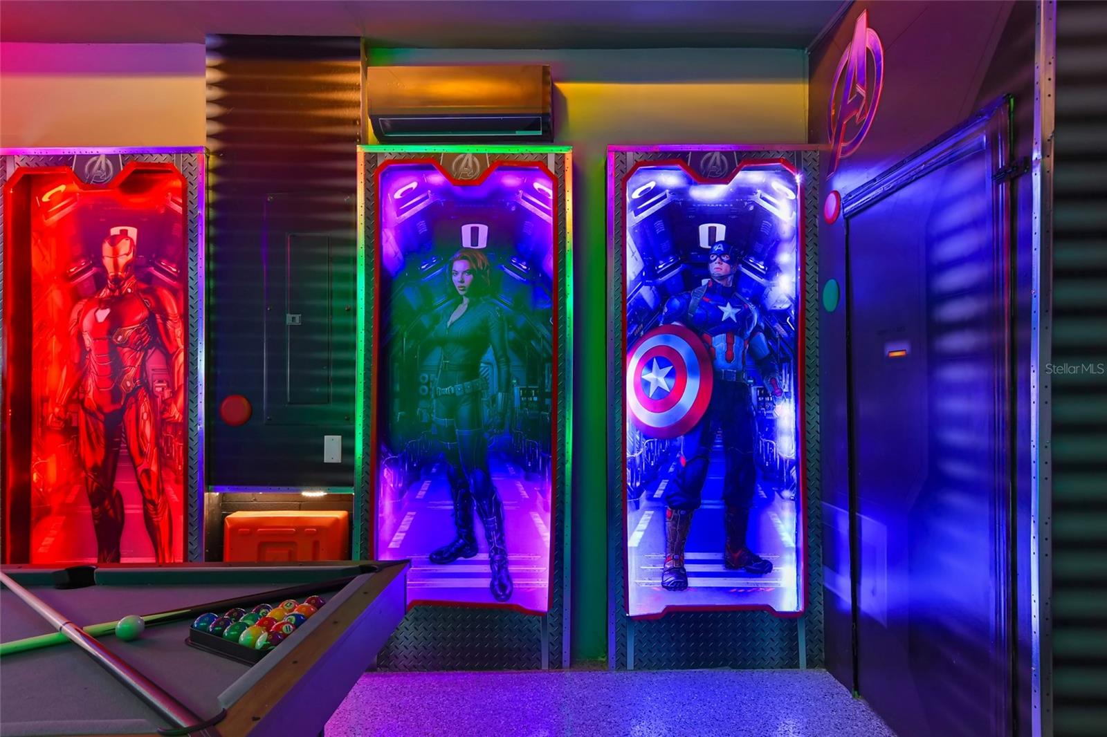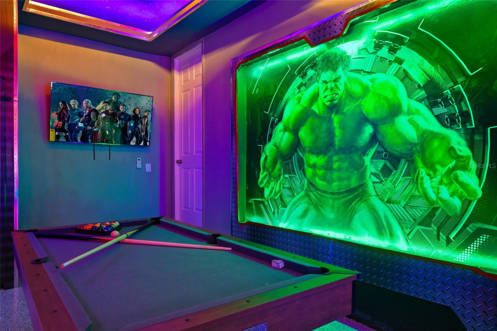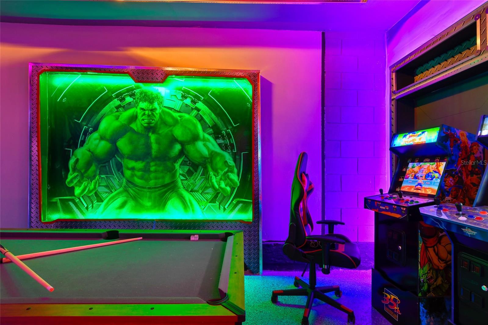 Turnkey Short-Term Rental Investment in Solara Resort! Experience the perfect blend of style, comfort, and strong rental potential with this beautifully furnished 7-bedroom vacation home in the sought-after Solara Resort. Built in 2023, this modern property features elegant tile flooring, professionally designed décor, and two primary suites—one upstairs and one downstairs—plus an additional main-floor guest suite ideal for multi-family stays. Three beautifully themed bedrooms add exceptional guest appeal, while the loft has been fully transformed into a spacious game room/movie room with new vinyl flooring. The garage is upgraded into a custom Avengers-themed arcade with split AC, maximizing entertainment value and rental performance. The open-concept kitchen showcases stainless steel appliances, granite countertops, and generous prep space, flowing seamlessly into the dining and living areas for easy entertaining. Outside, enjoy a private screened oasis with a heated pool, spa, and covered lanai—perfect for unwinding after days at the parks. Solara Resort offers world-class amenities, including a full-service restaurant, ice cream shop, coffee bar, fitness center, basketball and soccer courts, beach volleyball, a resort-style pool with cabanas, tiki bar, and splash zone. HOA fees include cable, internet, landscaping, valet trash, and common-area maintenance. Located just 8 miles from Walt Disney World and close to Universal, SeaWorld, and Orlando’s top attractions, this gated resort community delivers both a luxurious personal getaway and a high-performing rental asset. Whether you're seeking a premium investment or your own vacation retreat, this home checks all the boxes.