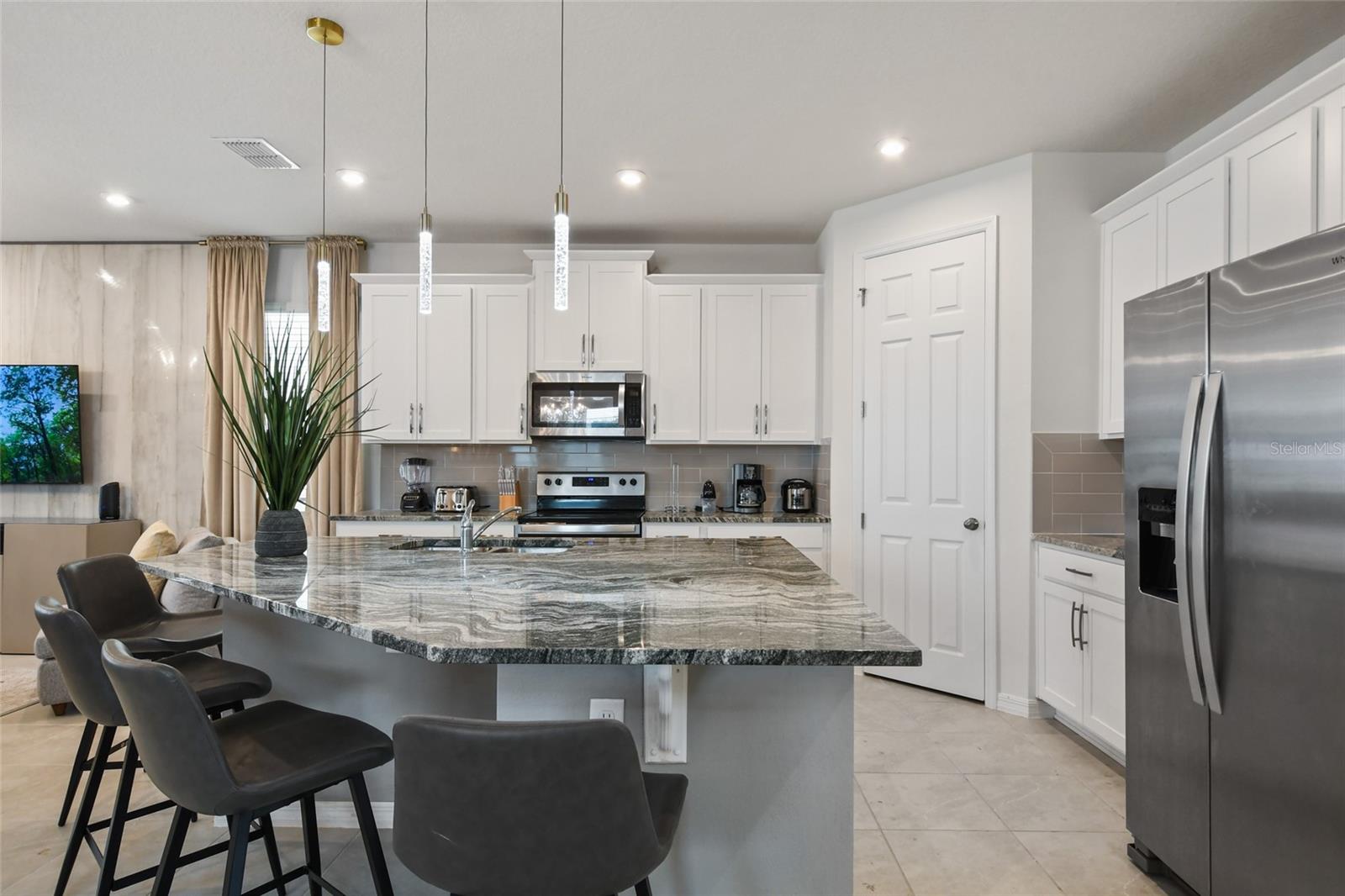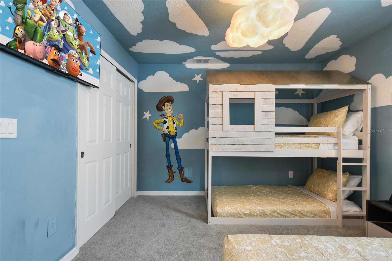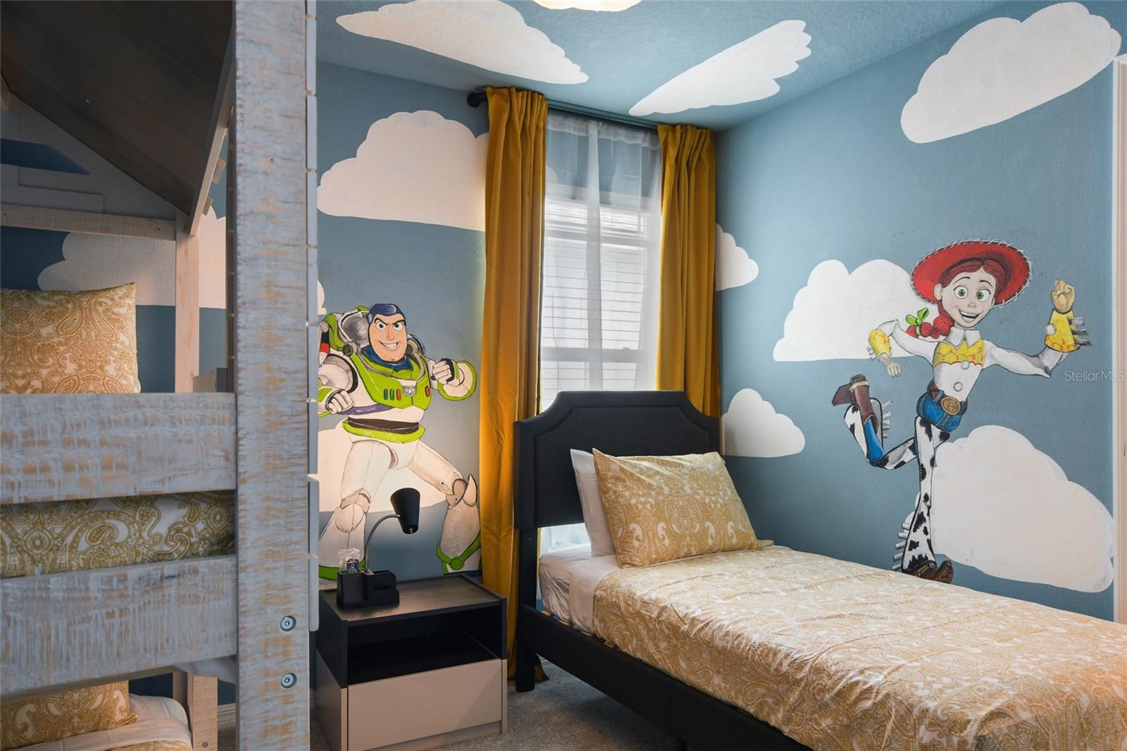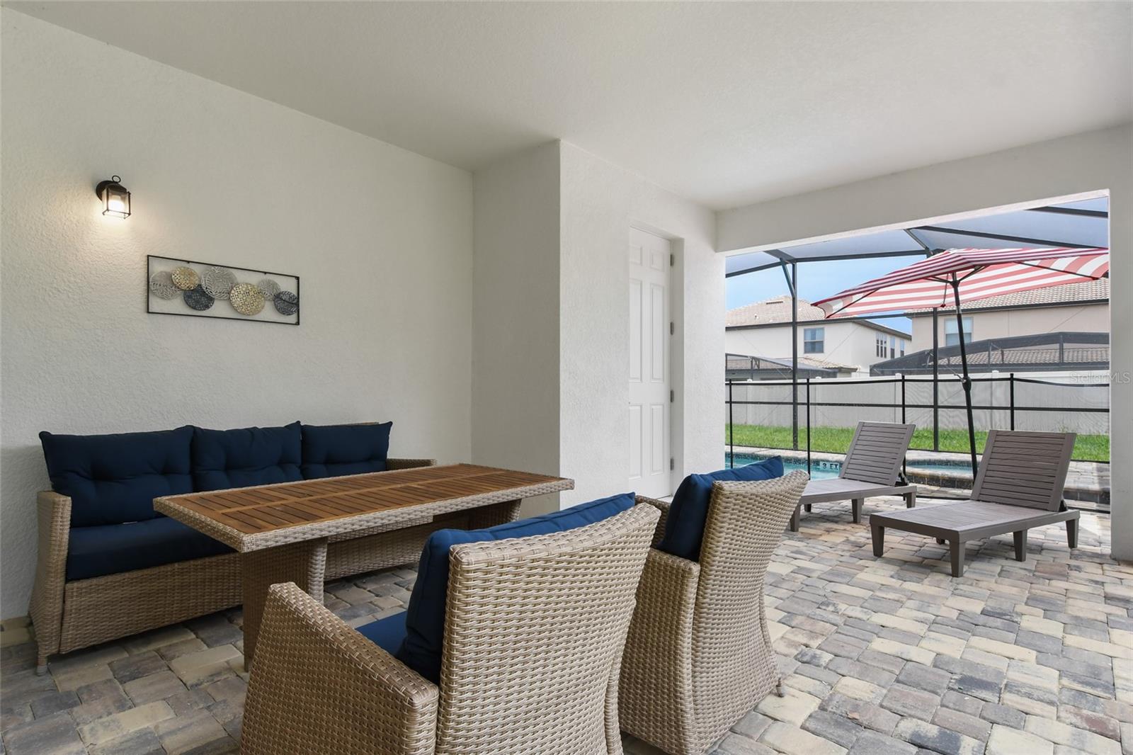 Turnkey Short-Term Rental Investment in Solara Resort! Experience the perfect blend of style, comfort, and strong rental potential with this beautifully furnished 7-bedroom vacation home in the sought-after Solara Resort. Built in 2023, this modern property features elegant tile flooring, professionally designed décor, and two primary suites—one upstairs and one downstairs—plus an additional main-floor guest suite ideal for multi-family stays. Three beautifully themed bedrooms add exceptional guest appeal, while the loft has been fully transformed into a spacious game room/movie room with new vinyl flooring. The garage is upgraded into a custom Avengers-themed arcade with split AC, maximizing entertainment value and rental performance. The open-concept kitchen showcases stainless steel appliances, granite countertops, and generous prep space, flowing seamlessly into the dining and living areas for easy entertaining. Outside, enjoy a private screened oasis with a heated pool, spa, and covered lanai—perfect for unwinding after days at the parks. Solara Resort offers world-class amenities, including a full-service restaurant, ice cream shop, coffee bar, fitness center, basketball and soccer courts, beach volleyball, a resort-style pool with cabanas, tiki bar, and splash zone. HOA fees include cable, internet, landscaping, valet trash, and common-area maintenance. Located just 8 miles from Walt Disney World and close to Universal, SeaWorld, and Orlando’s top attractions, this gated resort community delivers both a luxurious personal getaway and a high-performing rental asset. Whether you're seeking a premium investment or your own vacation retreat, this home checks all the boxes.