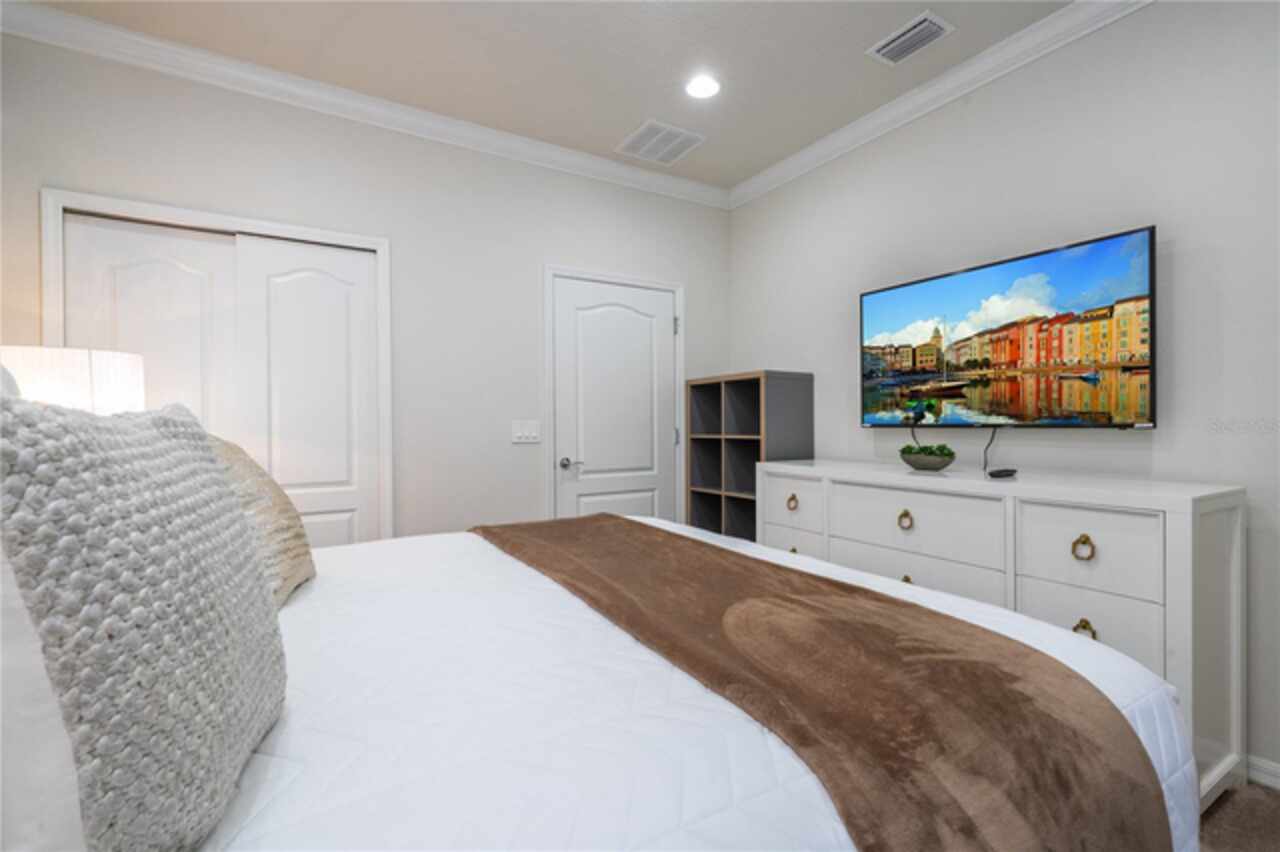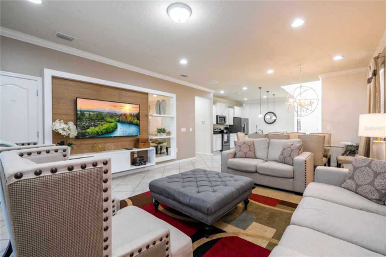 Fantastic vacation home at 8917 Rhodes Street, a fully furnished 6-bedroom, 4.5-bath home in the upscale, guard-gated community of Windsor at Westside. Just few steps from the clubhouse, this amazing upgraded and well decorated property offers everything today’s vacation home buyers are looking for > comfort, style, location, and strong rental Booking. Relax in your own private pool and spa, or wake up to tranquil views from the master bedroom and bath. Inside, over $80, 000 in Decoration through with luxury taste, wall panels and paper, designer lighting, and professionally themed rooms that delight guests of all ages. Windsor at Westside is one of Orlando’s top resort communities, featuring a zero-entry pool, lazy river, tiki bar, arcade, fitness center, and tennis courts everything for you to enjoy just few steps away. Located minutes from Disney, Universal, groceries, shopping, and dining, this home is perfect for unforgettable vacations and strong short-term rental income (with Thousands in future bookings). Whether you’re looking for a personal getaway or a smart investment, 8917 Rhodes Street is the right investment.