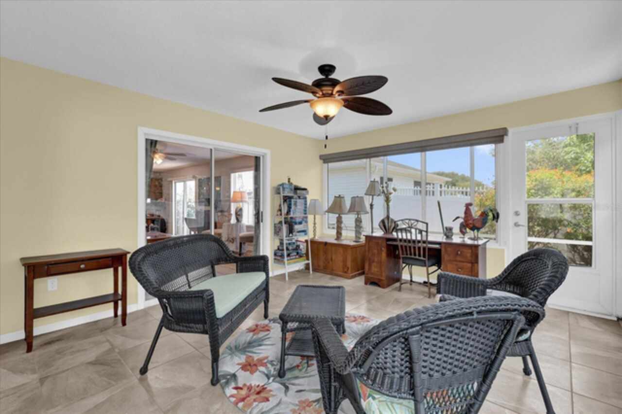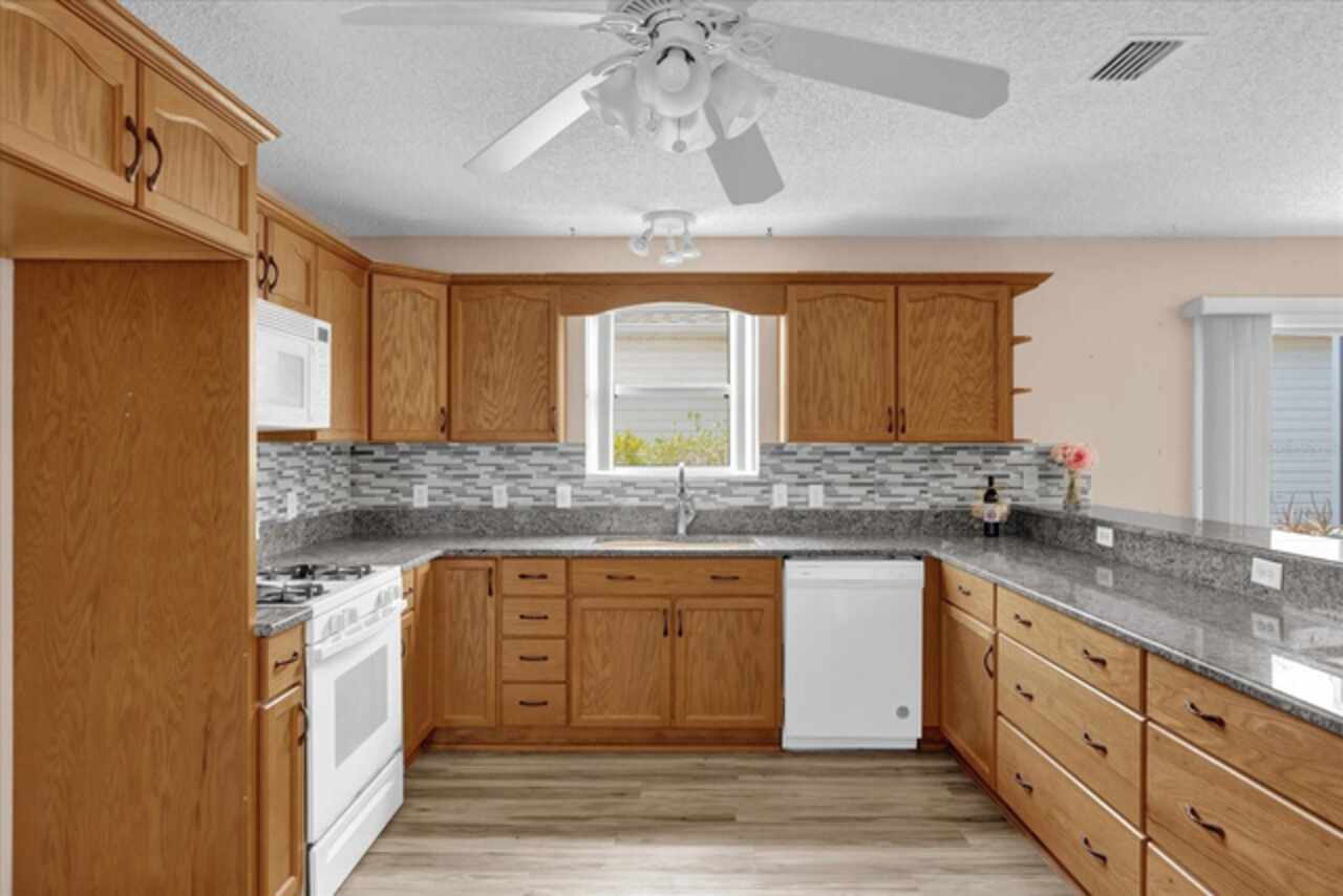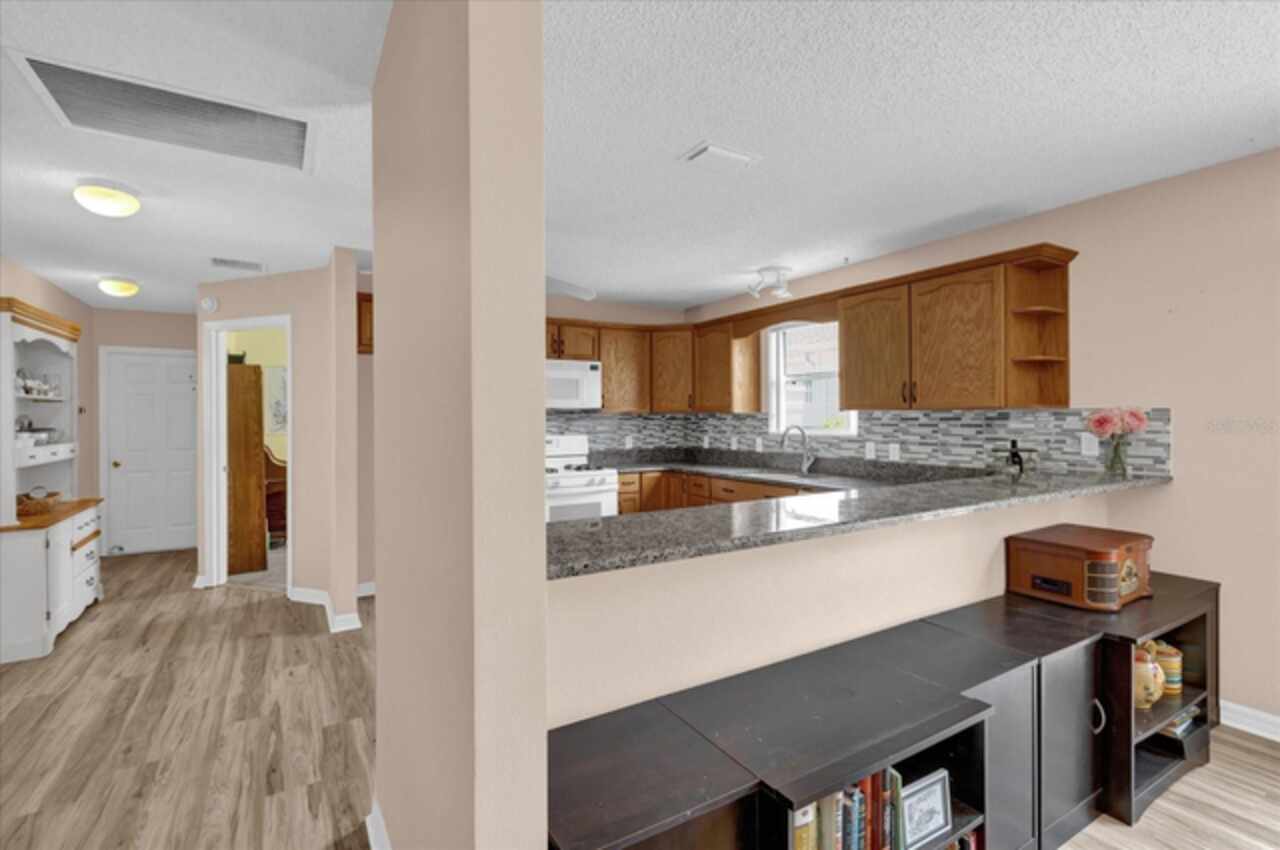 RARE FIXER-UPPER in The Villages! Opportunities like this don’t come along often—this 3-bedroom, 2-bathroom villa is priced below market for a fast, As-Is sale. The property offers incredible potential with key updates already in place, including a new roof installed in September 2021. Step inside to discover a spacious layout featuring granite countertops in the kitchen and a mix of laminate, ceramic tile, and carpet flooring throughout. One of the highlights of the home is the huge glass-enclosed lanai (sunroom) that opens to a private side birdcage, offering additional space to relax or entertain. The villa also includes a floored attic with pull-down stairs, providing valuable storage options. The front yard is accented with decorative Curb-It landscaping borders. While the home needs some TLC, major systems are already in place: the gas water heater (manufactured in 2014) and the HVAC system (manufactured in March 2014) appear to be in working condition but are nearing the end of their expected life span. This is a fantastic opportunity to create value with your personal touch—don’t miss your chance to bring your vision to life in The Villages!