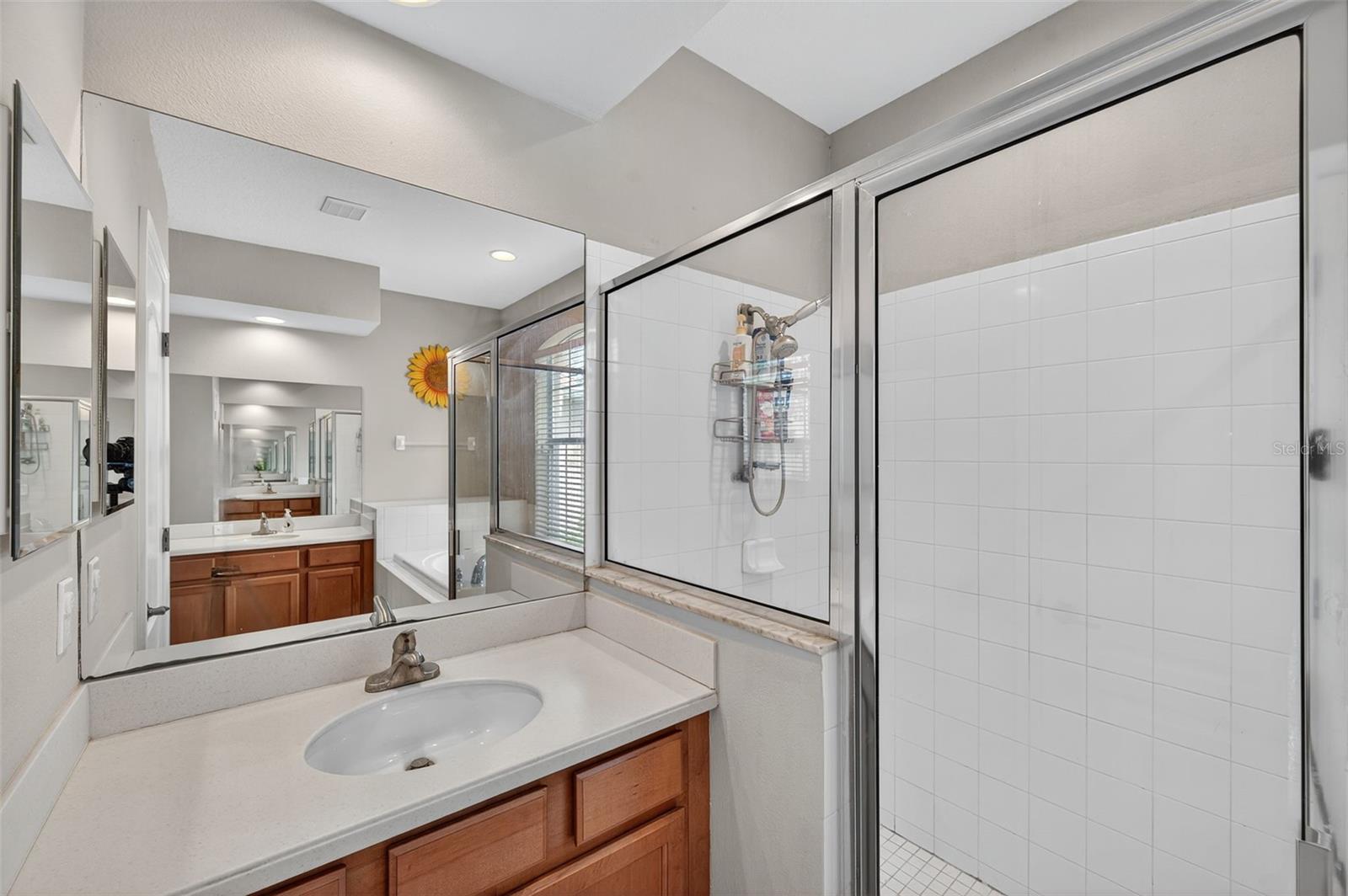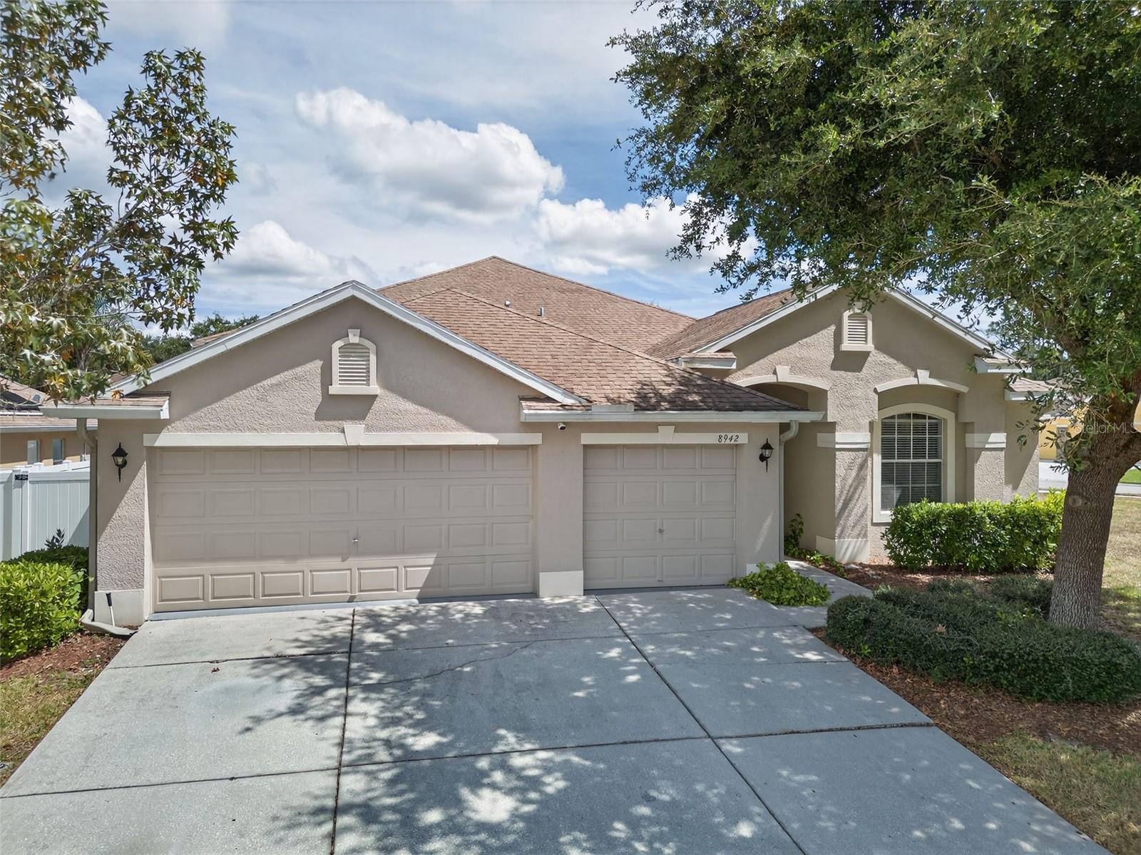 One or more photo(s) has been virtually staged. WELCOME TO YOUR EXQUISITE HOME at 8942 Sandusky Ln, New Port Richey in the UPSCALE gated community of Waters Edge. This POPULAR Savoy model features 4 bedrooms + bonus room upstairs (5th bedroom), 3 bathrooms & 3 car garage on an OVERSIZED CORNER lot of nearly 13, 300 sqft or .31 acre. Key exterior features are fully fenced backyard with vinyl fencing, covered patio, reclaimed water for irrigation, carriage lights, expansive driveway, accent lighting & security system. Stepping inside, the aura feels BRIGHT & CHEERY with NATURAL SUNSHINE streaming through the multiple windows ILLUMINATING the interior together with the updated light fixtures. The OPEN CONCEPT PLAN consists of the foyer, kitchen, dinette, dining, living & family rooms. The WONDERFUL family room features wide plank textured engineered wood floors. The FABULOUS kitchen features stainless steel appliances, 42" GORGEOUS wood cabinets with MODERN hardware, Corian counters, tile backsplash laid diagonally, pantry closet & breakfast bar. After a long day, retreat to the SENSATIONAL primary bedroom suite with private bathroom. The SPACIOUS primary bedroom can easily accommodate king size furniture & has a ceiling fan, TWO walk-in closets & direct access to the lanai through a set of double glass sliding doors. The primary bathroom with pocket door for privacy consists of double sinks with split vanities, recessed lights, Corian counters with PLENTY of cabinets for storage, private toilet room, garden soaking tub and a step-in shower. A junior owner's suite is located on the opposite side of the family room & features its own private bathroom which doubles as the potential pool bath with tub/shower combo. There is a linen closet/storage room in the hall that utilities the space under the stairs for a SMART DESIGN. In this 3-way split bedroom plan, two equal-size bedrooms share another full bathroom with tub/shower combo. The BONUS room is the ONLY room located upstairs (possible 5th bedroom) & cooled with its own AC system. Design the MASSIVE bonus room in a variety of ways such as gym/exercise center, craft room, home theater, play space or possibly an in-law/guest suite. The bonus room has a GIGANTIC walk-in closet of dimensions 17' x 5.5' AND another built-in closet. This MARVELOUS home is really ONE-STORY LIVING as EVERYTHING IS ON THE 1ST LEVEL except the bonus room which is upstairs! MORE AMAZING FEATURES in this home are archway entrances into rooms, ceiling fans in all the bedrooms, family & bonus rooms, custom blinds and/or curtain rods on the windows, pre-wired for security system & location near the end of the neighborhood on a quiet street. There is a dedicated laundry room with a door leading to the 3-car garage. A BRAND NEW ROOF will be installed prior to closing, both AC systems replaced in 2/2020 & water heater replaced in 2/2020 with proper county permits. Your AMAZING home was designed for entertaining & enjoying TRUE INDOOR-OUTDOOR LIVING! Take a dip in the community pool, use the gym or meet your fellow neighbors at the next social event within Waters Edge. More amenities are 9000sqft clubhouse, grand swimming pool, kiddie pool, basketball/pickle ball court, playground, dual fishing piers & boat dock leading to the SPECTACULAR 70-acre lake at its center. HOA fee includes Spectrum cable, high speed internet, reclaimed water irrigation, trash 2X week with recycling, security & community amenities. MAKE THIS YOUR FUTURE HOME!