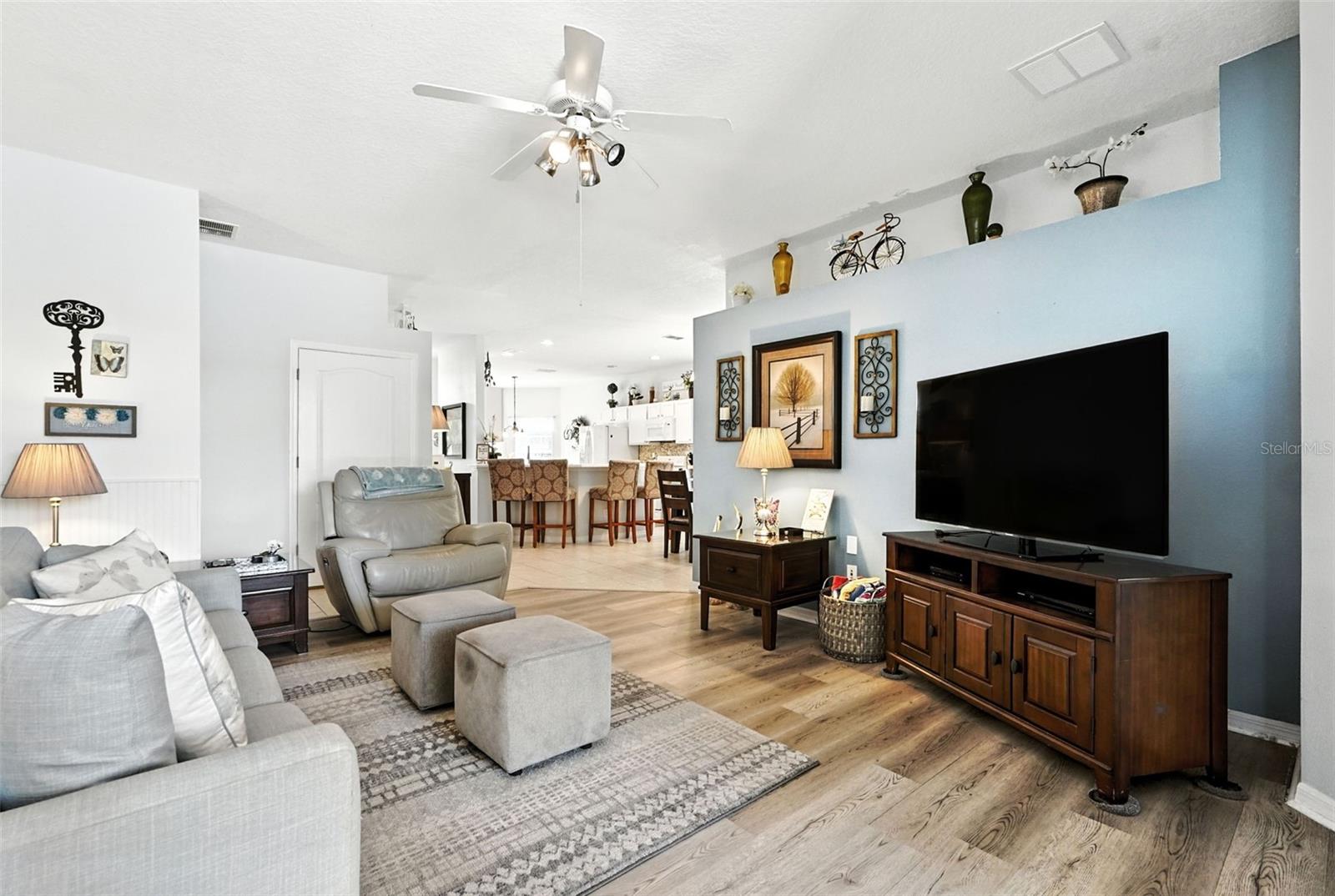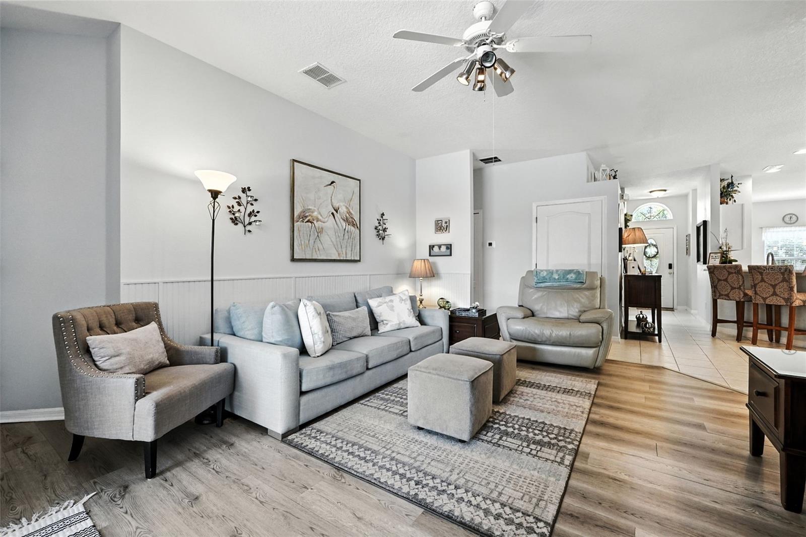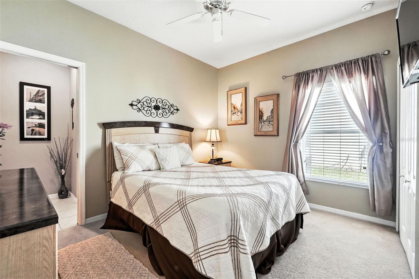 Ceiling Fans(s), Eat-in Kitchen, L Dining, Solid Surface Counters, Solid Wood Cabinets, Split Bedroom, Walk-In Closet(s), Window Treatments