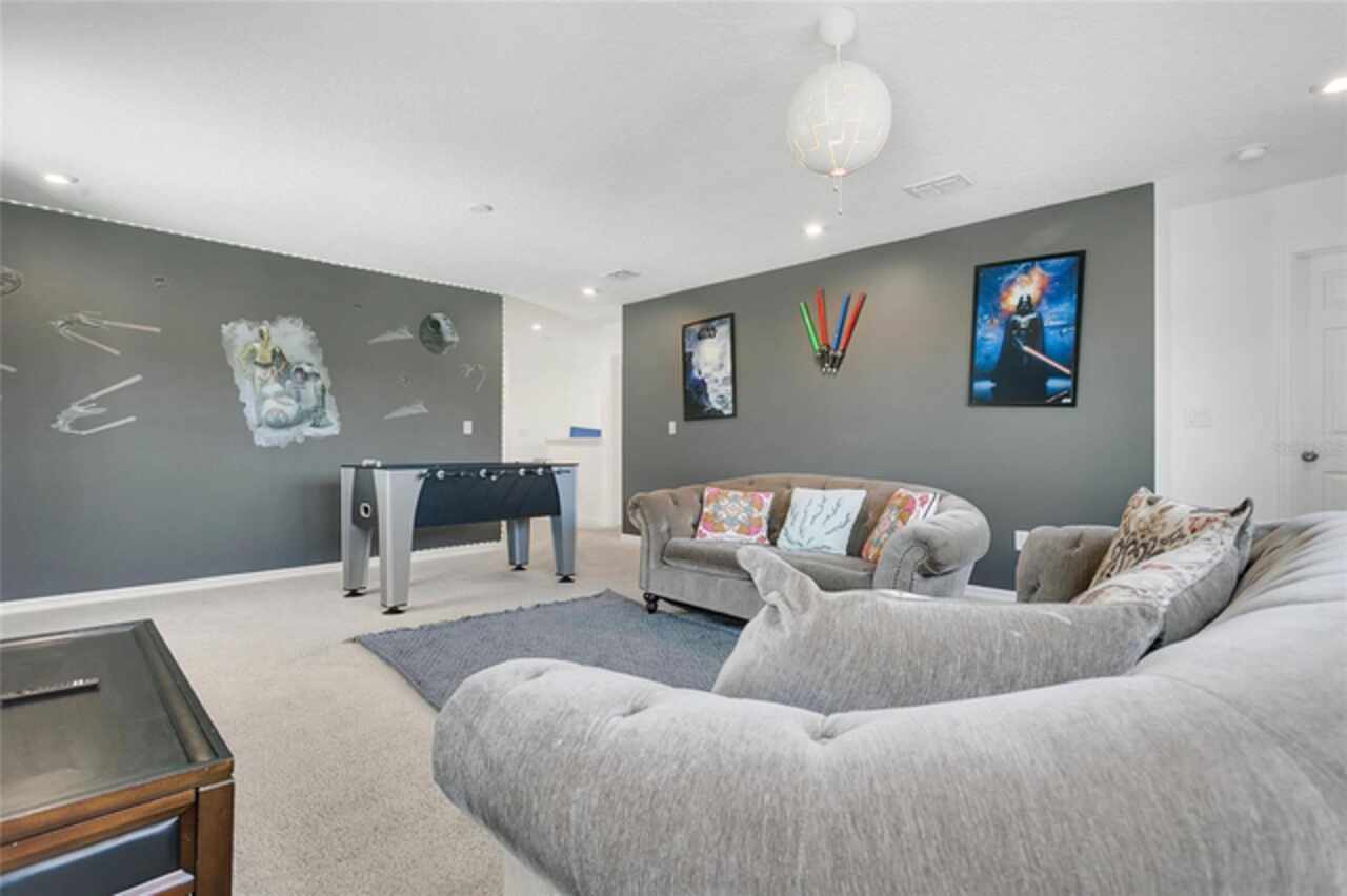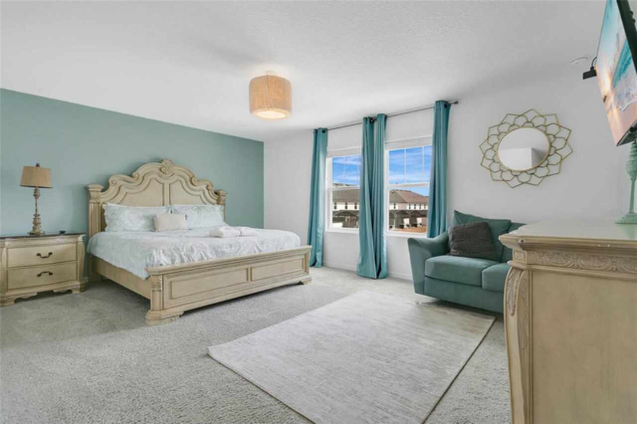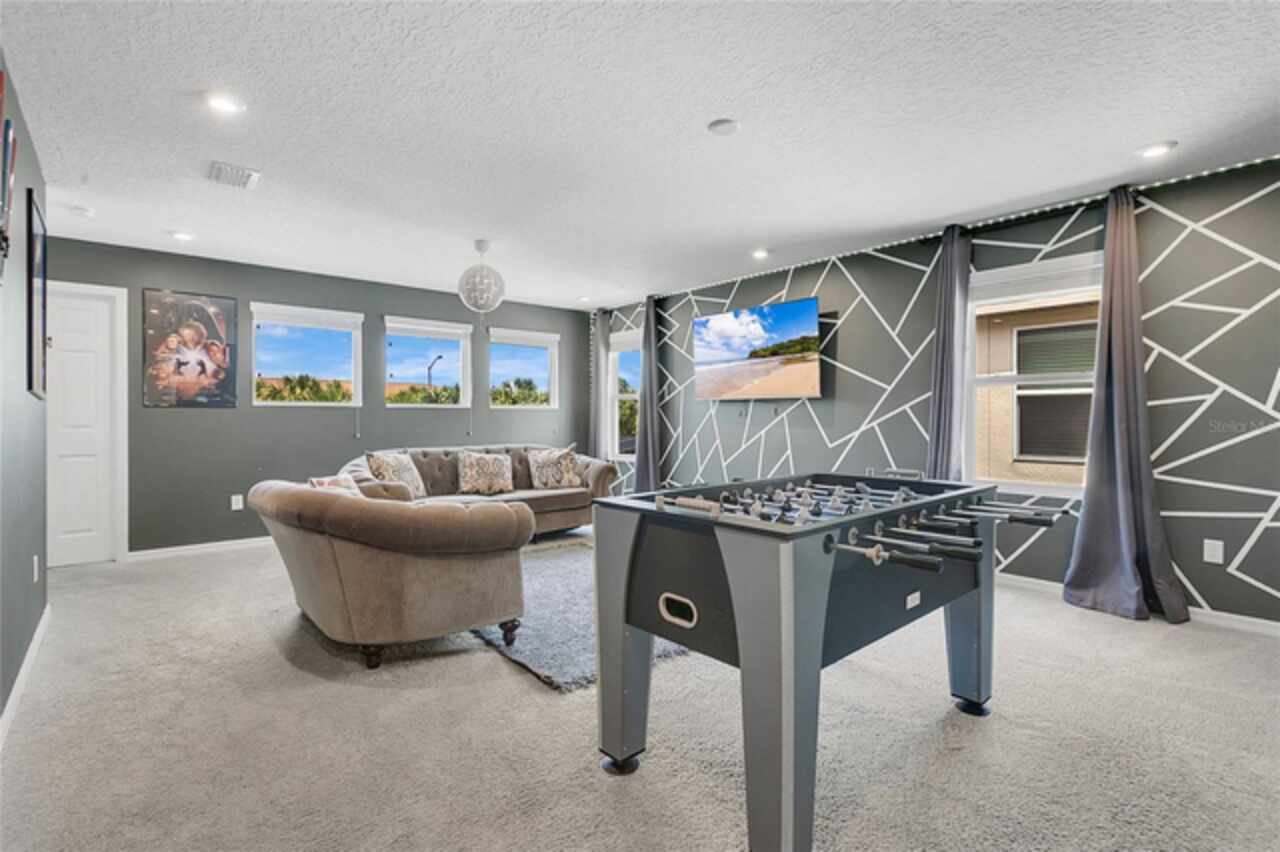 PRICED TO SELL! Turnkey Income-Generating Short-Term Rental Home! Seize a remarkable investment opportunity with this fully furnished, turnkey gem! Nestled in the desirable Solara community in Kissimmee, this stunning 7-bedroom, 6.5-bath residence masterfully combines luxury living with vacation-style comfort. With two primary suites—one on each floor—and an additional guest bedroom suite on the main level, this home offers unparalleled flexibility and privacy. Each themed room is expertly crafted to appeal to a broad range of guests, enhancing its rental potential. Step outside to your private oasis featuring a covered patio, a screened-in heated pool and spa—perfect for relaxation and entertainment. Enjoy the impressive clubhouse amenities, including a full-service restaurant, ice cream parlor, and coffee bar. Fitness enthusiasts will love the gym, while outdoor activities abound with basketball, beach volleyball, and soccer facilities. Unwind at the zero-entry pool, complete with cabanas, a tiki bar, and a splash pad for endless fun. HOA fees include basic cable, internet, landscaping maintenance, valet trash service, and common area upkeep. Solara Resort’s prime location, just 8 miles from Walt Disney World, provides easy access to Universal Studios, SeaWorld, and I-Drive. Whether you're looking for a luxurious vacation home or a lucrative investment property, this gated resort community is the ultimate choice.
