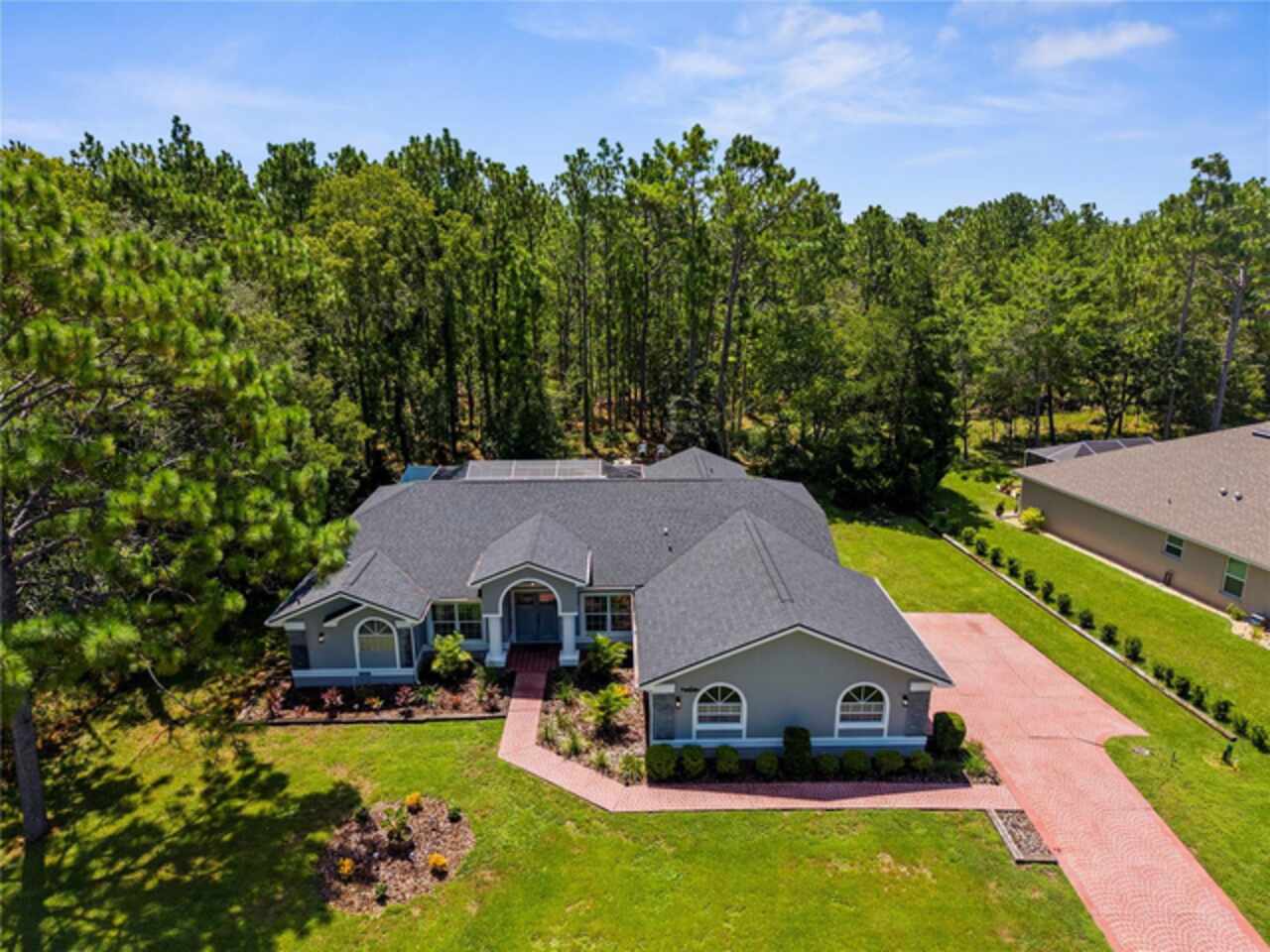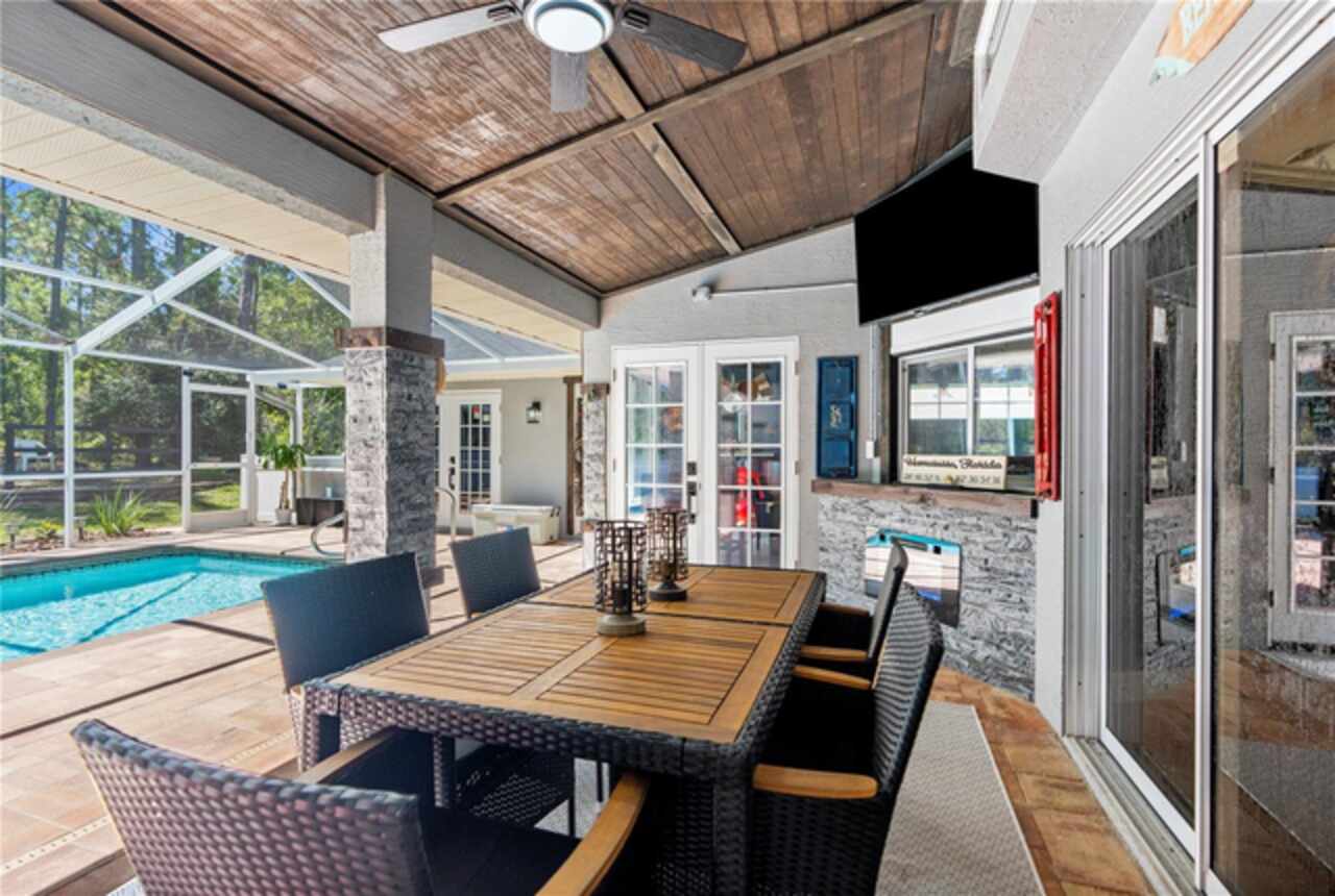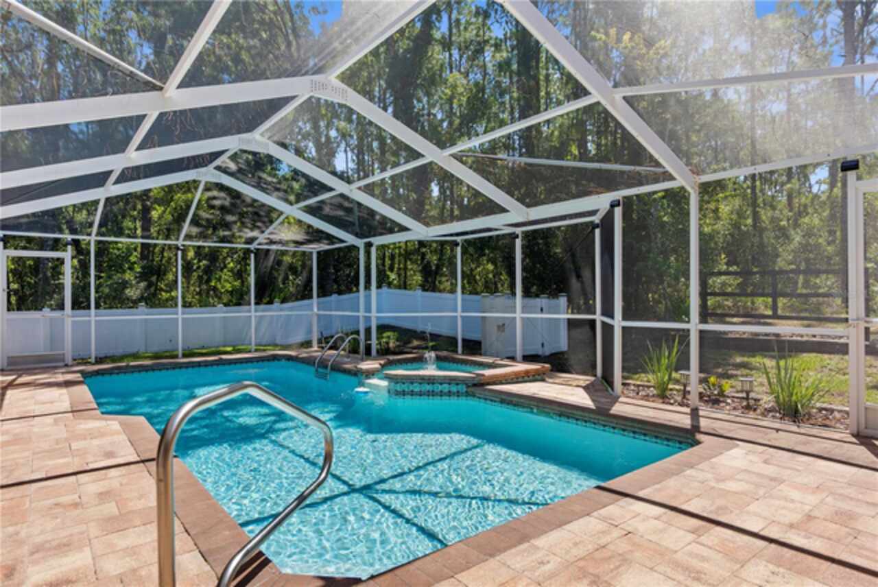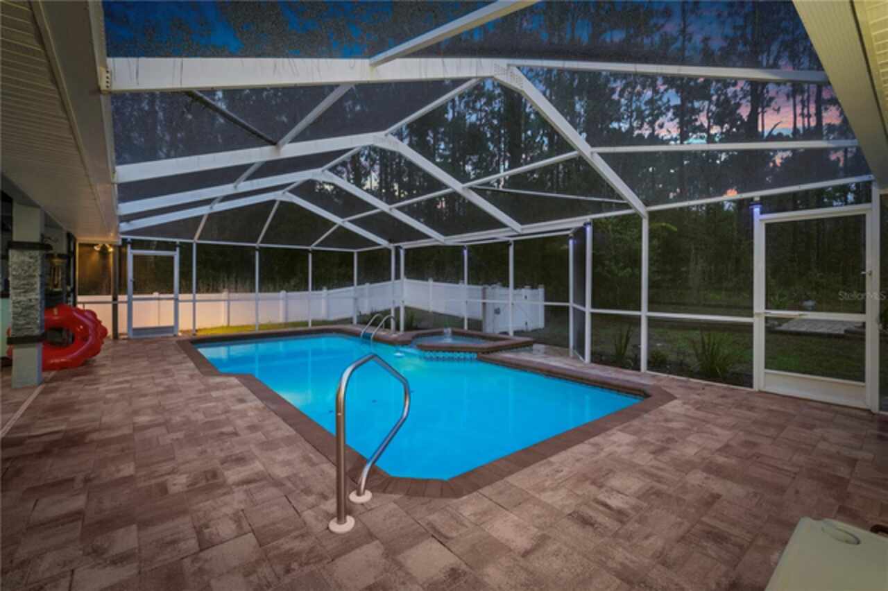 MOVE IN READY! Free one year HOME WARRANTY! 3 bedroom + LARGE bonus room! Tucked away at the end of a peaceful cul-de-sac and backing up to a tranquil wooded preserve, this beautifully updated POOL home offers privacy, style, and seamless indoor-outdoor living. With a newer roof (2021) and thoughtful upgrades throughout, this residence is truly move-in ready. A decorative paver driveway leads to a side-entry two-car garage and double front doors beneath a charming covered entry. When you walk into the home you will discover the main living areas filled with natural light, creating a bright and airy atmosphere. The desirable floor plan includes a spacious family room, formal dining area, and a separate living room/kitchen/breakfast nook combo—perfect for both daily living and entertaining. The chef’s kitchen is a true showstopper, featuring custom white shaker cabinetry, gleaming quartz countertops, stainless steel appliances, a breakfast bar, and stylish wood flooring throughout the main spaces. French doors off the breakfast nook open to a private screened-in lanai with a heated pool and spa, paver decking, and a pass-through window to the kitchen—your personal backyard oasis for year-round entertaining. Enjoy cool evenings by the outdoor fireplace on the covered back porch or take a stroll down the winding path through the backyard, past the fenced dog run, to a serene retreat nestled among the trees. Expansive primary suite, featuring cathedral ceilings, a sliding barn door to a spa-inspired ensuite bath with dual vanities, soaking tub, walk-in shower, and large walk-in closet. Two additional guest bedrooms and a versatile flex space—ideal for a home office, gym, media room, or fourth bedroom—complete the layout. Just a few miles to the Suncoast Parkway for an easy commute to Tampa, and close to some of Florida’s best natural attractions: Crystal River, where you can see manatees, paddle through crystal clear spring fed waters, visit shops and local restaurants downtown. Homosassa Springs Wildlife State Park for enjoying wildlife up close, and Fort Island Gulf Beach, if you’re looking for a peaceful, laid-back, and perfect place to catch a sunset over the Gulf. This is more than a home—it’s a lifestyle of comfort, tranquility, and everyday luxury