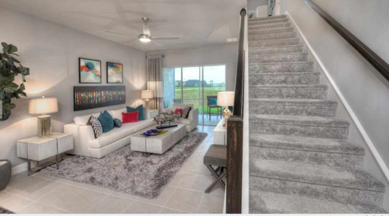 NEW PHASE! MOVE IN READY! The Blossom II is a two-story townhome with 3 bedrooms and 3 bathrooms blending comfort with sophistication. Beautiful lake front location! The open first floor distinctively separates the space with a well-appointed kitchen open to the dining and living rooms. Upstairs, you will find a generous size bonus room with tray ceiling and an additional bedroom with walk in closet plus full bath. The Blossom II is not just a home but a place for cherished memories. Features include deluxe kitchen, 10' ceilings, tray ceilings, open plan, screened and covered lanai, paver drive and much more! Sub. Assoc. of 264/month includes, internet, Hotwire Access TV package, lawn, irrigation maintenance & roof. BRAND NEW STATE OF THE ART CLUBHOUSE NOW OPEN! PICTURES ARE OF A FURNISHED MODEL AND NOT ACTUAL HOME. HBW Home Warranty included. Substantial discounts to the club if buyer joins within 30 days of closing.