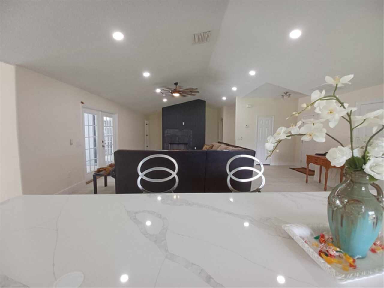 One or more photo(s) has been virtually staged. NOW REDUCED 10, 000.00. JUST COMPLEATED end of Sept. 2025.FULLY RENOVATED, one of a kind beautiful home in the desirable Pine Lakes Country Club community. This 3 bedroom, 2 bath, 2 car garage with 1, 900 living square feet offers you a brand new and a redesigned home. Brand new roof, new HVAC system Oct. 29th, 2025, luxury vinyl flooring in main area and hallway that is 8mm thick with a 22ml wear layer in all areas except the 2 baths with porcelain tile. Fully redesigned kitchen including an entire wall removed to give you the open floor plan. BEAUTIFUL Kitchen with soft close cabinets, quartz counter tops and a beautiful coffee bar with even more custom cabinets and a mini fridge. Wait till you see in the pictures, the beautiful long island with farmhouse style sink. Both Primary bath and second bath have been fully redesigned and renovated with dual sinks, cabinets, flooring, added shower in Primary Bath, soaking tub and beautiful lighted mirrors. Primary bath offers a separate toilet area behind a door for your privacy. Extended Lanai partially under roof has all new pavers and enjoy the privacy of the woods behind this home. Throughout the home you will see all the new recessed lighting, new 6" baseboards, fully painted inside and out including a sealed driveway and garage floor with a code pad on the exterior of garage door and new landscaping. All renovations and design were done by a custom builder and designer, and you will see all the moment you walk into the front door. Bathrooms and kitchen offer high end fixtures, and there's even a redesigned wood burning fireplace in the great room for the chilly Florida evenings. This is truly a one-of-a-kind home in the desirable Pine lakes Country Club Community. Come see for yourself and I know for sure...you will fall in love. *** New A.C system installed Oct. 29, 2025. All this for just 358K, great price, great neighborhood, close to beach, shopping and new hospital. Come see for yourself. Motivated seller.