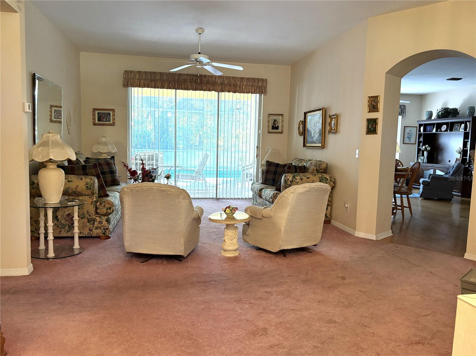Beautifully maintained home located in the Fairway Estates subdivision of Rainbow Springs Country Club Estates. This home features 3 bedrooms, 2 bathrooms and a two-car garage with a pool. The Greystone Model has always been a favorite in the community and this one shows why. Separate Living and Family Rooms, formal dining and a small area off kitchen for informal meals as well as a breakfast bar. Newer appliances all work well and will be left in the home. The kitchen and family room have hardwood flooring. The split plan has 2 bedrooms and the guest bath on the opposite side of the home from the primary suite for privacy. The large lanai with new screening on the screen room over the pool is great for entertaining. The pool has both solar heat and an electric heater for the chilly seasons. The back yard is full of blooms in the spring, but a bit of trimming would bring back the access to the green way that used to be the golf course directly behind the home which gives you access to walk fido or just go walking for exercise. This home has it all and has been well taken care of. The ANNUAL ASSESSMENT will be $250/year beginning in 2026. This gives you access to the Member only River Park where you can swim, launch your kayak/canoe/paddleboard/tube and several options for hanging to just enjoy the river life with friends and neighbors while picnicking, talking or watching the wildlife on the river. The Community Center offers a billiards room, fitness room, several meeting rooms as well as outside activities that include tennis/pickle ball, basketball, horseshoes, shuffleboard, disc golf, bocce or swimming in the community pool. There is also a public restaurant on site,