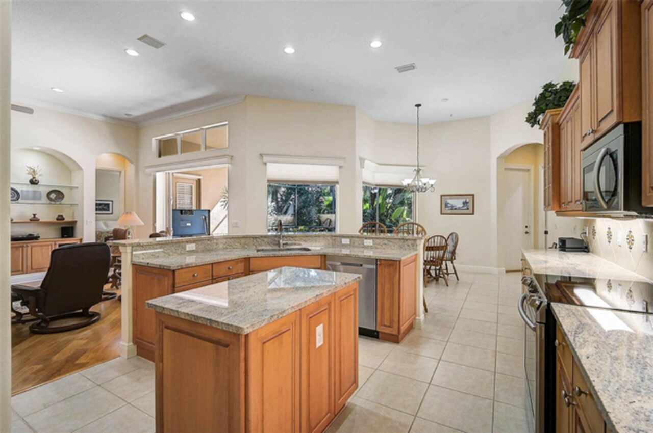 LOCATION! LOCATION! Tucked away on a quiet cul-de-sac and resting on a corner lot, this METICULOUSLY MAINTAINED, Custom-built, JOHN CANNON home in exclusive North Creek Estates offers the perfect blend of privacy, luxury, and convenience. With a NEW ROOF (2020), low HOA fees, and 2, 443 sq. ft. of thoughtfully designed living space, this 3-Bedroom + Office/Den, 2-Bath residence is MOVE-IN READY and packed with quality upgrades. The updated kitchen is a chef’s dream, featuring stainless steel appliances including a New refrigerator, granite countertops, a center island, breakfast bar, raised-panel wood cabinetry, pantry, and a charming eat-in nook with an aquarium glass window. The light-filled great room showcases elegant wood flooring, a built-in entertainment center, and a surround sound system—ideal for entertaining or relaxing. Unwind in the spacious master suite with walk-in closet and a luxurious bath complete with granite counters, a tiled walk-in shower, and a garden tub. Step outside to the large screened lanai (re-screened in 2021), framed by lush tropical landscaping—perfect for enjoying the Florida lifestyle. Additional features include crown molding, custom closets, hurricane shutters, an oversized 2-car garage, irrigation well, hot water recirculating pump, hot water tank (2021), washer and dryer (2019), double front door (2022), etc. Residents enjoy a prime location close to area beaches including #1 rated Siesta Beach, shopping, dining, cultural attractions, and the highly rated Pine View School. Don’t miss the opportunity to own this exceptional home in one of the area's most desirable communities!
