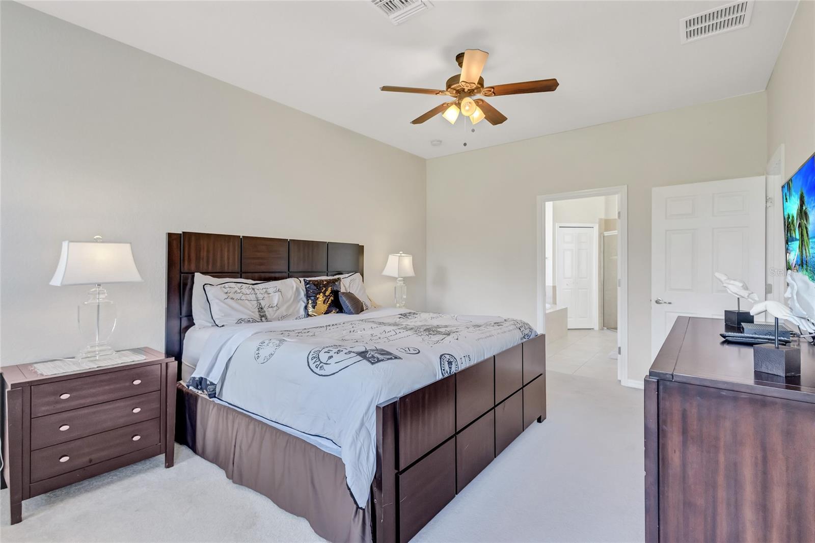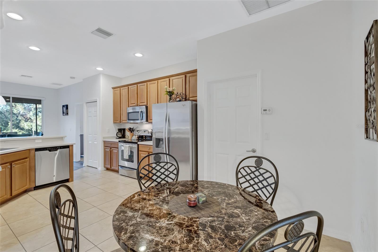 Ceiling Fans(s), Eat-in Kitchen, Open Floorplan, Primary Bedroom Main Floor, Solid Surface Counters, Solid Wood Cabinets, Thermostat, Window Treatments