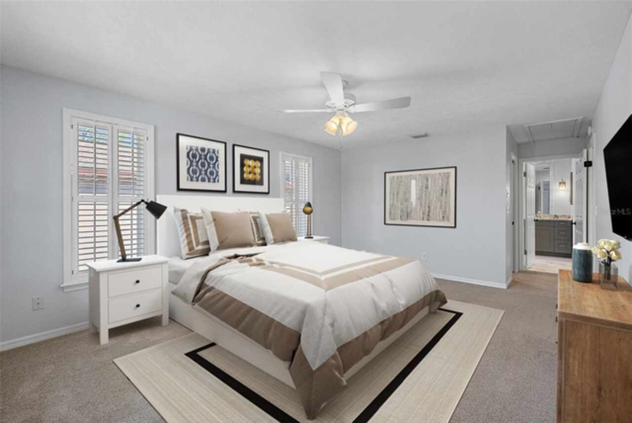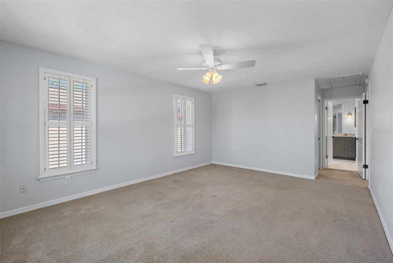 Cathedral Ceiling(s), Ceiling Fans(s), Eat-in Kitchen, PrimaryBedroom Upstairs, Solid Surface Counters, Solid Wood Cabinets, Thermostat, Walk-In Closet(s), Window Treatments