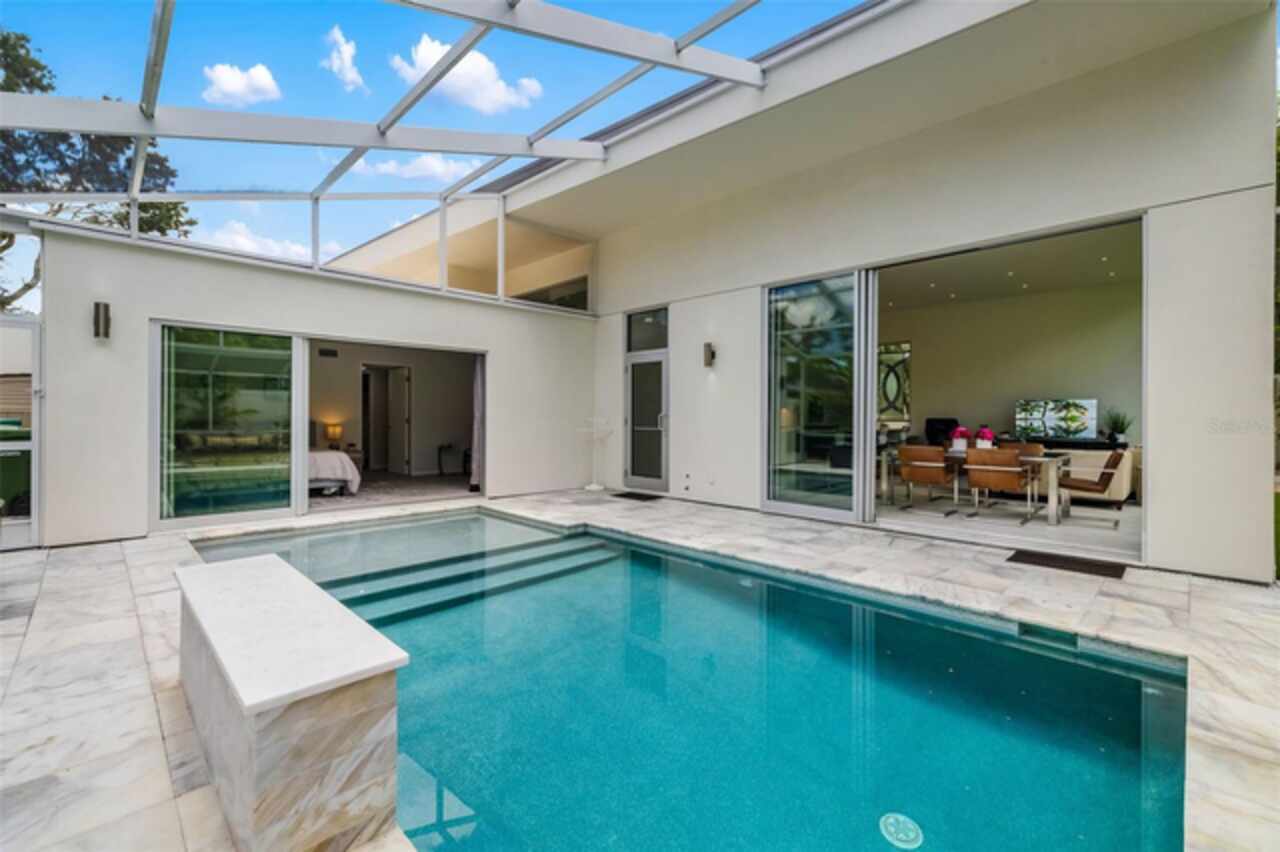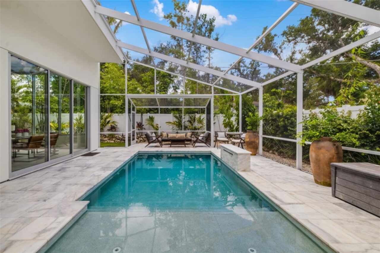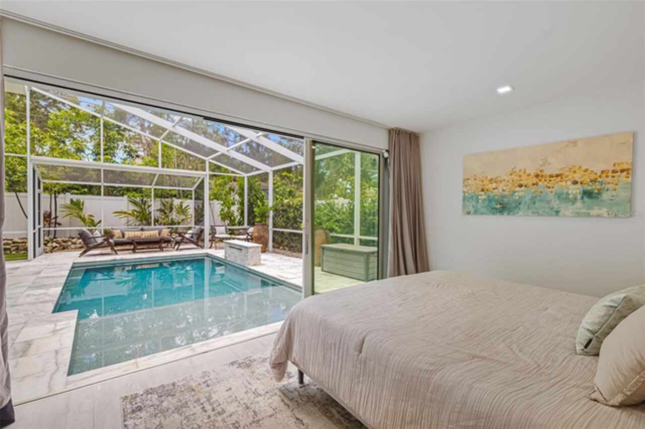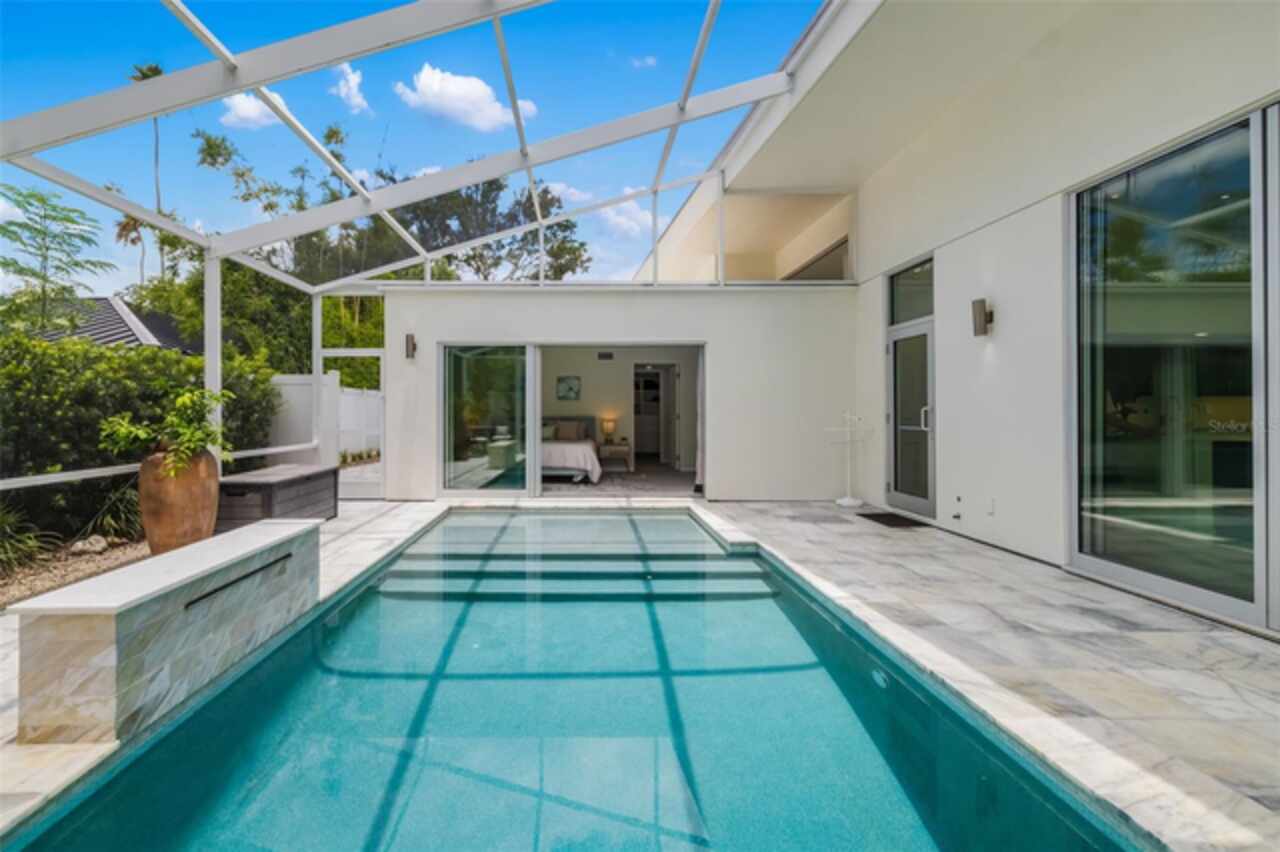 Under contract-accepting backup offers. Ralph Twitchell’s Lu Andrews House #2 — An Icon of Mid-Century Modernism, Thoughtfully Reimagined Step into Sarasota’s architectural legacy with this one-of-a-kind residence designed in 1941 by Ralph Twitchell, the visionary behind the Sarasota School of Architecture. Originally crafted for his secretary Lu Andrews, this historic home represents the first known use of stacked concrete block in residential construction—a true innovation of its time. Located in the highly sought-after Indian Beach neighborhood and perched outside of the flood zone sitting at 16.5 feet, 904 Virginia Drive blends historic character with modern luxury across 1920 square feet of inspired living space. The home was masterfully expanded in 2009 by renowned architect James Bowen, AIA. In 2024, upgrades, including a new 2-car garage and an extended foyer entrance, as well as a third bathroom were added to complement the original design while enhancing everyday function. Inside, you'll find a thoughtfully curated blend of mid-century elements and contemporary finishes. 3 bedrooms, including a stunning primary suite with views of the resort-style pool and gardens. Expansive great room with 16’ ceilings, wide overhangs, and walls of glass echoing the iconic Sarasota School style. Large tiled floor throughout, commercial-grade sliders, and smart power window shades. A chef’s kitchen with Caesarstone countertops, gas cooktop, and a large island perfect for entertaining. Indoor-outdoor flow leading to a private pool with a marble deck and cascading waterfall. Other notable features include: 2021 HVAC system, alarm system and LED European lighting, whole house water filtration, on-demand tankless water heater, additional storage and landscape lighting with irrigation. Located just steps from Sarasota Bay and minutes from Downtown, St. Armands Circle, the Ringling Museum, and Lido Beach, this residence offers architectural prestige with an unbeatable lifestyle location. This is more than a home—it’s a piece of Sarasota’s architectural soul