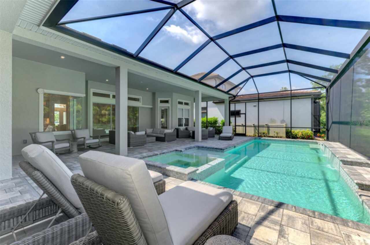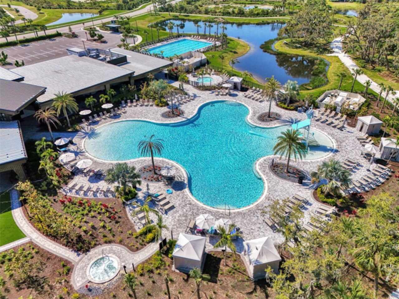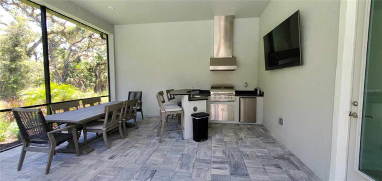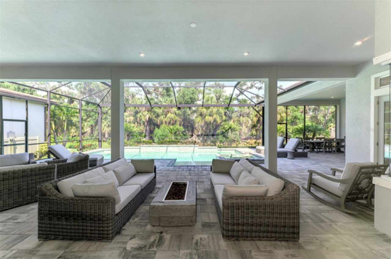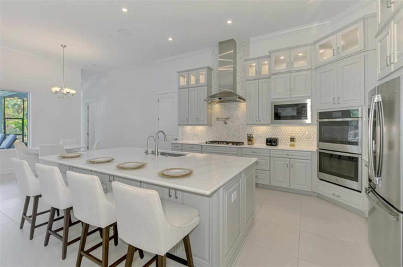 Beacon West Indies meticulously designed luxury home, custom pool & spa with an outdoor kitchen / entertainment area. Located in Sarasota’s exclusive Skye Ranch community. Nestled against serene preserve views, this residence seamlessly blends indoor and outdoor living with triple pocket sliding glass doors in the expansive great room to create a truly seamless connection to the outdoors. The luxurious owner’s suite, situated along the left side of the home, is a private sanctuary with direct access to the pool area, two expansive walk-in closets with custom built-ins, and a spa-like en-suite bathroom boasting dual vanities, an oversized shower with a rain shower heads, and a private water closet. Remote- controlled shades allow effortless adjustment for light and privacy. A dedicated home office or den provides a functional, yet stylish workspace. Luxury oversized floor tile throughout the home, recessed lighting, tray ceilings, and crown moldings elevate the interior’s modern elegance. The chef’s kitchen is a masterpiece, complete with upgraded quartz countertops, large stainless steel sink, under cabinet lighting and in cabinet upper lighting, Profile appliances, pot filler at the range, two dishwashers, water filtration, tiled backsplash with accents and a generously sized pantry. Enjoy an open-concept floor plan and high ceilings. Large windows allow natural light to flood the living spaces, creating a bright and airy atmosphere. Triple sliding glass doors in the great room area that pocket to create a truly seamless connection to the outdoors. The outdoor oasis is completed by an oversized gas heated saltwater pool, an infinity-edge spa, landscape lighting and upgraded landscaping. This property offers unmatched privacy and tranquility. Custom outdoor kitchen with curved granite high top counter, built in stainless steel grille, sink with hot and cold water, beverage refrigerator and a large TV mounted on the wall is perfect for entertaining with family and friends. The location is just moments from scenic walking trails and the newly completed amenity center. The paver driveway leads to a spacious three car side entry garage. Residents of Skye Ranch enjoy access to The Hub, a 25, 000-square foot resort style community center featuring state of the art fitness facilities, resort pool and a separate lap pool, a rock climbing wall, basketball court, splash pad, café, test kitchen, meeting spaces, and an expansive event lawn. Located just 23 minutes from Siesta Key Beach, 30 minutes from the airport, and close to top rated schools, shopping, and dining, this home offers an unparalleled Sarasota lifestyle. Showings by appointment only. Schedule your private tour today and experience coastal luxury at its finest!