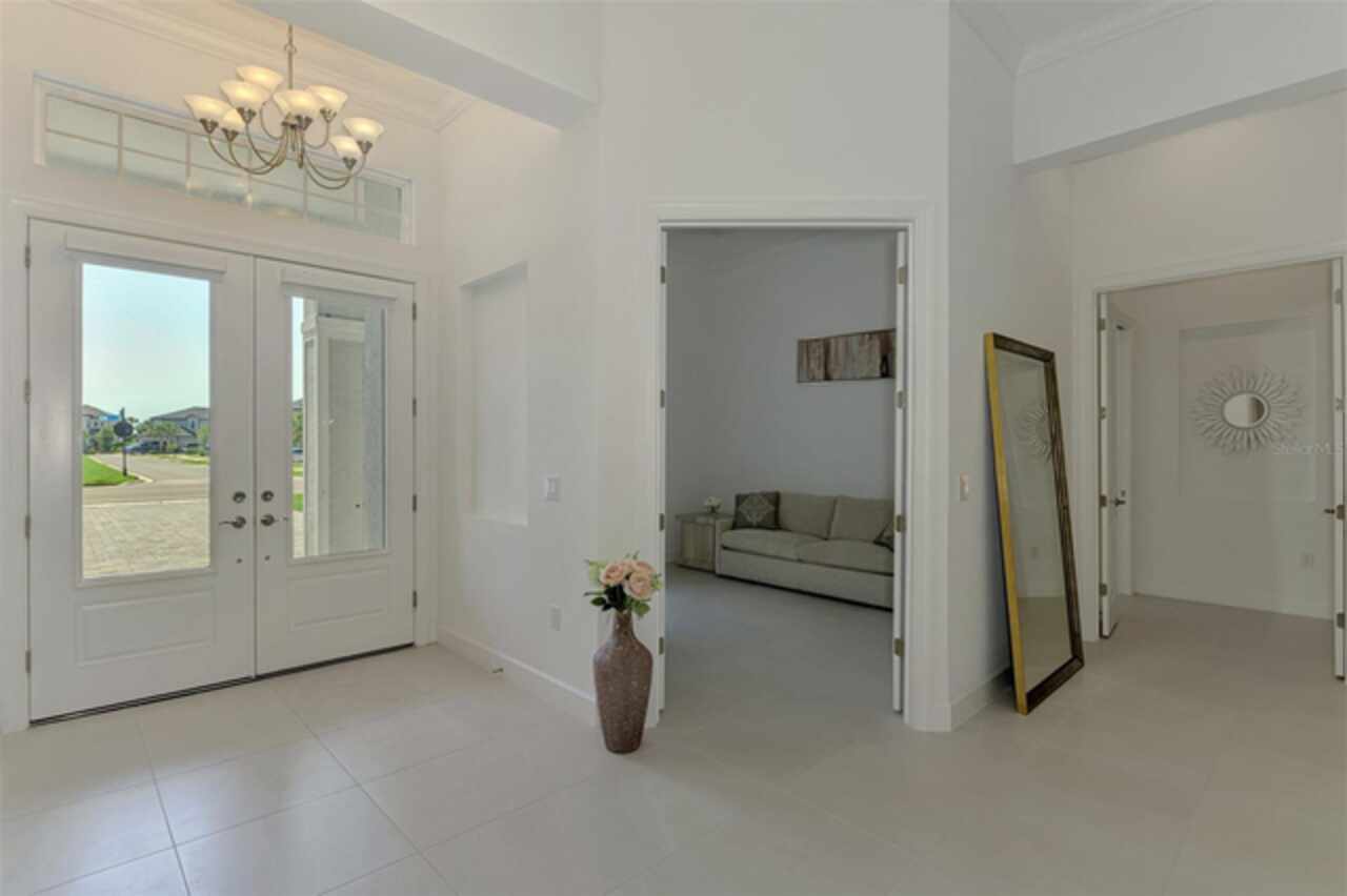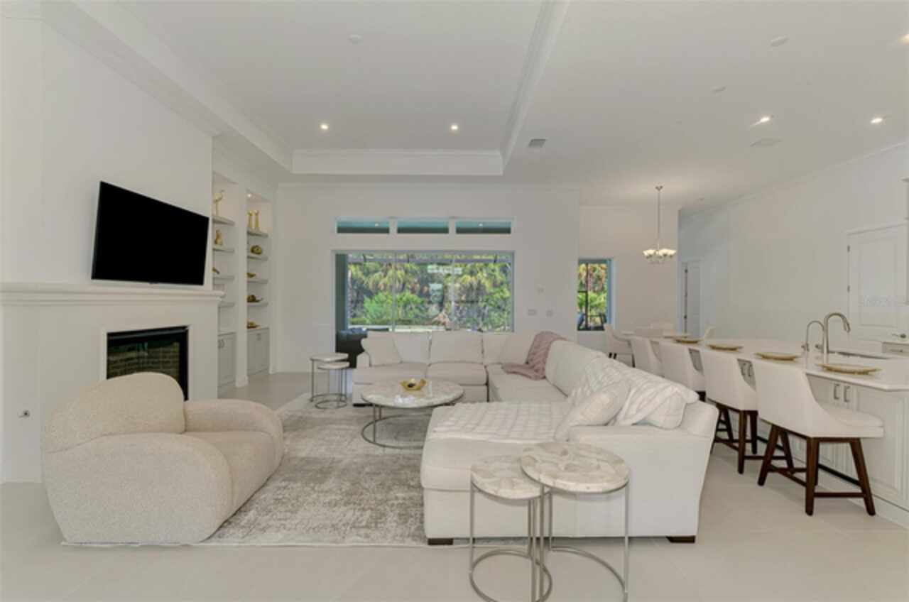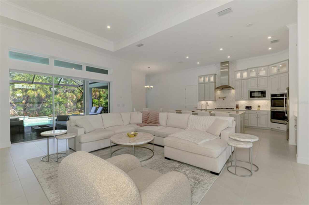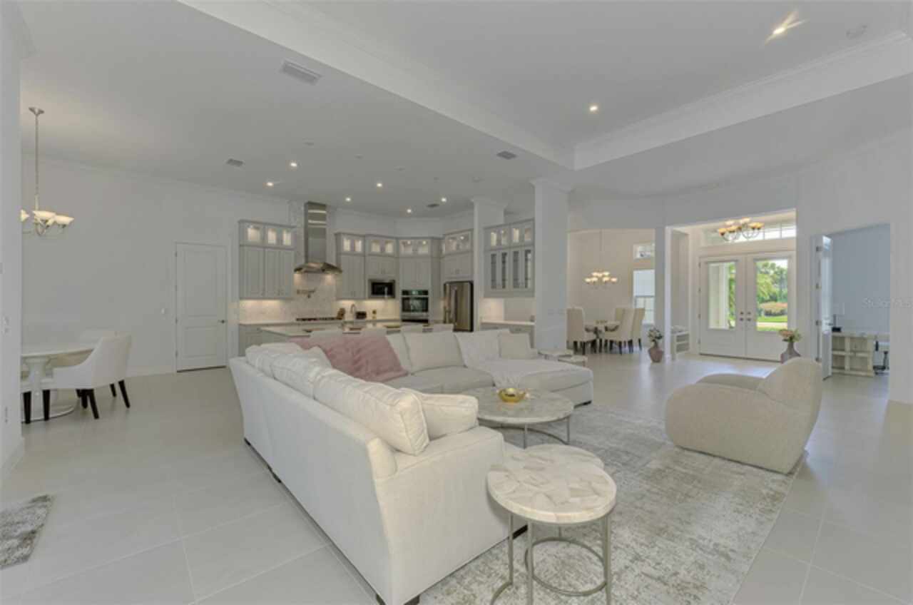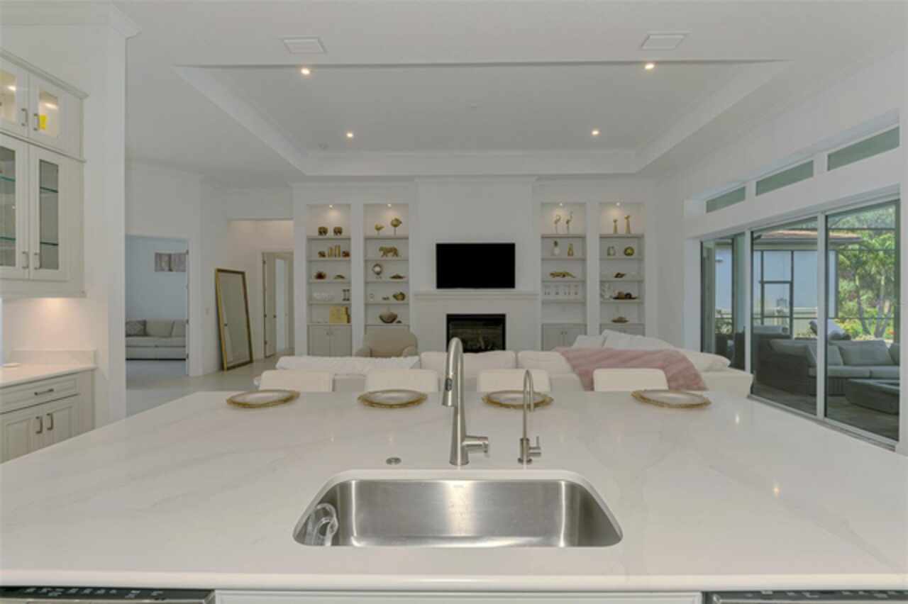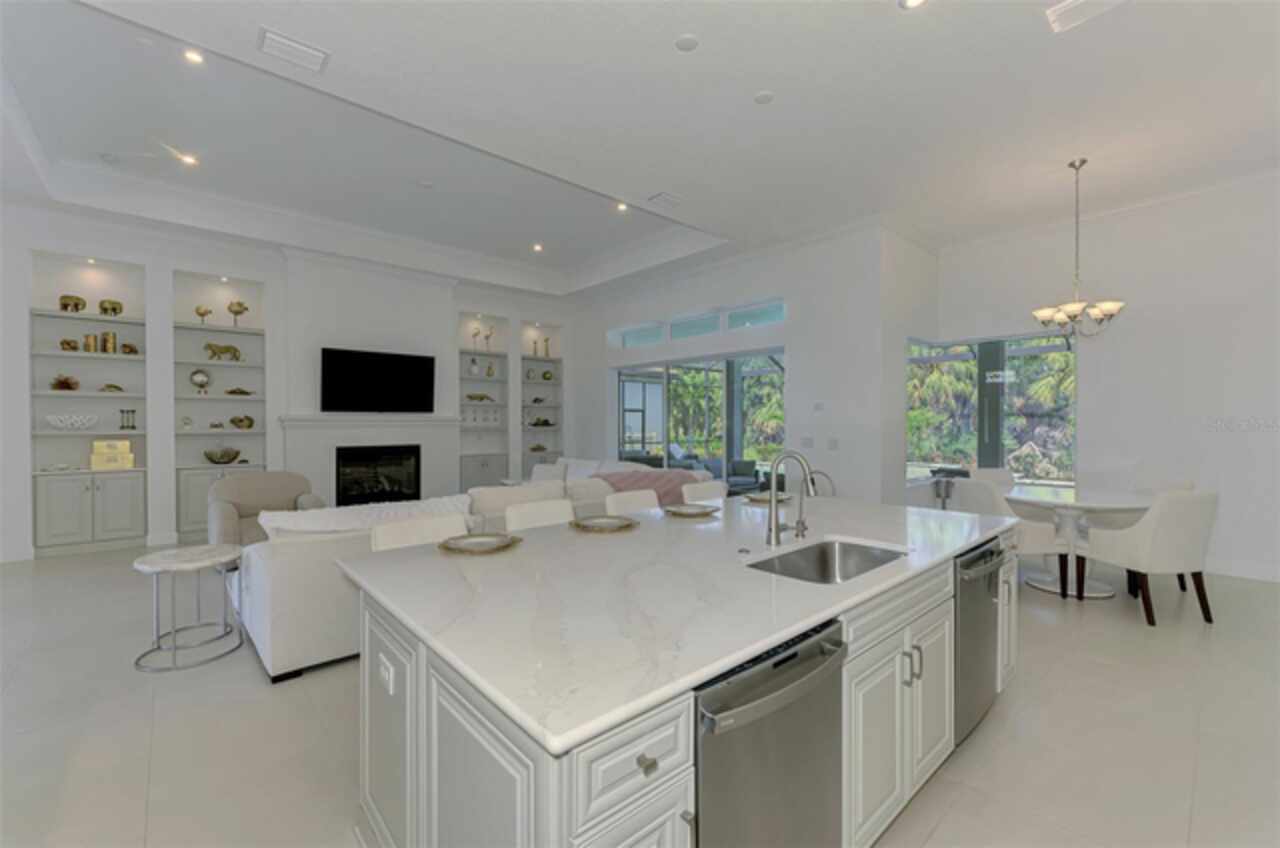 Beacon West Indies meticulously designed luxury home, custom pool & spa with an outdoor kitchen / entertainment area. Located in Sarasota’s exclusive Skye Ranch community. Nestled against serene preserve views, this residence seamlessly blends indoor and outdoor living with triple pocket sliding glass doors in the expansive great room to create a truly seamless connection to the outdoors. The luxurious owner’s suite, situated along the left side of the home, is a private sanctuary with direct access to the pool area, two expansive walk-in closets with custom built-ins, and a spa-like en-suite bathroom boasting dual vanities, an oversized shower with a rain shower heads, and a private water closet. Remote- controlled shades allow effortless adjustment for light and privacy. A dedicated home office or den provides a functional, yet stylish workspace. Luxury oversized floor tile throughout the home, recessed lighting, tray ceilings, and crown moldings elevate the interior’s modern elegance. The chef’s kitchen is a masterpiece, complete with upgraded quartz countertops, large stainless steel sink, under cabinet lighting and in cabinet upper lighting, Profile appliances, pot filler at the range, two dishwashers, water filtration, tiled backsplash with accents and a generously sized pantry. Enjoy an open-concept floor plan and high ceilings. Large windows allow natural light to flood the living spaces, creating a bright and airy atmosphere. Triple sliding glass doors in the great room area that pocket to create a truly seamless connection to the outdoors. The outdoor oasis is completed by an oversized gas heated saltwater pool, an infinity-edge spa, landscape lighting and upgraded landscaping. This property offers unmatched privacy and tranquility. Custom outdoor kitchen with curved granite high top counter, built in stainless steel grille, sink with hot and cold water, beverage refrigerator and a large TV mounted on the wall is perfect for entertaining with family and friends. The location is just moments from scenic walking trails and the newly completed amenity center. The paver driveway leads to a spacious three car side entry garage. Residents of Skye Ranch enjoy access to The Hub, a 25, 000-square foot resort style community center featuring state of the art fitness facilities, resort pool and a separate lap pool, a rock climbing wall, basketball court, splash pad, café, test kitchen, meeting spaces, and an expansive event lawn. Located just 23 minutes from Siesta Key Beach, 30 minutes from the airport, and close to top rated schools, shopping, and dining, this home offers an unparalleled Sarasota lifestyle. Showings by appointment only. Schedule your private tour today and experience coastal luxury at its finest!