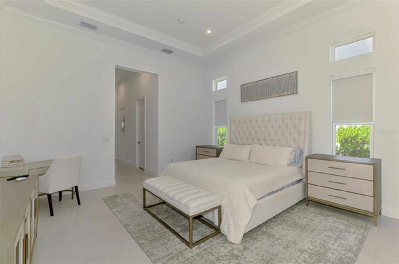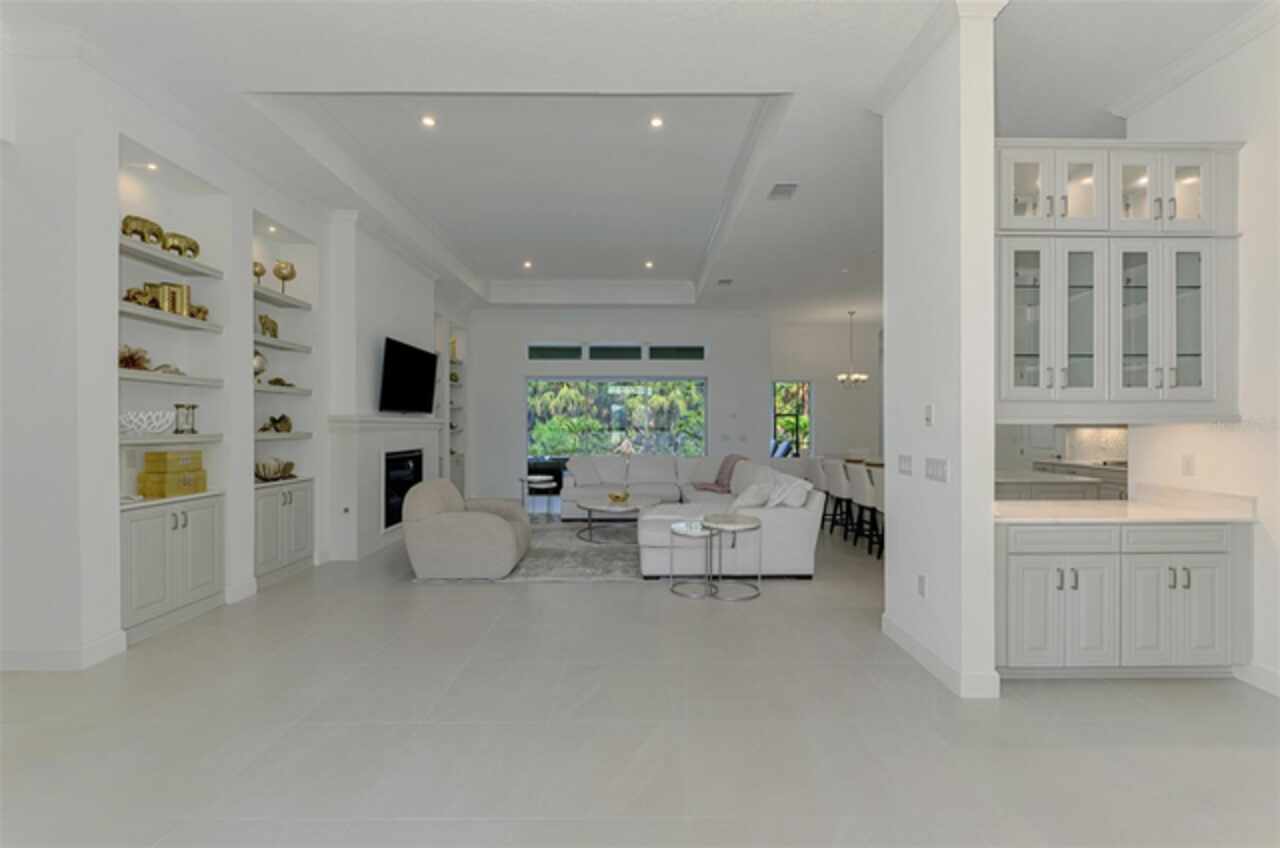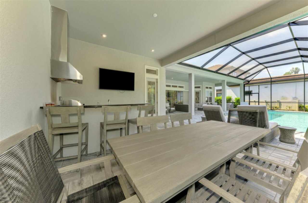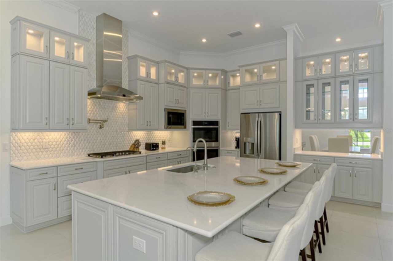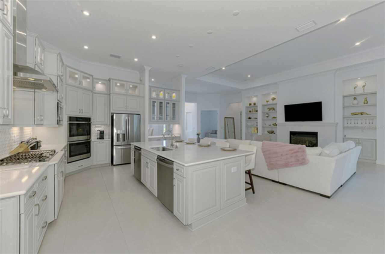 Beacon West Indies meticulously designed luxury home, custom pool & spa with an outdoor kitchen / entertainment area. Located in Sarasota’s exclusive Skye Ranch community. Nestled against serene preserve views, this residence seamlessly blends indoor and outdoor living with triple pocket sliding glass doors in the expansive great room to create a truly seamless connection to the outdoors. The luxurious owner’s suite, situated along the left side of the home, is a private sanctuary with direct access to the pool area, two expansive walk-in closets with custom built-ins, and a spa-like en-suite bathroom boasting dual vanities, an oversized shower with a rain shower heads, and a private water closet. Remote- controlled shades allow effortless adjustment for light and privacy. A dedicated home office or den provides a functional, yet stylish workspace. Luxury oversized floor tile throughout the home, recessed lighting, tray ceilings, and crown moldings elevate the interior’s modern elegance. The chef’s kitchen is a masterpiece, complete with upgraded quartz countertops, large stainless steel sink, under cabinet lighting and in cabinet upper lighting, Profile appliances, pot filler at the range, two dishwashers, water filtration, tiled backsplash with accents and a generously sized pantry. Enjoy an open-concept floor plan and high ceilings. Large windows allow natural light to flood the living spaces, creating a bright and airy atmosphere. Triple sliding glass doors in the great room area that pocket to create a truly seamless connection to the outdoors. The outdoor oasis is completed by an oversized gas heated saltwater pool, an infinity-edge spa, landscape lighting and upgraded landscaping. This property offers unmatched privacy and tranquility. Custom outdoor kitchen with curved granite high top counter, built in stainless steel grille, sink with hot and cold water, beverage refrigerator and a large TV mounted on the wall is perfect for entertaining with family and friends. The location is just moments from scenic walking trails and the newly completed amenity center. The paver driveway leads to a spacious three car side entry garage. Residents of Skye Ranch enjoy access to The Hub, a 25, 000-square foot resort style community center featuring state of the art fitness facilities, resort pool and a separate lap pool, a rock climbing wall, basketball court, splash pad, café, test kitchen, meeting spaces, and an expansive event lawn. Located just 23 minutes from Siesta Key Beach, 30 minutes from the airport, and close to top rated schools, shopping, and dining, this home offers an unparalleled Sarasota lifestyle. Showings by appointment only. Schedule your private tour today and experience coastal luxury at its finest!