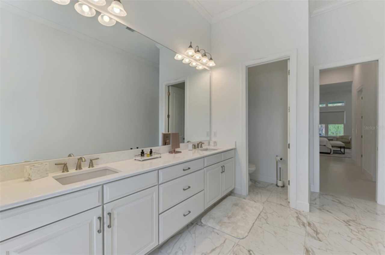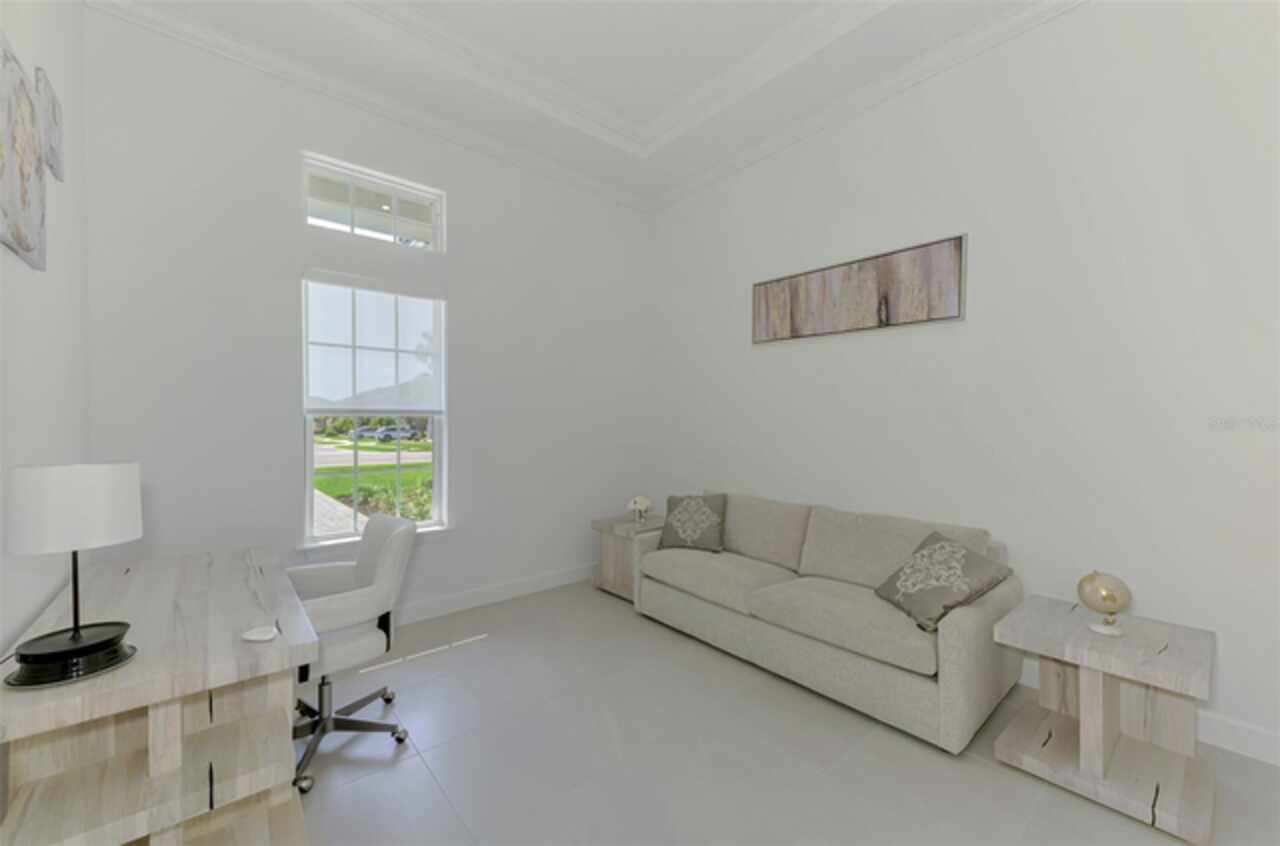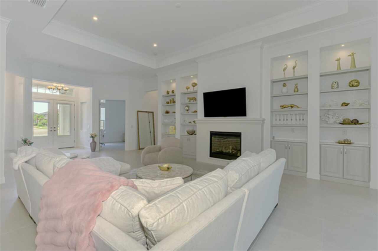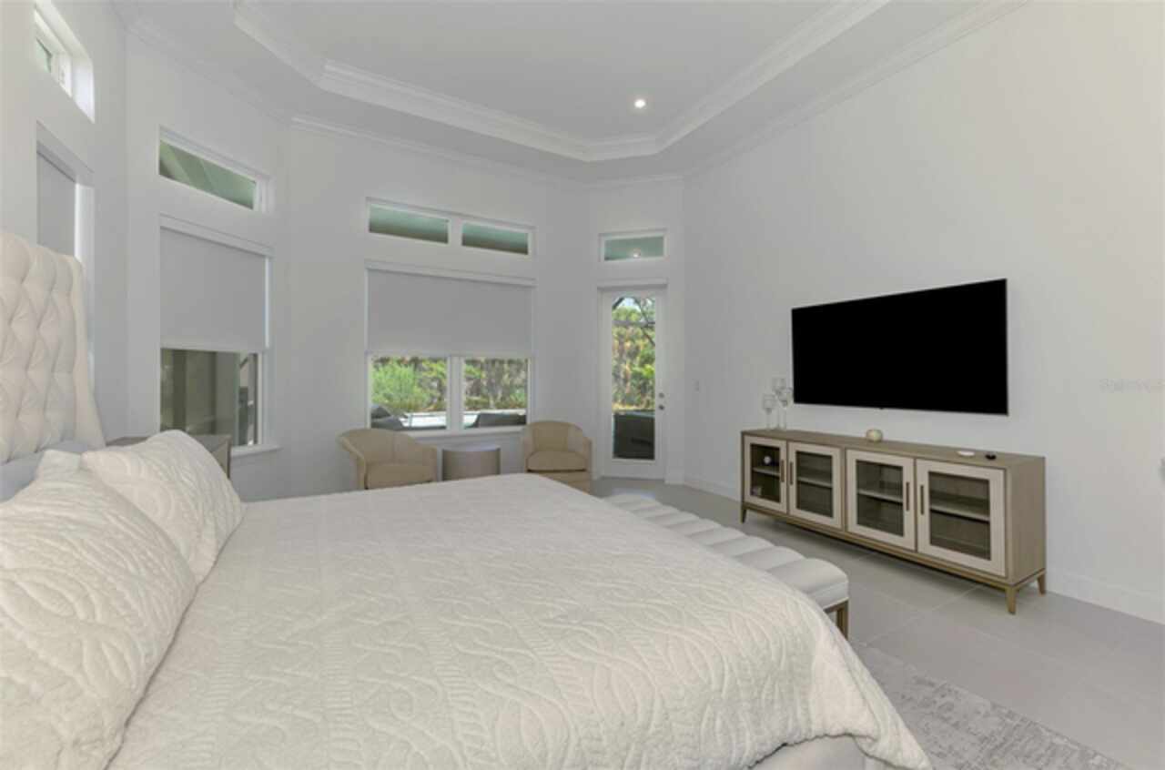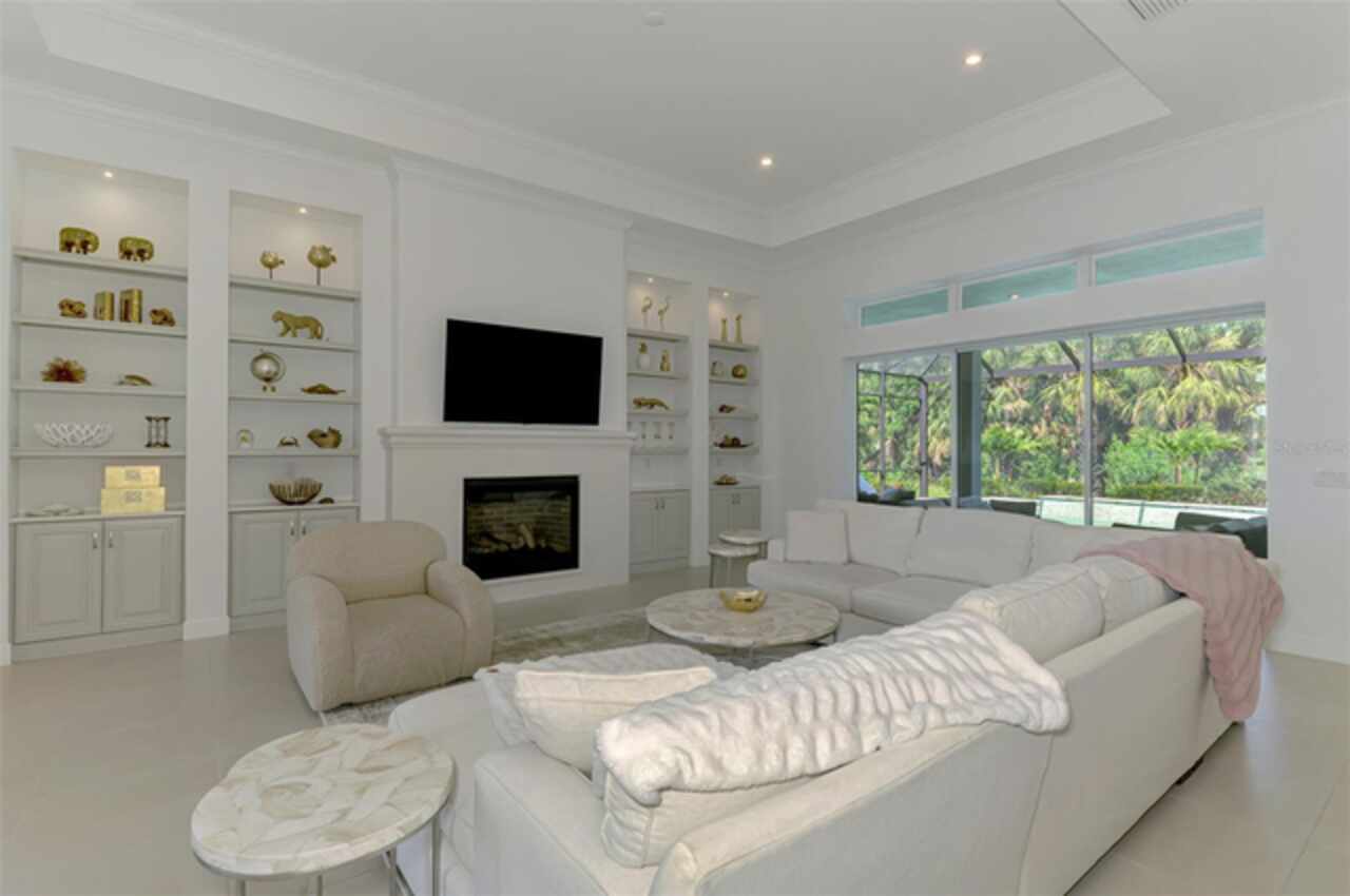 Beacon West Indies meticulously designed luxury home, custom pool & spa with an outdoor kitchen / entertainment area. Located in Sarasota’s exclusive Skye Ranch community. Nestled against serene preserve views, this residence seamlessly blends indoor and outdoor living with triple pocket sliding glass doors in the expansive great room to create a truly seamless connection to the outdoors. The luxurious owner’s suite, situated along the left side of the home, is a private sanctuary with direct access to the pool area, two expansive walk-in closets with custom built-ins, and a spa-like en-suite bathroom boasting dual vanities, an oversized shower with a rain shower heads, and a private water closet. Remote- controlled shades allow effortless adjustment for light and privacy. A dedicated home office or den provides a functional, yet stylish workspace. Luxury oversized floor tile throughout the home, recessed lighting, tray ceilings, and crown moldings elevate the interior’s modern elegance. The chef’s kitchen is a masterpiece, complete with upgraded quartz countertops, large stainless steel sink, under cabinet lighting and in cabinet upper lighting, Profile appliances, pot filler at the range, two dishwashers, water filtration, tiled backsplash with accents and a generously sized pantry. Enjoy an open-concept floor plan and high ceilings. Large windows allow natural light to flood the living spaces, creating a bright and airy atmosphere. Triple sliding glass doors in the great room area that pocket to create a truly seamless connection to the outdoors. The outdoor oasis is completed by an oversized gas heated saltwater pool, an infinity-edge spa, landscape lighting and upgraded landscaping. This property offers unmatched privacy and tranquility. Custom outdoor kitchen with curved granite high top counter, built in stainless steel grille, sink with hot and cold water, beverage refrigerator and a large TV mounted on the wall is perfect for entertaining with family and friends. The location is just moments from scenic walking trails and the newly completed amenity center. The paver driveway leads to a spacious three car side entry garage. Residents of Skye Ranch enjoy access to The Hub, a 25, 000-square foot resort style community center featuring state of the art fitness facilities, resort pool and a separate lap pool, a rock climbing wall, basketball court, splash pad, café, test kitchen, meeting spaces, and an expansive event lawn. Located just 23 minutes from Siesta Key Beach, 30 minutes from the airport, and close to top rated schools, shopping, and dining, this home offers an unparalleled Sarasota lifestyle. Showings by appointment only. Schedule your private tour today and experience coastal luxury at its finest!