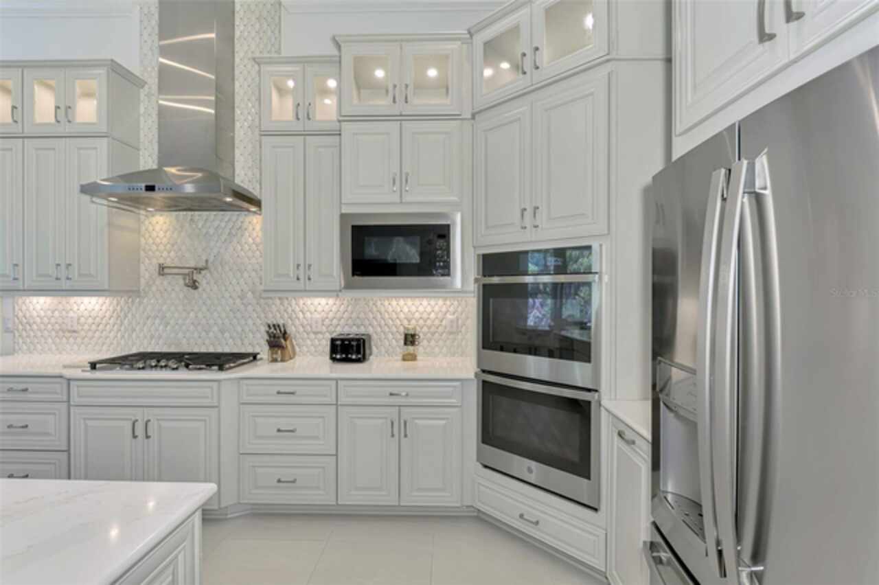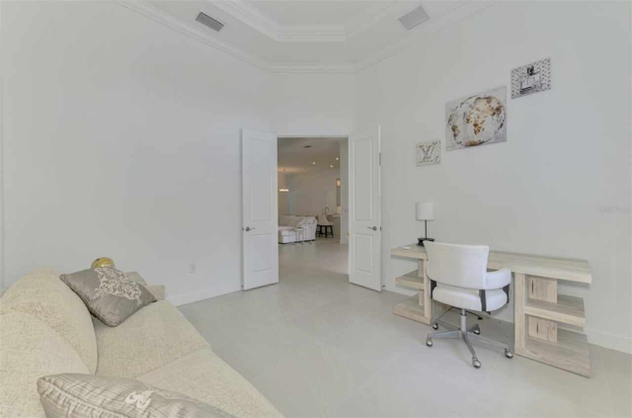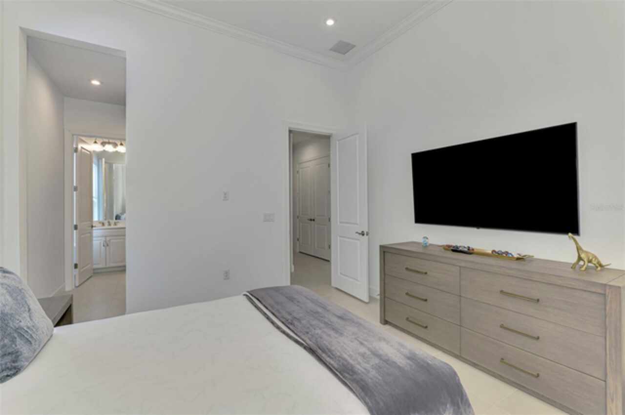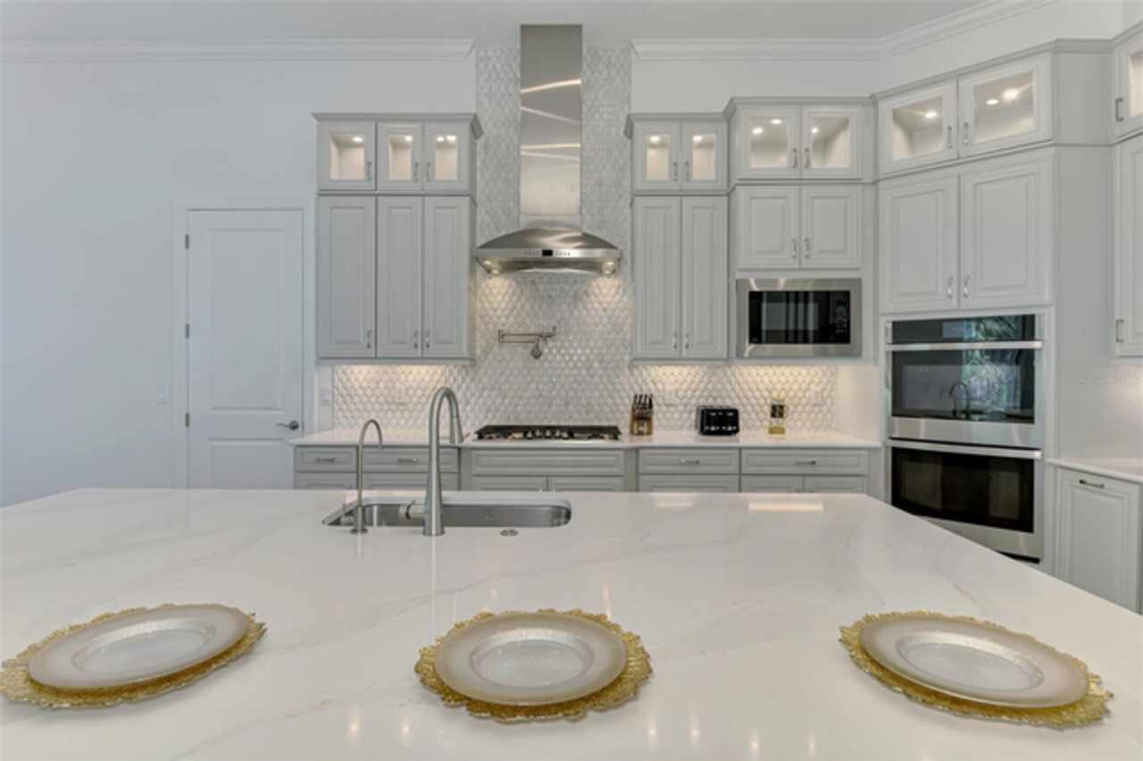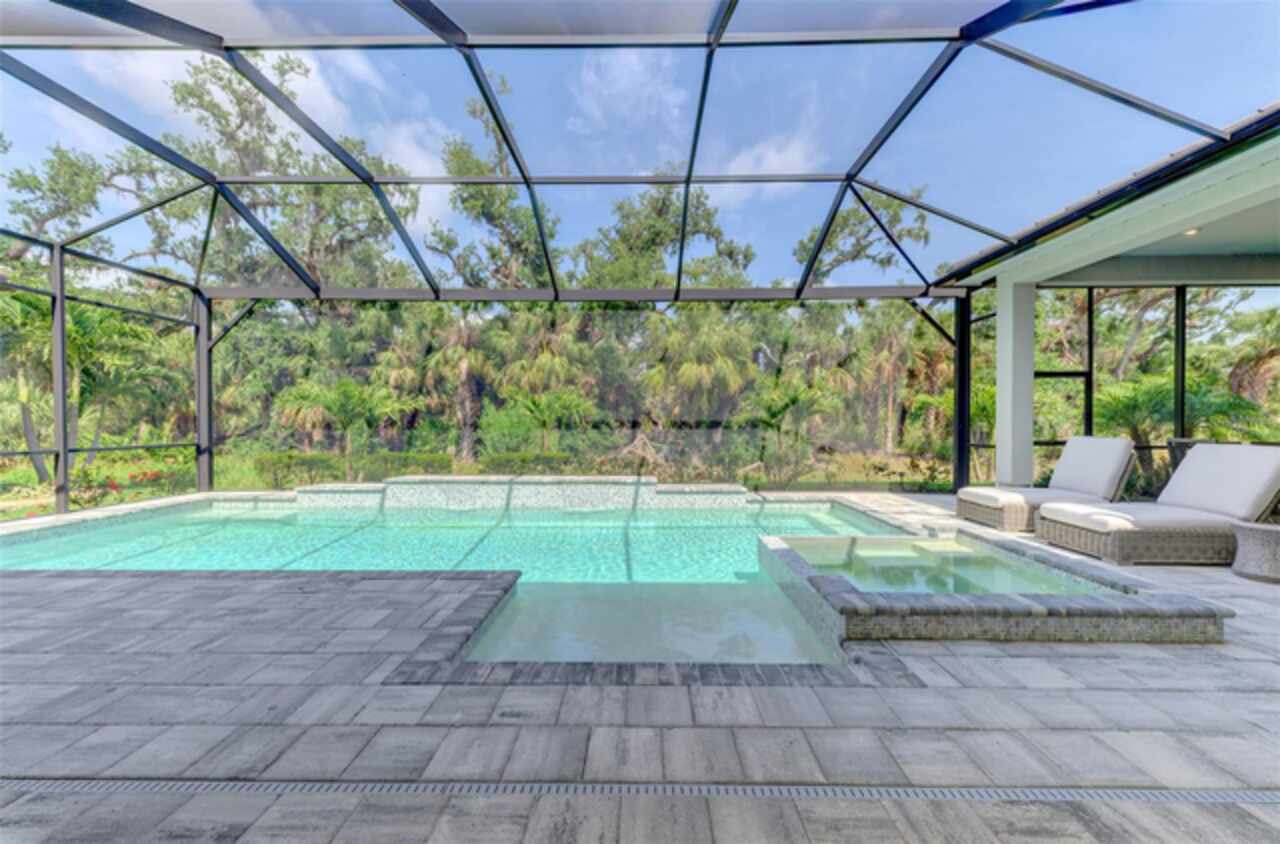 Beacon West Indies meticulously designed luxury home, custom pool & spa with an outdoor kitchen / entertainment area. Located in Sarasota’s exclusive Skye Ranch community. Nestled against serene preserve views, this residence seamlessly blends indoor and outdoor living with triple pocket sliding glass doors in the expansive great room to create a truly seamless connection to the outdoors. The luxurious owner’s suite, situated along the left side of the home, is a private sanctuary with direct access to the pool area, two expansive walk-in closets with custom built-ins, and a spa-like en-suite bathroom boasting dual vanities, an oversized shower with a rain shower heads, and a private water closet. Remote- controlled shades allow effortless adjustment for light and privacy. A dedicated home office or den provides a functional, yet stylish workspace. Luxury oversized floor tile throughout the home, recessed lighting, tray ceilings, and crown moldings elevate the interior’s modern elegance. The chef’s kitchen is a masterpiece, complete with upgraded quartz countertops, large stainless steel sink, under cabinet lighting and in cabinet upper lighting, Profile appliances, pot filler at the range, two dishwashers, water filtration, tiled backsplash with accents and a generously sized pantry. Enjoy an open-concept floor plan and high ceilings. Large windows allow natural light to flood the living spaces, creating a bright and airy atmosphere. Triple sliding glass doors in the great room area that pocket to create a truly seamless connection to the outdoors. The outdoor oasis is completed by an oversized gas heated saltwater pool, an infinity-edge spa, landscape lighting and upgraded landscaping. This property offers unmatched privacy and tranquility. Custom outdoor kitchen with curved granite high top counter, built in stainless steel grille, sink with hot and cold water, beverage refrigerator and a large TV mounted on the wall is perfect for entertaining with family and friends. The location is just moments from scenic walking trails and the newly completed amenity center. The paver driveway leads to a spacious three car side entry garage. Residents of Skye Ranch enjoy access to The Hub, a 25, 000-square foot resort style community center featuring state of the art fitness facilities, resort pool and a separate lap pool, a rock climbing wall, basketball court, splash pad, café, test kitchen, meeting spaces, and an expansive event lawn. Located just 23 minutes from Siesta Key Beach, 30 minutes from the airport, and close to top rated schools, shopping, and dining, this home offers an unparalleled Sarasota lifestyle. Showings by appointment only. Schedule your private tour today and experience coastal luxury at its finest!