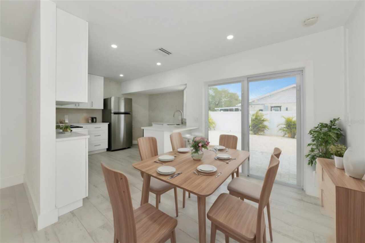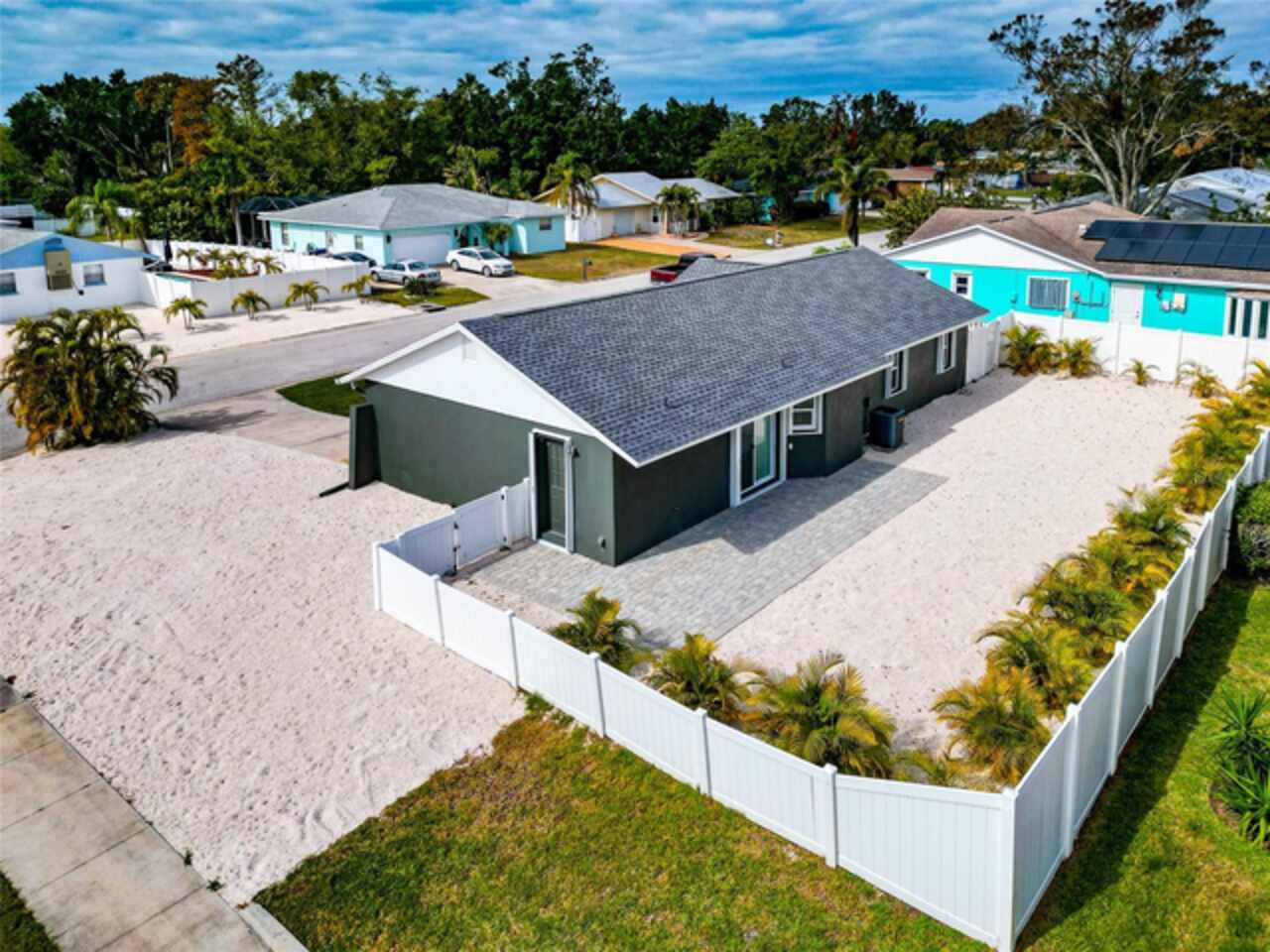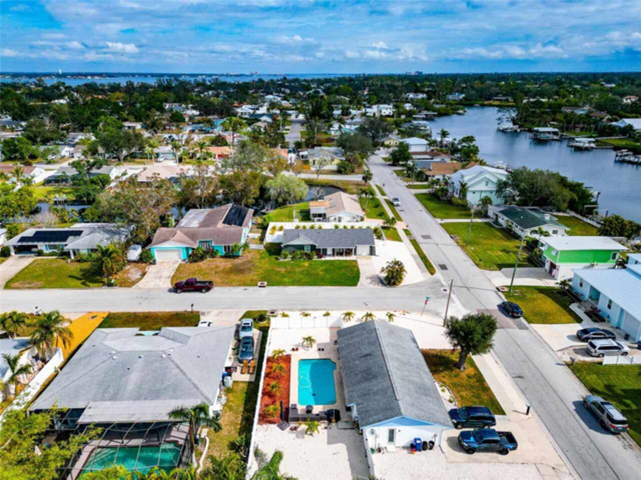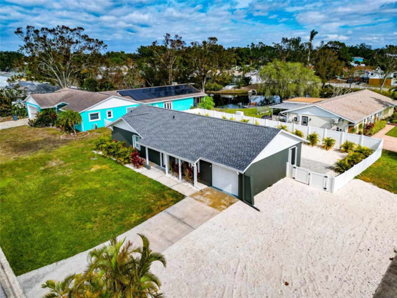 One or more photo(s) has been virtually staged. Where charm meets tranquility welcome home! This beautiful 3-bedroom, 2-bath, 1-car garage home has been completely updated and thoughtfully designed to provide the ultimate Florida lifestyle. This home boasts numerous unique features! Starting with Luxury Ceramic Wood Plank flooring throughout the home and upgraded ceramic tile in the bathrooms. Next up, the kitchen, a chef's dream, featuring quartz countertops, ample counter space, shaker cabinets, and new stainless steel appliances. A design feature to highlight in the kitchen is the custom Terraneo backsplash that adds a touch of luxury. The eat-in kitchen and dining areas are open and spacious leading into the family room. The large family room is great for entertaining and has an upgraded accent wall that adds charm to enhance the home's design. The spacious master bedroom includes a walk-in custom-built closet, with barn doors leading to the ensuite master bathroom with a walk-in shower. All bedrooms have custom-built closets, and the pantry features custom built-in shelves. The home also includes a new roof (2022), a new electrical panel (2021), and new impact windows and sliding glass doors. The sliding glass doors are upgraded with integral blinds. Situated on an oversized corner lot, this home offers plenty of room to park your boat, jet skis, RV, or even build your dream pool. It is conveniently located close to Warner's Bayou Boat Launch, Anna Maria Island, and the Gulf Beaches, as well as hospitals, restaurants, and shopping. Explore Robinson Preserve with over 600 acres of estuary, walk or run on miles nature trails, kayak and paddleboard along the water path out to the Tampa Bay and watch the sunsets. With no HOA, rental restrictions, or deed restrictions, this home is perfect for your forever home, Airbnb, or seasonal rental. Top-rated schools are also nearby. Come see and enjoy this amazing home. Schedule a private showing today! *NOTE* NO FLOODING OR DAMAGE BY HURRICANE DEBBY, HELENE, OR MILTON SURVIVED 3 MAJOR HURRICANES!