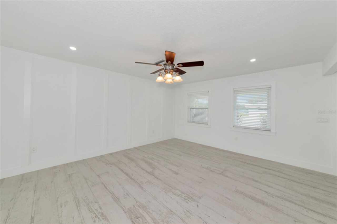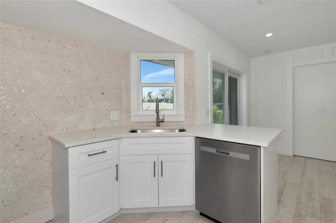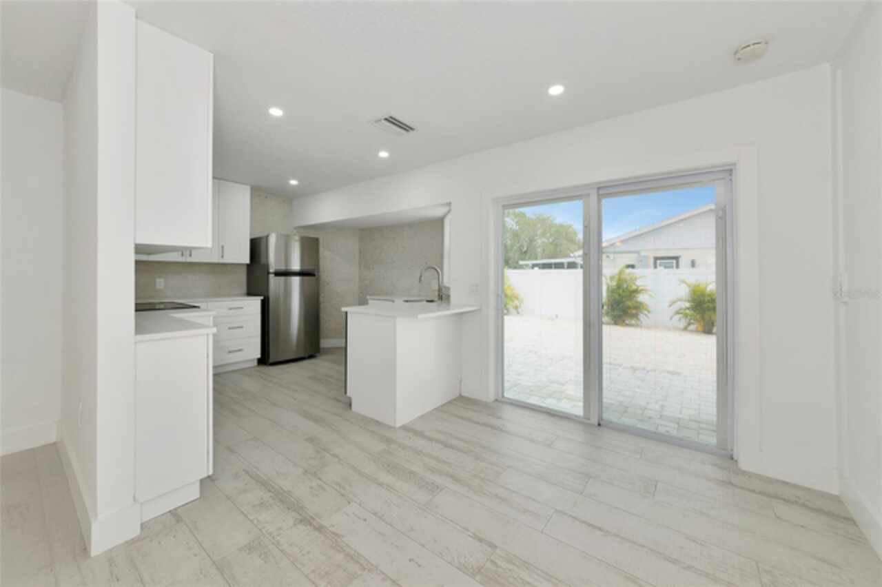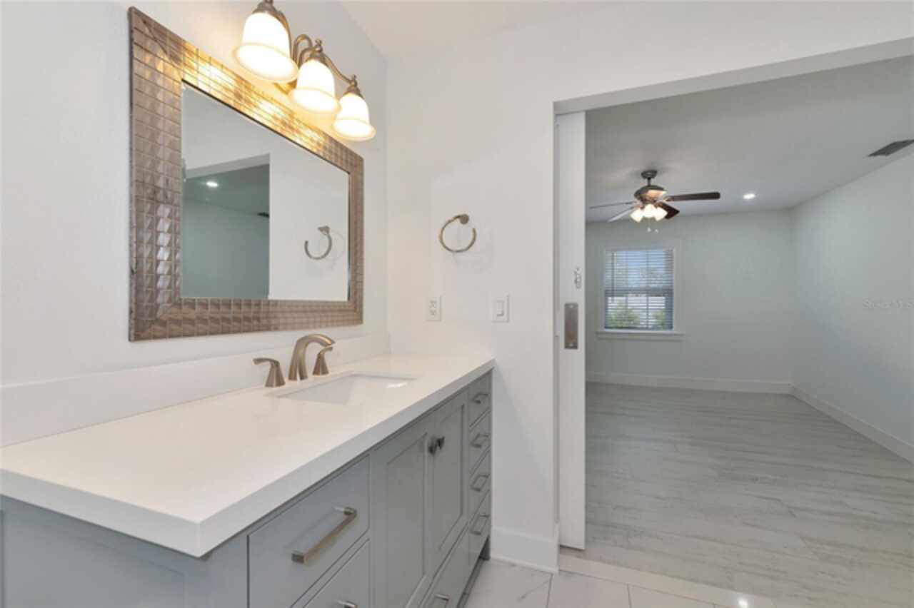 One or more photo(s) has been virtually staged. Where charm meets tranquility welcome home! This beautiful 3-bedroom, 2-bath, 1-car garage home has been completely updated and thoughtfully designed to provide the ultimate Florida lifestyle. This home boasts numerous unique features! Starting with Luxury Ceramic Wood Plank flooring throughout the home and upgraded ceramic tile in the bathrooms. Next up, the kitchen, a chef's dream, featuring quartz countertops, ample counter space, shaker cabinets, and new stainless steel appliances. A design feature to highlight in the kitchen is the custom Terraneo backsplash that adds a touch of luxury. The eat-in kitchen and dining areas are open and spacious leading into the family room. The large family room is great for entertaining and has an upgraded accent wall that adds charm to enhance the home's design. The spacious master bedroom includes a walk-in custom-built closet, with barn doors leading to the ensuite master bathroom with a walk-in shower. All bedrooms have custom-built closets, and the pantry features custom built-in shelves. The home also includes a new roof (2022), a new electrical panel (2021), and new impact windows and sliding glass doors. The sliding glass doors are upgraded with integral blinds. Situated on an oversized corner lot, this home offers plenty of room to park your boat, jet skis, RV, or even build your dream pool. It is conveniently located close to Warner's Bayou Boat Launch, Anna Maria Island, and the Gulf Beaches, as well as hospitals, restaurants, and shopping. Explore Robinson Preserve with over 600 acres of estuary, walk or run on miles nature trails, kayak and paddleboard along the water path out to the Tampa Bay and watch the sunsets. With no HOA, rental restrictions, or deed restrictions, this home is perfect for your forever home, Airbnb, or seasonal rental. Top-rated schools are also nearby. Come see and enjoy this amazing home. Schedule a private showing today! *NOTE* NO FLOODING OR DAMAGE BY HURRICANE DEBBY, HELENE, OR MILTON SURVIVED 3 MAJOR HURRICANES!