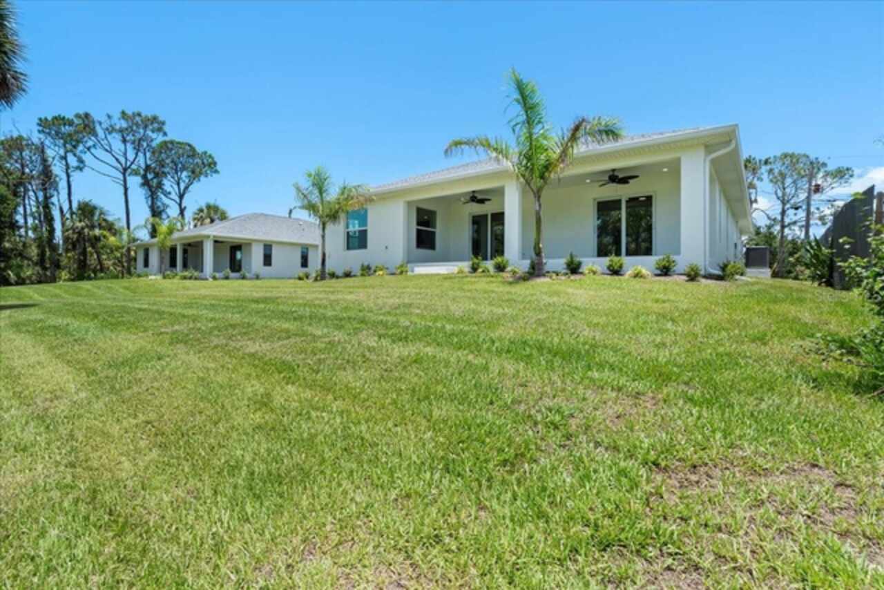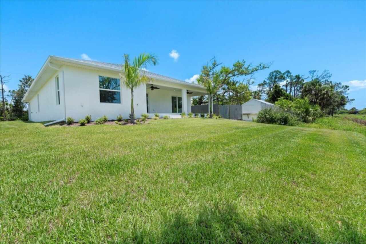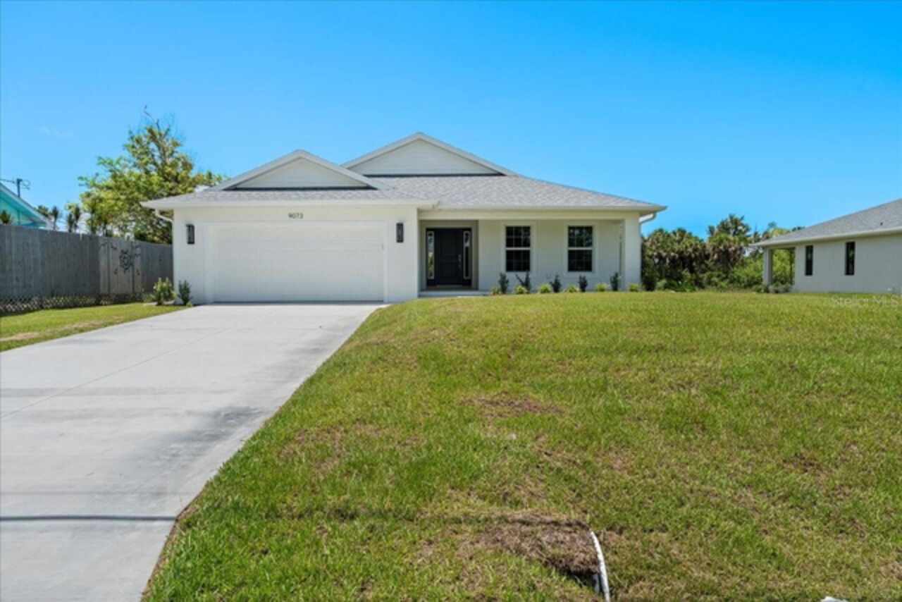 Brand-New 3-Bedroom Home in X Flood Zone Move right into this beautifully built 3-bed, 2-bath concrete block home combining modern style with thoughtful features. Enjoy a 2-car garage with epoxy chip floors, a Rain Bird irrigation system, architectural shingle roof, full gutter system, and attractive Boston hip roof design. PGT impact windows and sliders offer storm protection and energy efficiency. Inside, you’ll find quartz countertops, shaker cabinets, Samsung appliances, and a sleek tile backsplash in the kitchen. Porcelain tile runs throughout, with tray ceilings adding style and space. The primary suite features a walk-in closet and dual vanity bath. Front and back porches with spraycrete flooring extend your living outdoors. Low-maintenance, high-quality, and ready for you—schedule your showing today!