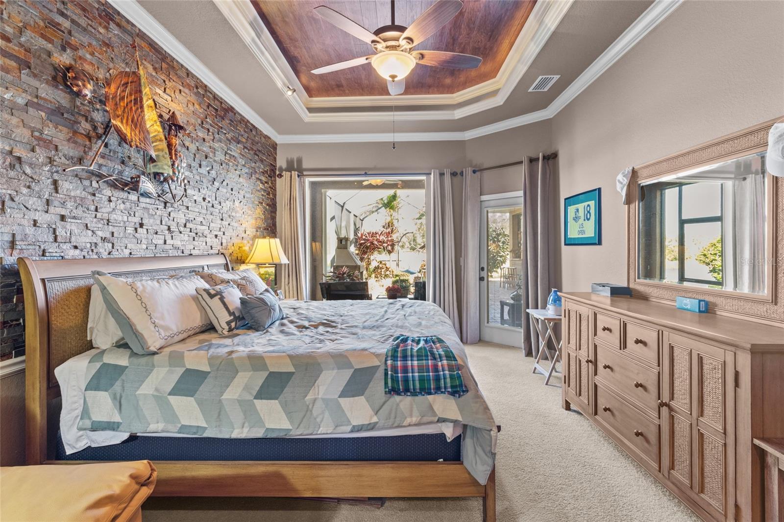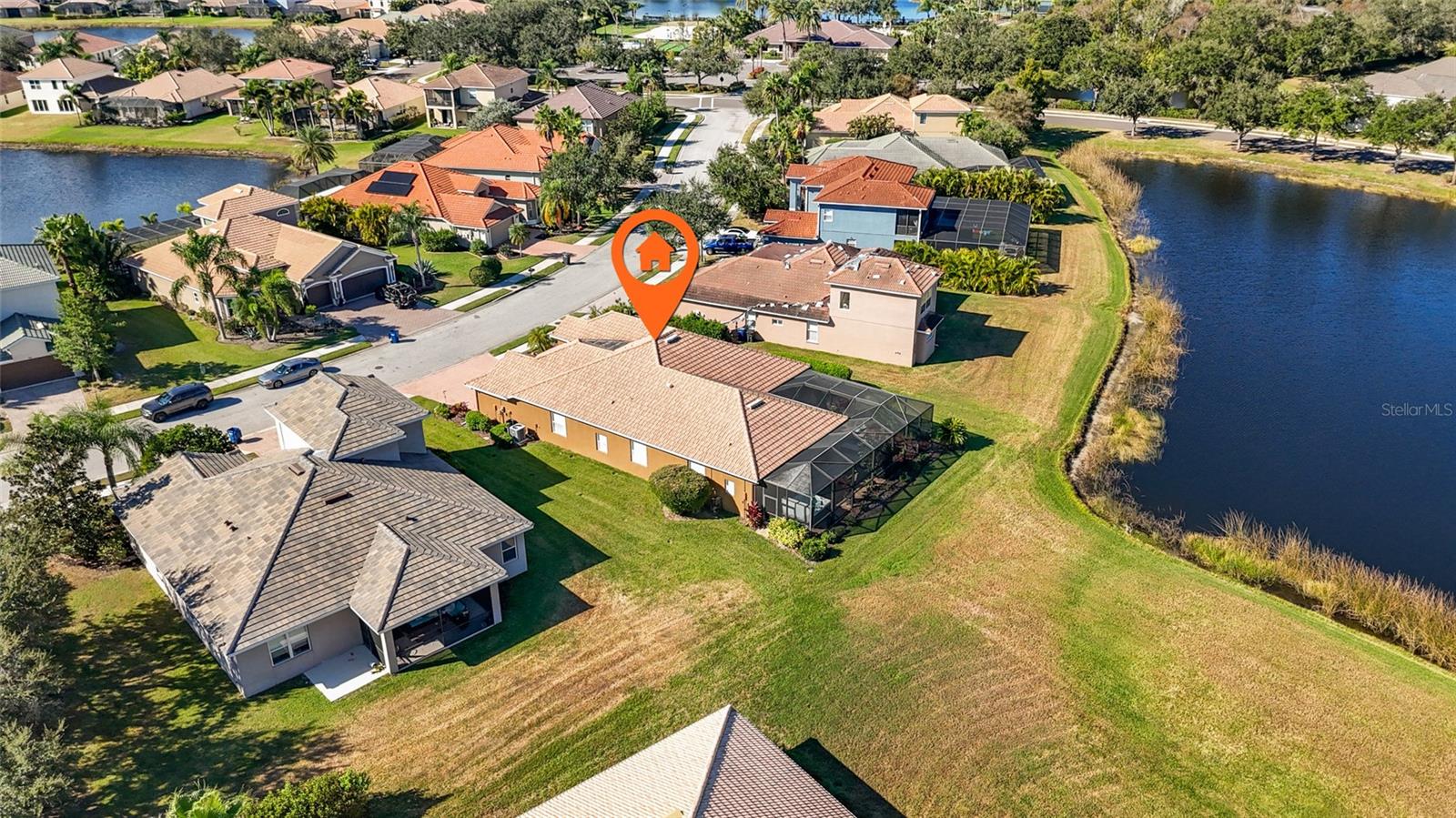 Enjoy the charm of this Italian villa–inspired, beautifully maintained home in the desirable gated community of Stoneybrook at Heritage Harbour. Perfectly situated on a lakefront lot, this home offers serene water views from both the family room and the primary suite. This immaculate 4-bedroom, 3-bath residence features a tiled roof, spacious living and dining areas, a separate family room, and a 3-car garage. Elegant touches include crown molding throughout, beautiful decorative stone accent walls add texture and elegance to the interior. Custom closets, wood tray ceilings, and tile flooring. The gourmet kitchen boasts granite countertops, newer stainless steel appliances, and plenty of workspace—ideal for the home chef. The large primary suite offers his-and-hers closets, and the luxurious bath features dual sinks, a soaking tub, and a walk-in shower. Three additional bedrooms and two full baths provide comfort and space for family or guests. Step outside to the custom pavered lanai with a gas fireplace, a charming water fountain adds a soothing, spa-like ambiance, to the covered outdoor kitchen with granite counters—perfect for entertaining or relaxing. The three-car garage provides ample room for vehicles, storage, or even a golf cart. Recently painted inside and out, this home is truly move-in ready. Residents of Stoneybrook enjoy resort-style amenities including a recreation center with fitness facility, community pool and spa, tennis courts, dog park, playground, basketball and volleyball courts, inline skating rink, walking and biking trails, and the Cal Ripken baseball complex. The community also features an 18-hole golf course and clubhouse with restaurant—golf membership is optional.
