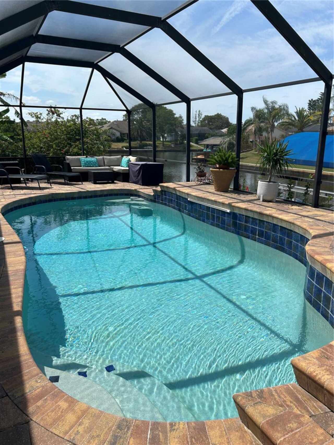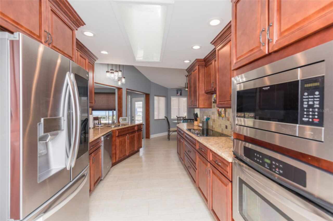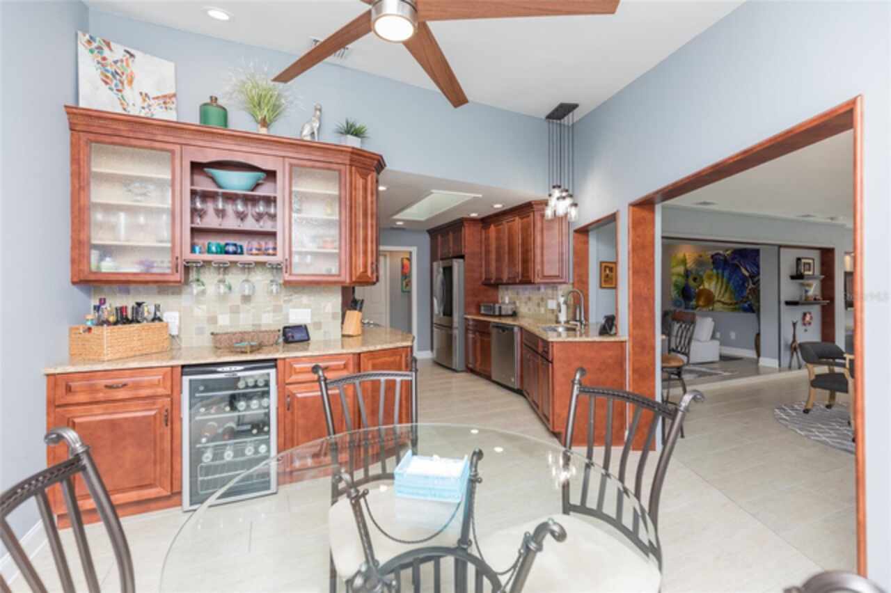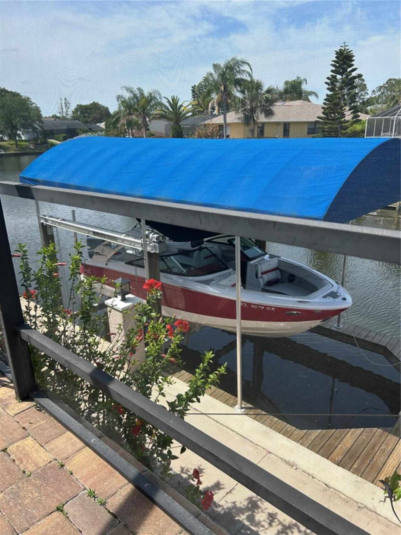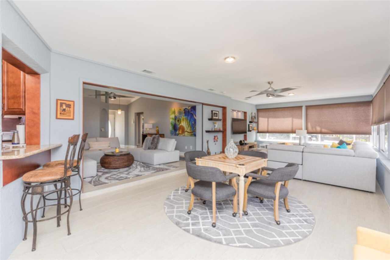Under contract-accepting backup offers. Bring your boat and relax by the pool in this beautiful canal home. This home has been updated and lovingly cared for. It features 3 bedrooms, 2 baths, large family room, living room, eat in kitchen, separate laundry room and chef’s kitchen. Large primary suite with office room attached, large walk in closet and bath. Sit out at the pool and watch the dolphins swim by in the canal. New AC in 2024, new hot water heater. Pool equipment installed in 2019, fenced in area (dog run). Best of all there has been added a new boat lift with a capacity for 8000 lb boat and new canopy to protect your boat.This home is ready for your full time living or winter get away from the cold. Come see this home priced to sell. Holiday price reduction - Motivated Seller’s! Ceiling fans in living room and family room do not convey but will be replaced or given a credit. Refrigerator does not convey but a stainless steel one will replace it.
