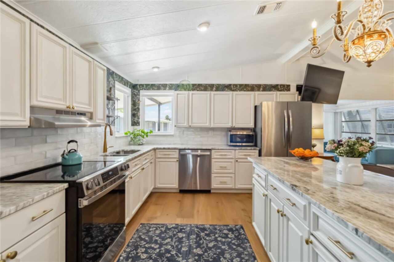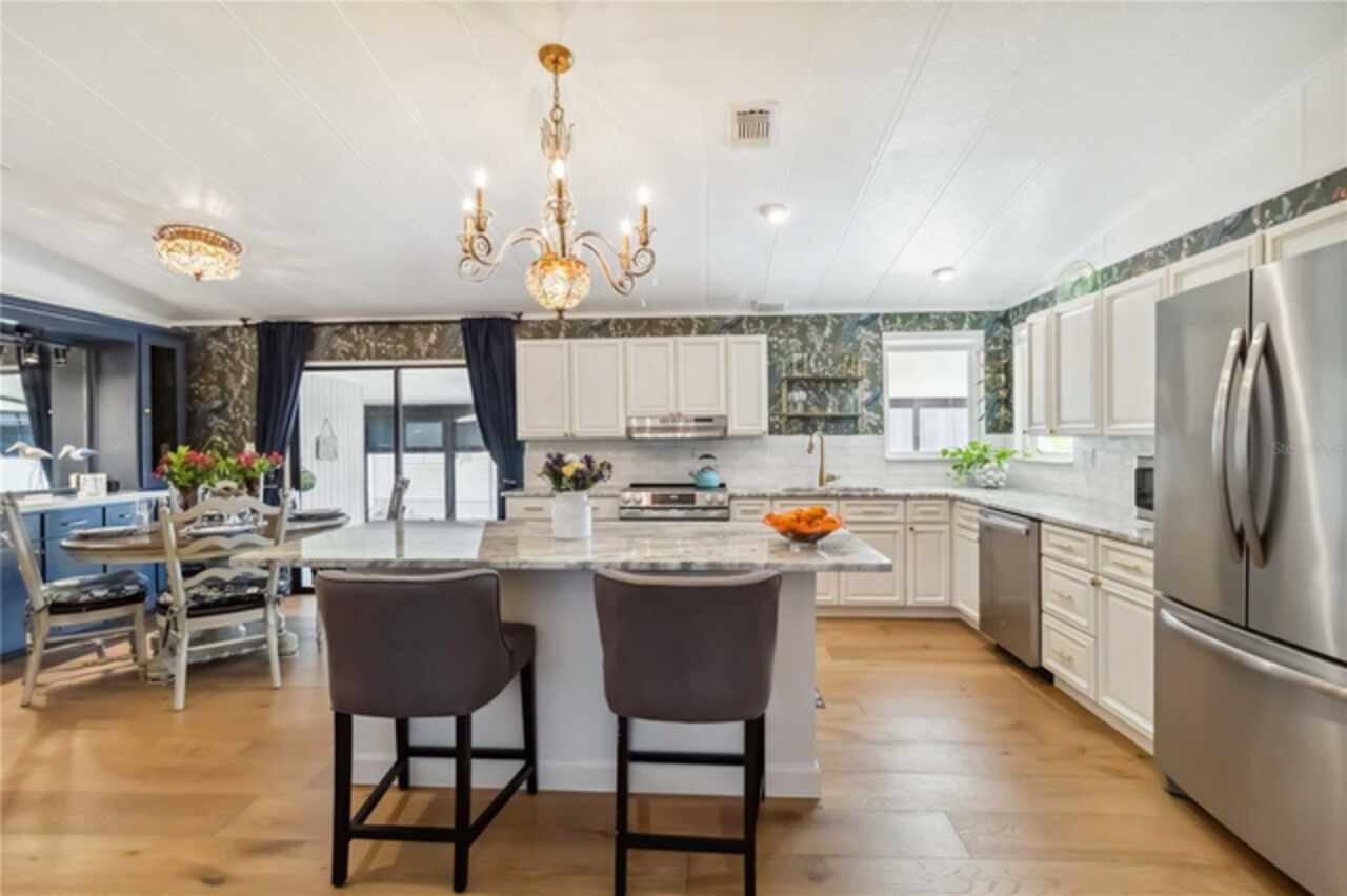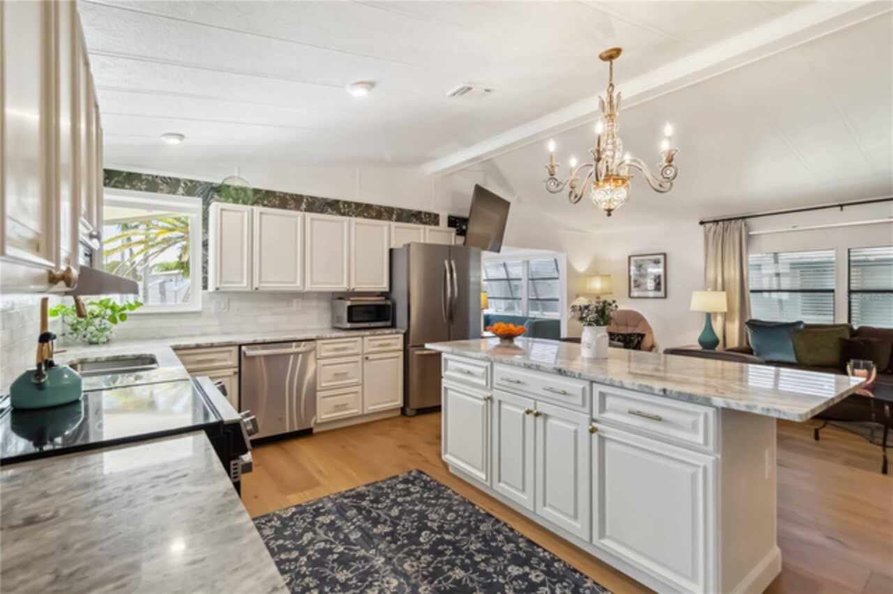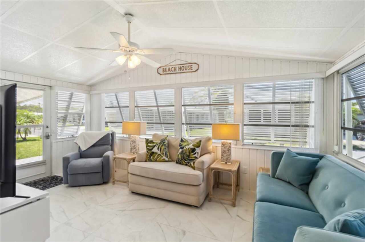WOW $20, 000 REDUCTION! Is the Beach calling your name? This active 55+ community is only 1.5 miles to the beach with amazing sunsets every night. The double wide home that is being sold TURNKEY FURNISHED has been updated and loved on by the current owners. The style and high end finishes shows the attention to detail from white oak flooring, stainless steel appliances, all new cabinets, gleaming quartz countertops, new lighting, hot water heater and so much more. You truly need to see it to appreciate it all. There is an oversized screened lanai to enjoy the fresh air, a laundry room with storage as well as 2 more storage areas. Plenty of room for all of your toys along with a carport for your vehicle. This property is the perfect blend of charm, comfort and convenience. This community has many way to be active and involved. Come see the perfect opportunity for you to own a slice of Florida's best coast right here in Englewood.