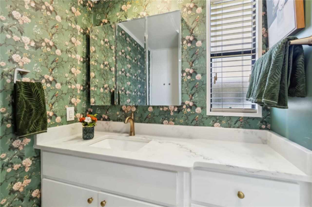Ceiling Fans(s), Eat-in Kitchen, Kitchen/Family Room Combo, Living Room/Dining Room Combo, Open Floorplan, Primary Bedroom Main Floor, Solid Surface Counters, Solid Wood Cabinets, Stone Counters, Thermostat, Window Treatments
