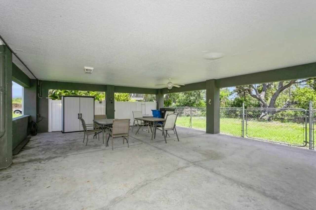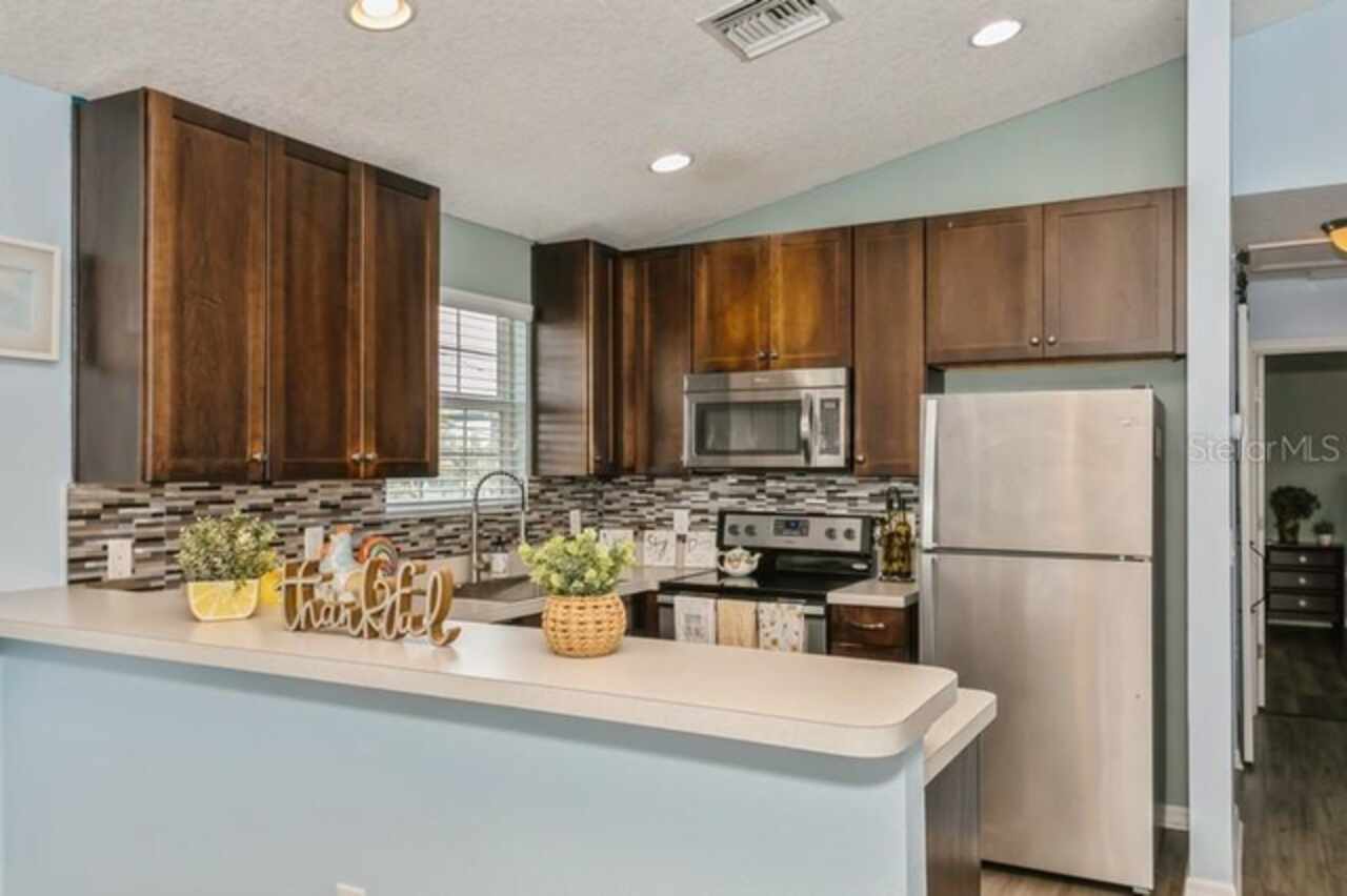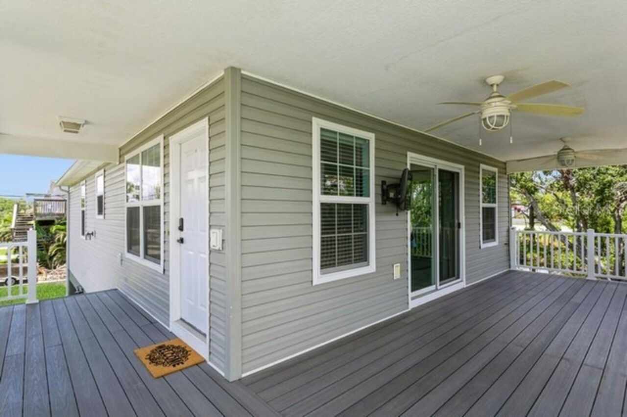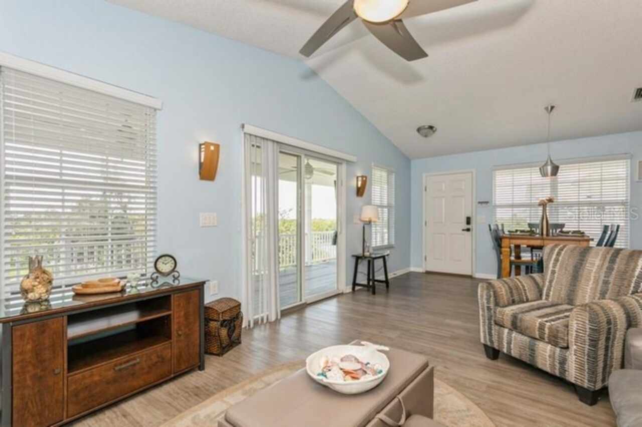 Welcome Home to Your Waterfront Living! Discover this exceptional three-bedroom, two-bathroom stilt home, perfectly nestled on a quiet dead-end street. This fully fenced property features an entrance gate, providing both privacy and peace of mind. Built on an elevated foundation, this home has had no flood issues, allowing you to enjoy the wraparound deck, where you can take in beautiful sunsets while relaxing outdoors. The spacious covered carport offers ample parking and is ideal for entertaining. Brand new Telsa charger for electrical vehicles. Inside, you'll find a newly painted interior and exterior complemented by stunning wood floors, ceiling fans in family room and bedrooms. Spacious primary bedroom, tiled walk-in shower in Ensuite The kitchen is a chef's delight, boasting 42” wood cabinets, a decorative backsplash, stainless steel appliances, stainless steel farm sink, and plenty of counter space for meal prep. New washer/dryer, also BRAND NEW AC CONDENSING UNIT JUNE 2025. Abundant windows throughout flood the home with natural light, The family room looks out onto conservation and water views. Step outside to your fenced backyard haven, which features canal waters with wood deck and a brand new floating dock, the canal leads you out to Old Tampa Bay waterways—perfect for waterfront dining and recreation. NO HOA FEES Conveniently located near shopping, dining, entertainment, Rocky Point Golf Course, Tampa International Airport, Tampa International Mall, and just a quick drive to top-rated Gulf Beaches, this home truly embodies Florida living at its best. Don’t miss out on this incredible opportunity! Schedule your private showing today.