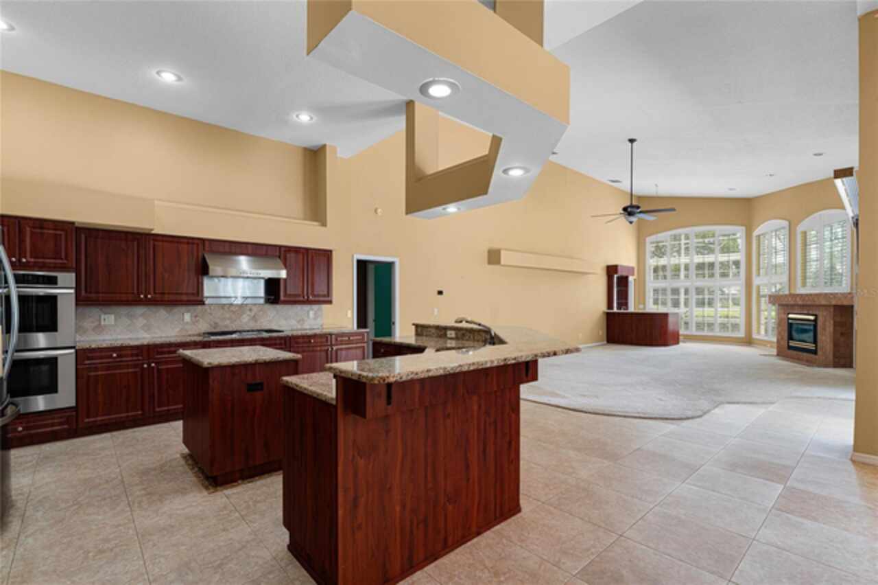 Accessibility Features, Built-in Features, Cathedral Ceiling(s), Ceiling Fans(s), Crown Molding, Eat-in Kitchen, High Ceilings, Kitchen/Family Room Combo, Living Room/Dining Room Combo, Open Floorplan, Primary Bedroom Main Floor, Solid Wood Cabinets, Stone Counters, Thermostat, Vaulted Ceiling(s), Walk-In Closet(s), Wet Bar, Window Treatments
