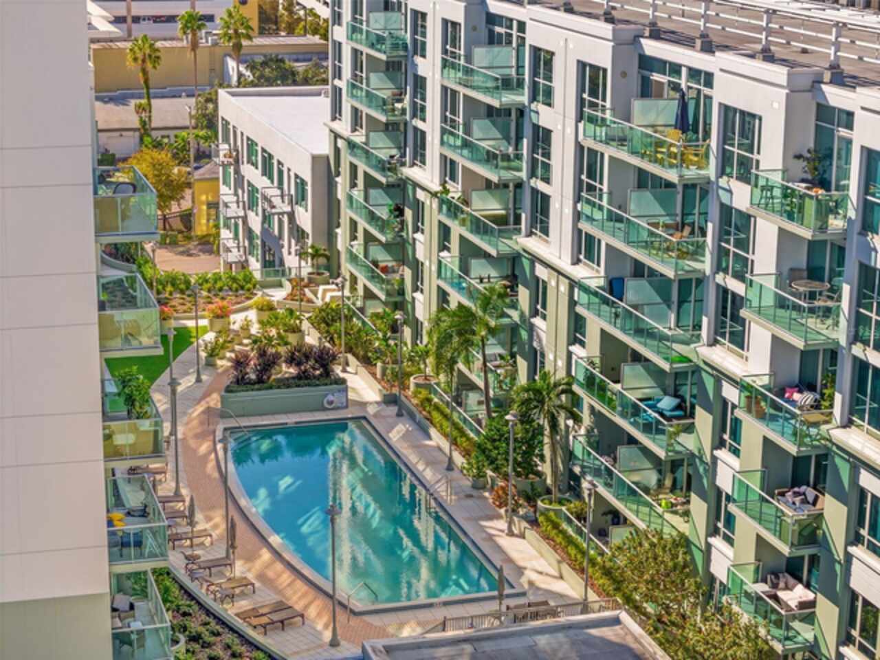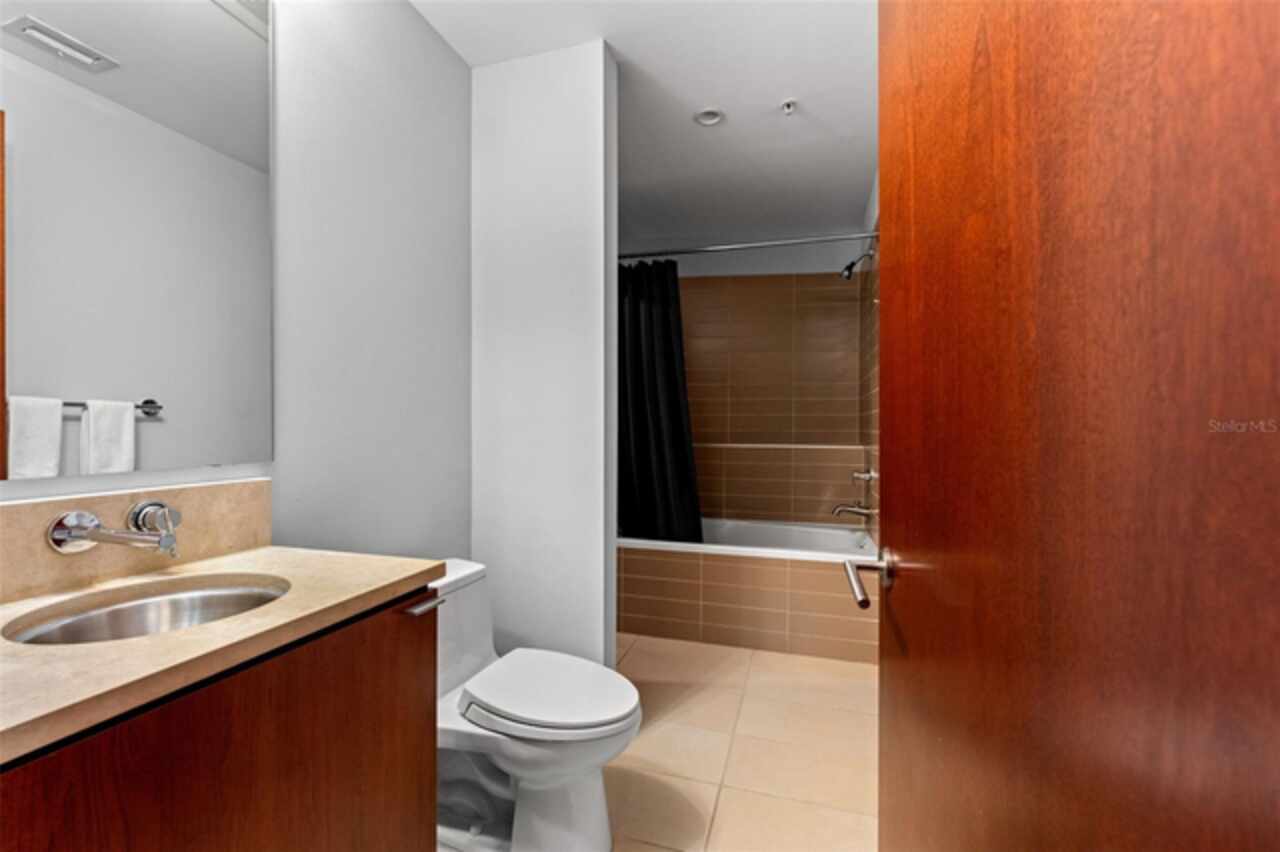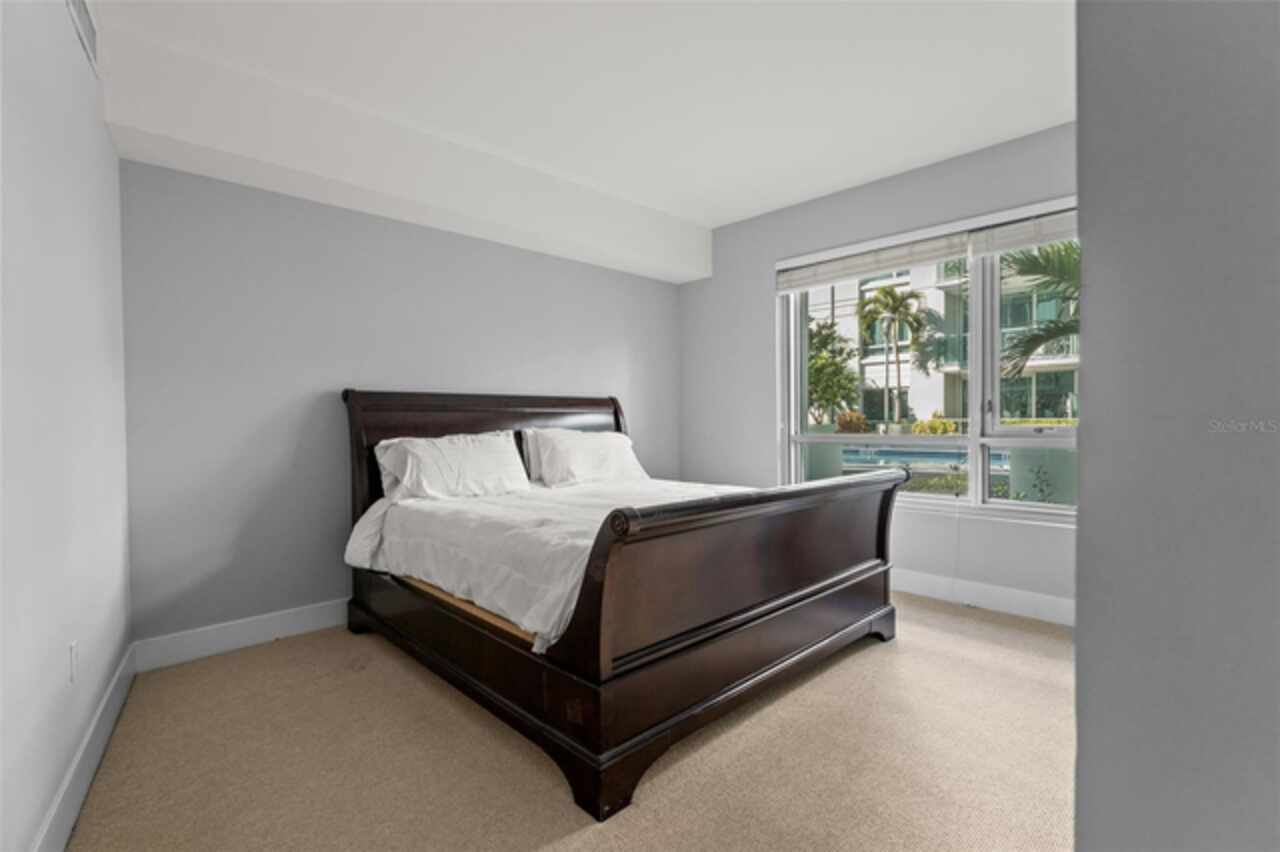 One or more photo(s) has been virtually staged. RECENT PRICE IMPROVEMENT. Beautiful, open and spacious split 2 bedroom/2 bathroom with extra large balcony comes with one reserved parking space. Enjoy your gourmet kitchen with large center-island granite countertops, sleek wood cabinetry, and stainless steel appliances. Brand new Bosch Refrigerator and brand new Samsung Washer. The home is light and bright with over-sized sliding glass doors that lead to your glass walled balcony. This corner end-unit is very convenient accessing the elevators and parking garage. The master bedroom boasts huge windows as well as a spacious walk-in closet. The en-suite bath has granite-top vanity, double-sinks, separate tub, and shower. Guest bedroom is also en-suite to 2nd bathroom. Neutral grey paint with white trim throughout, this home is truly move-in ready. Indulge in your resort-like amenities; luxurious pool/spa and surround, with lush landscaping, lounges, umbrella tables bar area and sauna with newly renovated fitness center. In the heart of the thriving Channel District with many shops, restaurants, and parks. Adjacent to Water Street Tampa with USF Morsani College of Medicine, Sparkman's Wharf and Greenwise Publix. HOA fee provides great value and includes: Basic Cable/Wireless Internet, Building/Flood Insurance, Roof/Pool/Grounds Maintenance, Building Maintenance, 7 days/week Concierge/Security and On-Site Manager and Management Office.