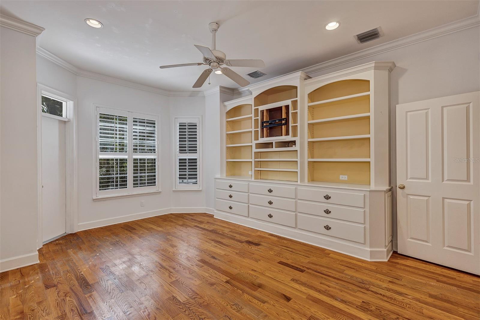 Built-in Features, Ceiling Fans(s), Crown Molding, High Ceilings, Kitchen/Family Room Combo, Primary Bedroom Main Floor, Walk-In Closet(s), Window Treatments