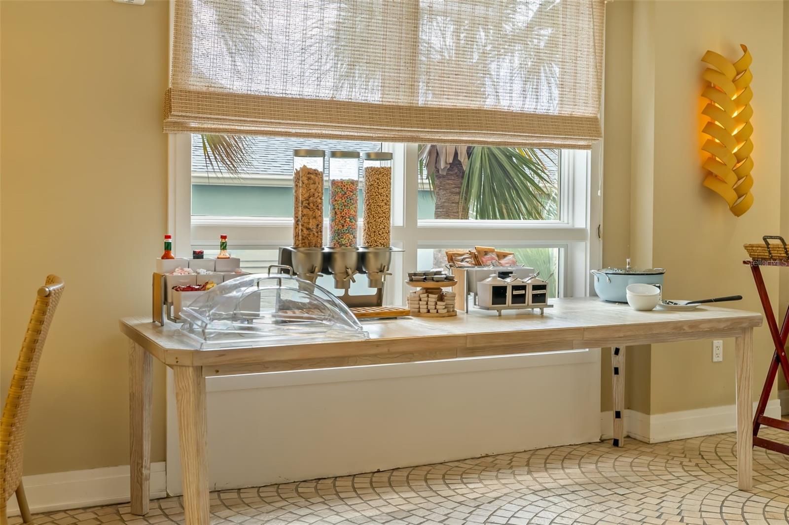Built-in Features, Crown Molding, Eat-in Kitchen, Elevator, Open Floorplan, Solid Wood Cabinets, Stone Counters, Thermostat, Walk-In Closet(s), Wet Bar, Window Treatments
