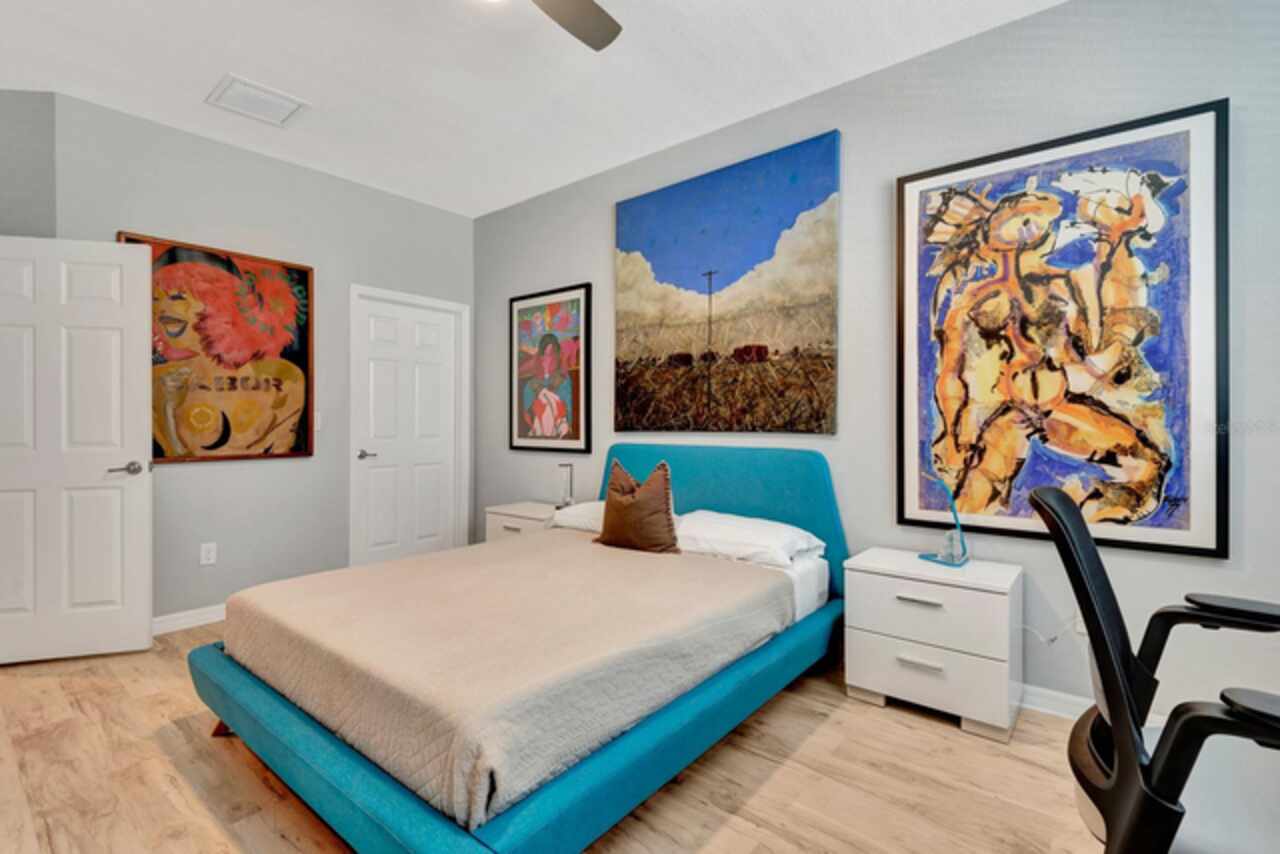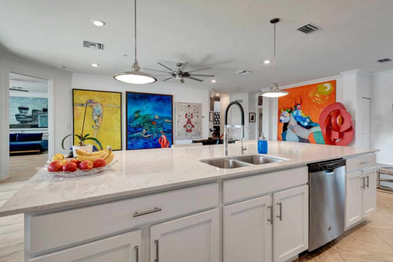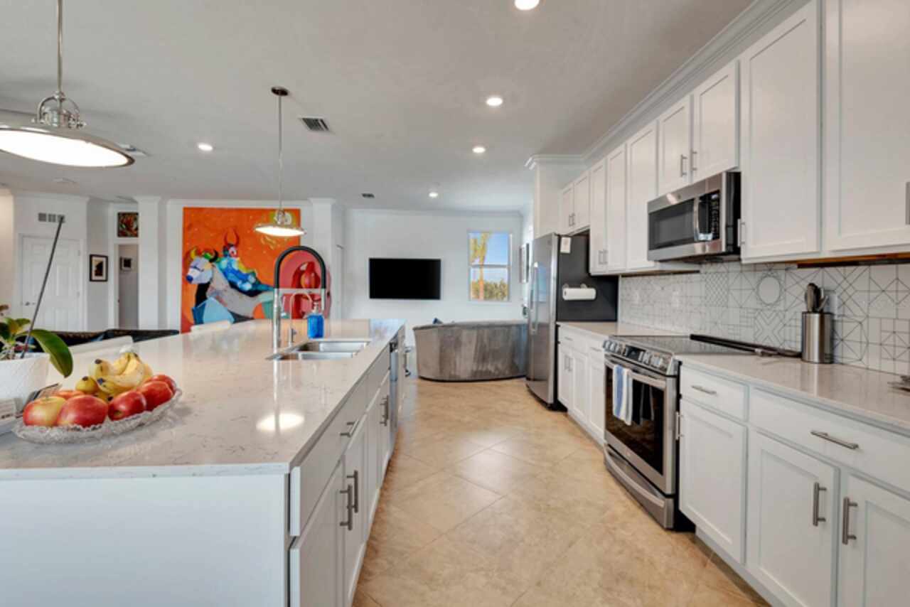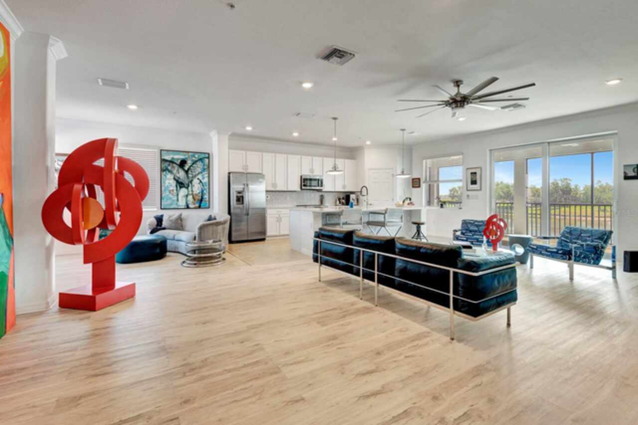 Impeccable 3 bedroom, 2 bathroom 2110 ft² home with a two car garage and screened in lanai. Contemporary open split plan with large living room and open kitchen, teeming with natural light & water views. Primary suite has two walk-in closets, a large en-suite bathroom with his and hers sinks and an oversized walk-in shower. All bathrooms and kitchen have quartz countertops and solid wood, soft-close cabinetry. The kitchen has stainless appliances, a reverse osmosis water filtration system. Enjoy resort style amenities: 3 pools, 2 gyms, 3 tennis courts, a clubhouse with activities director, a marina, dog park, playground, riverfront walking path, kayak launch. For boaters, marina slips are available for rent, with boat lift access to the Manatee River, which quickly gets you to the Gulf.