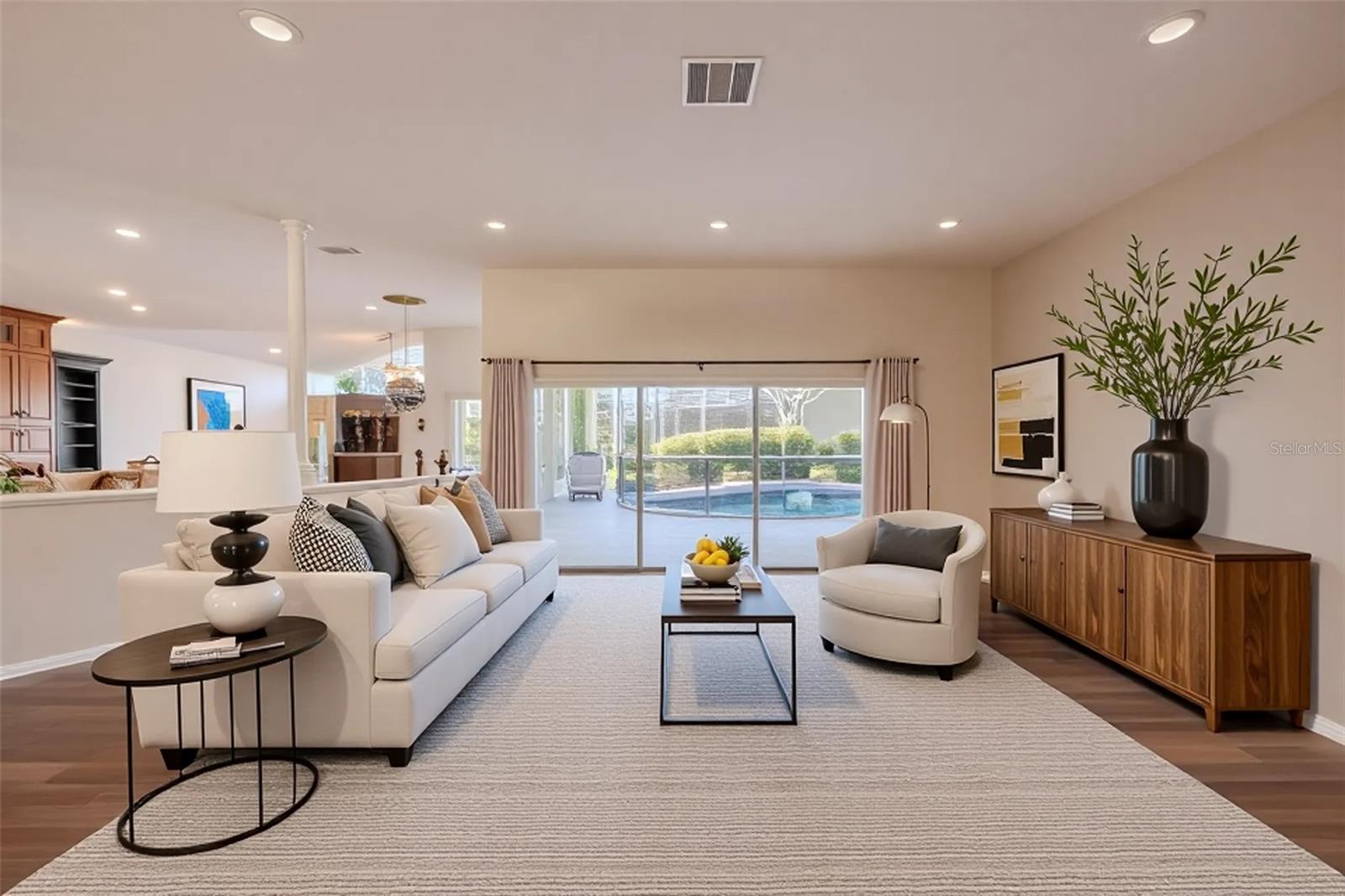 One or more photo(s) has been virtually staged. Motivated Sellers! $12K towards closing costs! Price Improvement! Don’t miss this opportunity to step into this exclusive 4-bed, 3.5-bath, 5th bedroom/office, and 3-car garage nestled within the upscale Osprey Pointe enclave in Hunter's Green. This exclusive 3597 square feet home by Arthur Rutenberg, is complete with hardwood floors, 12-foot ceilings, pocket sliding glass doors, a custom-built entertainment center and wired for surround sound. At the heart of the home is a remodeled kitchen equipped with granite countertops, extra tall 42-inch upper kitchen cabinets, stainless steel high-end appliances, modern backsplash, large pantries with soft-close pull-out drawers, and a casual dining area. The spacious primary suite offers a peaceful retreat; dual vanities, garden jacuzzi tub, walk-in closet, and shower. The secondary bedrooms are spacious, two of which share a bathroom, and one can serve as a Junior/In-Law Suite since it has its own adjacent bathroom and entrance to the home. Just outside, you'll enjoy outdoor living with heated pool/spa, outdoor kitchen, all within the comfort of your screened lanai. Exceptional amenities, including playgrounds, tennis, pickleball, basketball, walking trails and an off-leash dog park. A separate membership to the esteemed Hunter’s Green Country Club with access to the Tom Fazio championship golf course. Easy access to I-75 & I-4, close to top-rated schools, amazing dining, premier shopping, and Prime Outlet Mall. Additional details include a new tile roof (2020) and 2 50-gallon gas water heaters (2023). Don’t miss this chance to make this exceptional home yours!