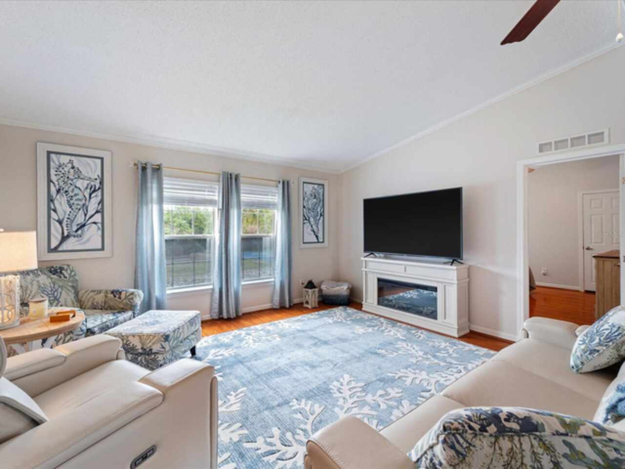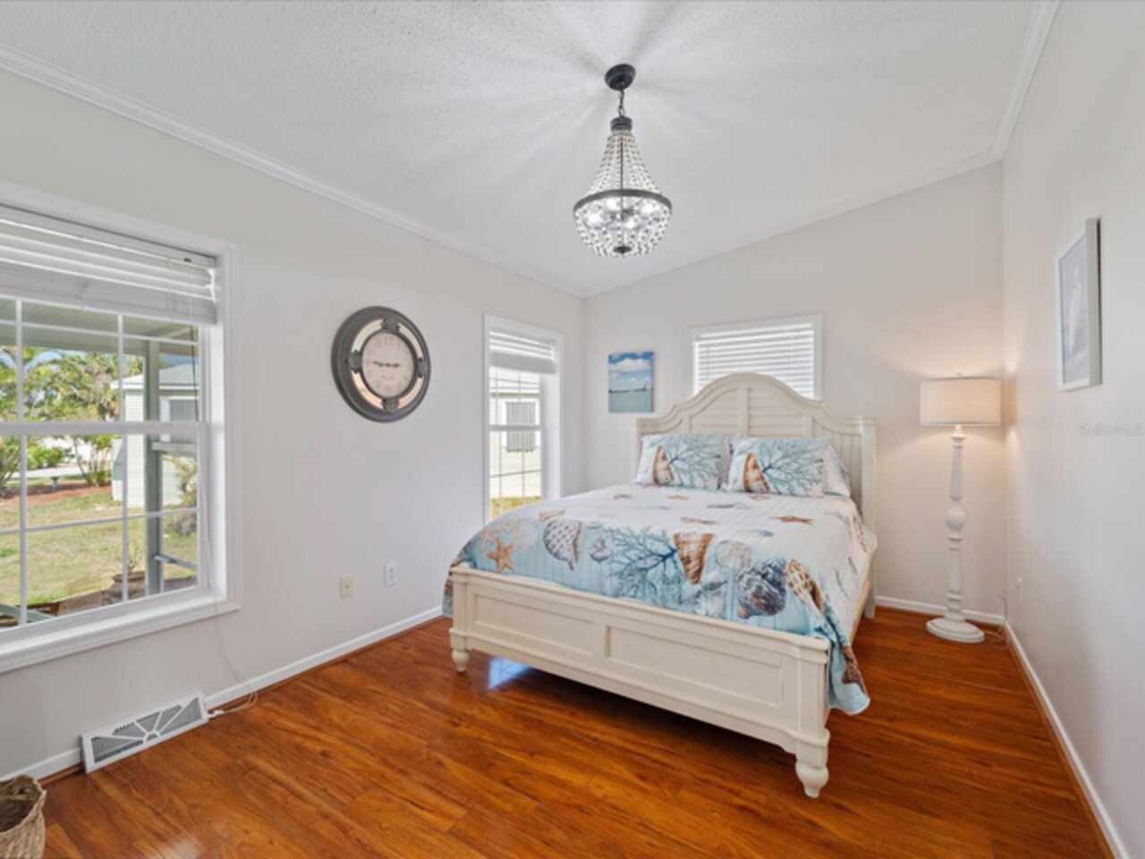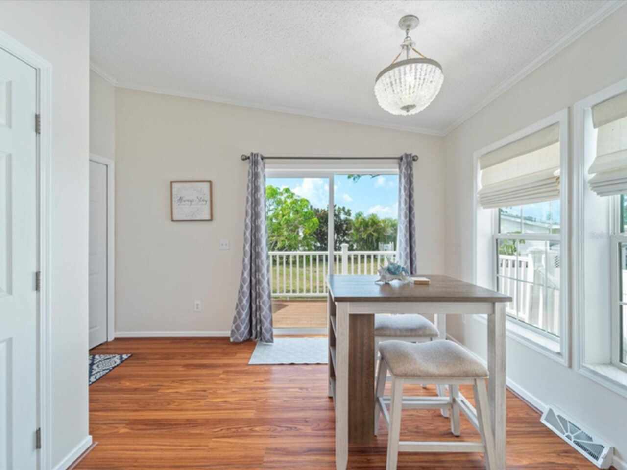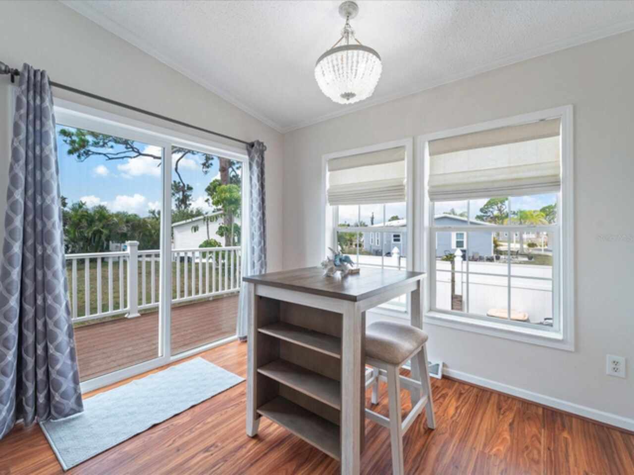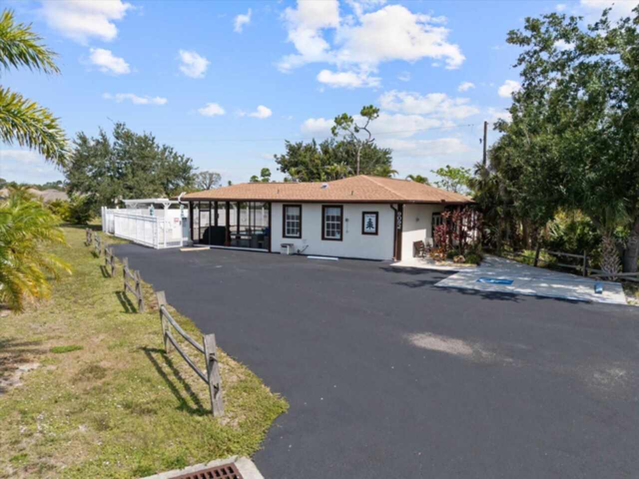Welcome to 9182 Pinehaven Way, a well-maintained and thoughtfully updated manufactured home located in the highly desirable 55+ community of The Pines at Sandalhaven in Englewood, Florida. This home sits on a curved corner lot, offering extra privacy with only one neighboring house and a vacant lot to the left currently used for shuffleboard and pickleball. This open space not only gives added distance from other homes but also enhances your view and overall sense of peace. Situated outside of a flood zone and connected to public water and sewer, this property offers both convenience and peace of mind. Low HOA fees cover reserves, community pool and pool maintenance, grounds upkeep, and professional management—and the community is pet-friendly! Curb appeal abounds with an oversized driveway and a screened-in front lanai, the perfect place to enjoy your morning coffee or unwind in the evening. For sun-lovers, there’s also a small backyard balcony and unscreened patio, giving you space to relax and enjoy Florida’s warmth. Inside, you’ll find over 1, 500 square feet of living space with a bright, open layout. The dining and living areas flow together effortlessly, while the galley kitchen features a built-in pantry and room for a cozy breakfast nook. A convenient laundry closet is tucked away at the end of the hall. This rare split-bedroom floor plan includes three bedrooms and two full bathrooms. The spacious primary suite features two walk-in closets and a large ensuite bathroom complete with dual vanities, a walk-in shower, and a private water closet. One guest bedroom includes a built-in closet, and the oversized third bedroom—though without a closet—is large enough to accommodate a wardrobe or be used as a home office, den, or flex space. The guest bathroom includes a single vanity and a tub/shower combination. Many updates have been made in recent years, making this home move-in ready. In 2024, the sellers added a large screened-in side lanai, installed new kitchen flooring, added new lighting in the kitchen, bathroom, and one bedroom, installed a new bathroom faucet, and painted the interior walls. Fresh landscaping and a new trees were planted in 2024, followed by full yard sod and newly painted shutters in 2025. The HVAC system was also upgraded in 2025 with a brand-new compressor defender surge protector, new fan motor, and a heat-resistant heater for better efficiency and longevity. The Pines at Sandalhaven offers a clubhouse, pool, and organized community amenities. Located just minutes from Wildflower Preserve, Amberjack Environmental Park, Boca Grande Beach, Englewood Beach, local golf courses, restaurants, and shopping, this home offers the perfect combination of comfort, convenience, and a vibrant Florida lifestyle.