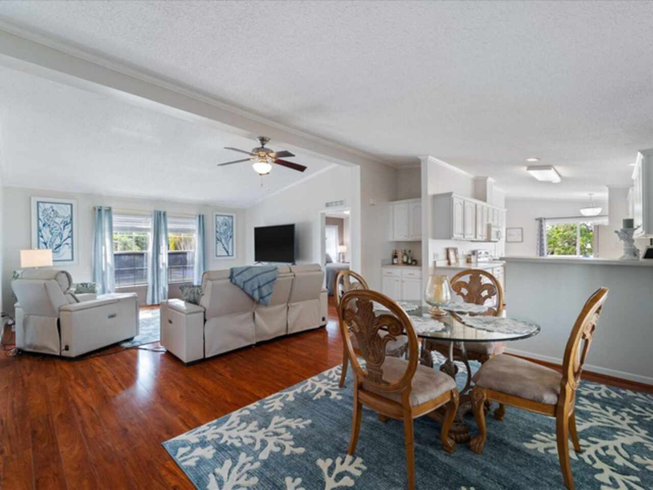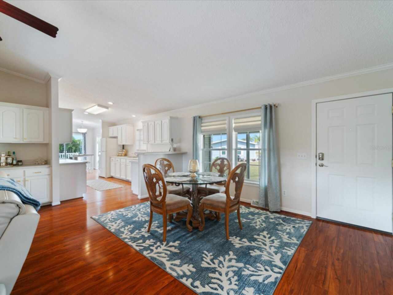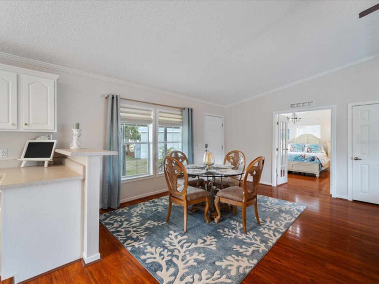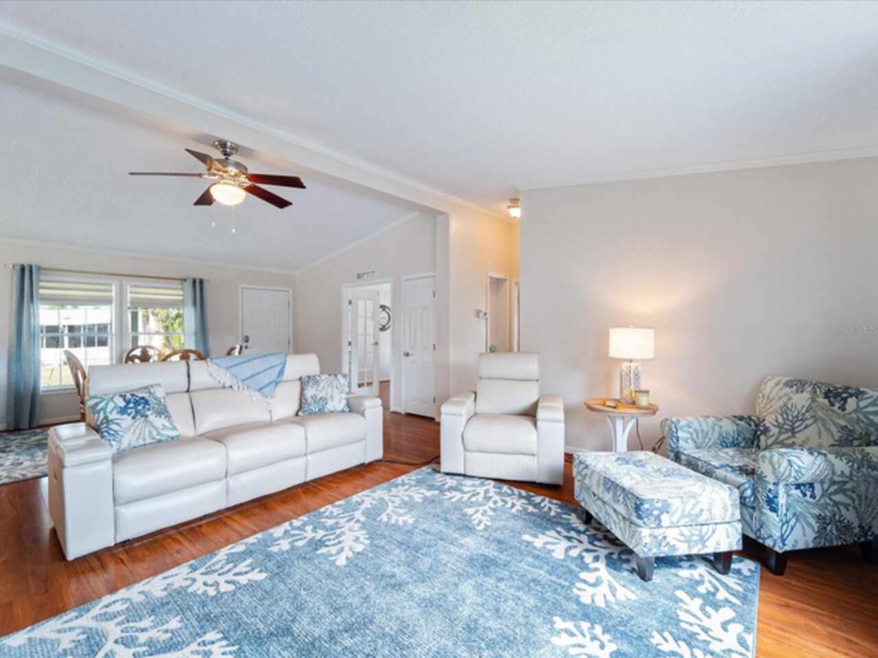 Welcome to 9182 Pinehaven Way, a well-maintained and thoughtfully updated manufactured home located in the highly desirable 55+ community of The Pines at Sandalhaven in Englewood, Florida. This home sits on a curved corner lot, offering extra privacy with only one neighboring house and a vacant lot to the left currently used for shuffleboard and pickleball. This open space not only gives added distance from other homes but also enhances your view and overall sense of peace. Situated outside of a flood zone and connected to public water and sewer, this property offers both convenience and peace of mind. Low HOA fees cover reserves, community pool and pool maintenance, grounds upkeep, and professional management—and the community is pet-friendly! Curb appeal abounds with an oversized driveway and a screened-in front lanai, the perfect place to enjoy your morning coffee or unwind in the evening. For sun-lovers, there’s also a small backyard balcony and unscreened patio, giving you space to relax and enjoy Florida’s warmth. Inside, you’ll find over 1, 500 square feet of living space with a bright, open layout. The dining and living areas flow together effortlessly, while the galley kitchen features a built-in pantry and room for a cozy breakfast nook. A convenient laundry closet is tucked away at the end of the hall. This rare split-bedroom floor plan includes three bedrooms and two full bathrooms. The spacious primary suite features two walk-in closets and a large ensuite bathroom complete with dual vanities, a walk-in shower, and a private water closet. One guest bedroom includes a built-in closet, and the oversized third bedroom—though without a closet—is large enough to accommodate a wardrobe or be used as a home office, den, or flex space. The guest bathroom includes a single vanity and a tub/shower combination. Many updates have been made in recent years, making this home move-in ready. In 2024, the sellers added a large screened-in side lanai, installed new kitchen flooring, added new lighting in the kitchen, bathroom, and one bedroom, installed a new bathroom faucet, and painted the interior walls. Fresh landscaping and a new trees were planted in 2024, followed by full yard sod and newly painted shutters in 2025. The HVAC system was also upgraded in 2025 with a brand-new compressor defender surge protector, new fan motor, and a heat-resistant heater for better efficiency and longevity. The Pines at Sandalhaven offers a clubhouse, pool, and organized community amenities. Located just minutes from Wildflower Preserve, Amberjack Environmental Park, Boca Grande Beach, Englewood Beach, local golf courses, restaurants, and shopping, this home offers the perfect combination of comfort, convenience, and a vibrant Florida lifestyle.