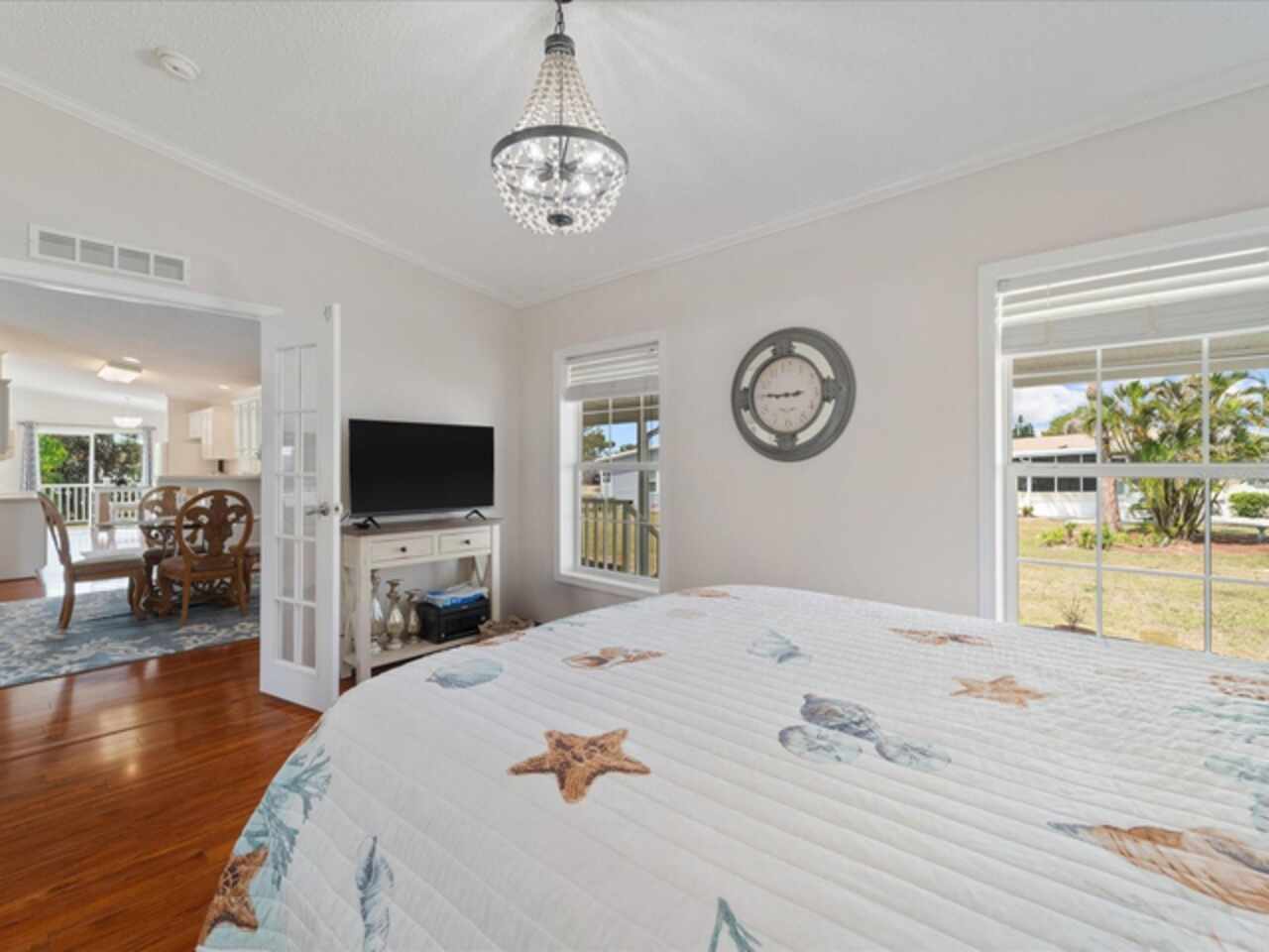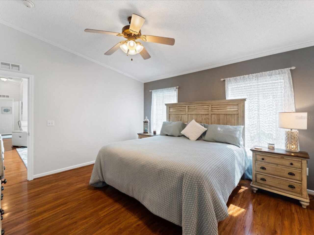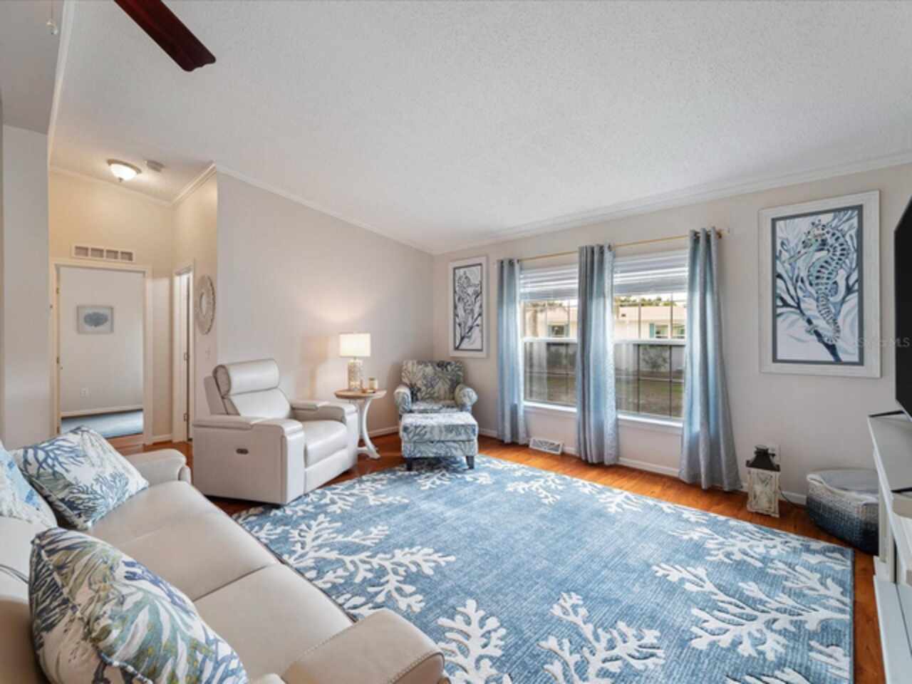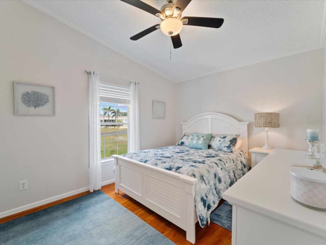 Welcome to 9182 Pinehaven Way, a well-maintained and thoughtfully updated manufactured home located in the highly desirable 55+ community of The Pines at Sandalhaven in Englewood, Florida. This home sits on a curved corner lot, offering extra privacy with only one neighboring house and a vacant lot to the left currently used for shuffleboard and pickleball. This open space not only gives added distance from other homes but also enhances your view and overall sense of peace. Situated outside of a flood zone and connected to public water and sewer, this property offers both convenience and peace of mind. Low HOA fees cover reserves, community pool and pool maintenance, grounds upkeep, and professional management—and the community is pet-friendly! Curb appeal abounds with an oversized driveway and a screened-in front lanai, the perfect place to enjoy your morning coffee or unwind in the evening. For sun-lovers, there’s also a small backyard balcony and unscreened patio, giving you space to relax and enjoy Florida’s warmth. Inside, you’ll find over 1, 500 square feet of living space with a bright, open layout. The dining and living areas flow together effortlessly, while the galley kitchen features a built-in pantry and room for a cozy breakfast nook. A convenient laundry closet is tucked away at the end of the hall. This rare split-bedroom floor plan includes three bedrooms and two full bathrooms. The spacious primary suite features two walk-in closets and a large ensuite bathroom complete with dual vanities, a walk-in shower, and a private water closet. One guest bedroom includes a built-in closet, and the oversized third bedroom—though without a closet—is large enough to accommodate a wardrobe or be used as a home office, den, or flex space. The guest bathroom includes a single vanity and a tub/shower combination. Many updates have been made in recent years, making this home move-in ready. In 2024, the sellers added a large screened-in side lanai, installed new kitchen flooring, added new lighting in the kitchen, bathroom, and one bedroom, installed a new bathroom faucet, and painted the interior walls. Fresh landscaping and a new trees were planted in 2024, followed by full yard sod and newly painted shutters in 2025. The HVAC system was also upgraded in 2025 with a brand-new compressor defender surge protector, new fan motor, and a heat-resistant heater for better efficiency and longevity. The Pines at Sandalhaven offers a clubhouse, pool, and organized community amenities. Located just minutes from Wildflower Preserve, Amberjack Environmental Park, Boca Grande Beach, Englewood Beach, local golf courses, restaurants, and shopping, this home offers the perfect combination of comfort, convenience, and a vibrant Florida lifestyle.